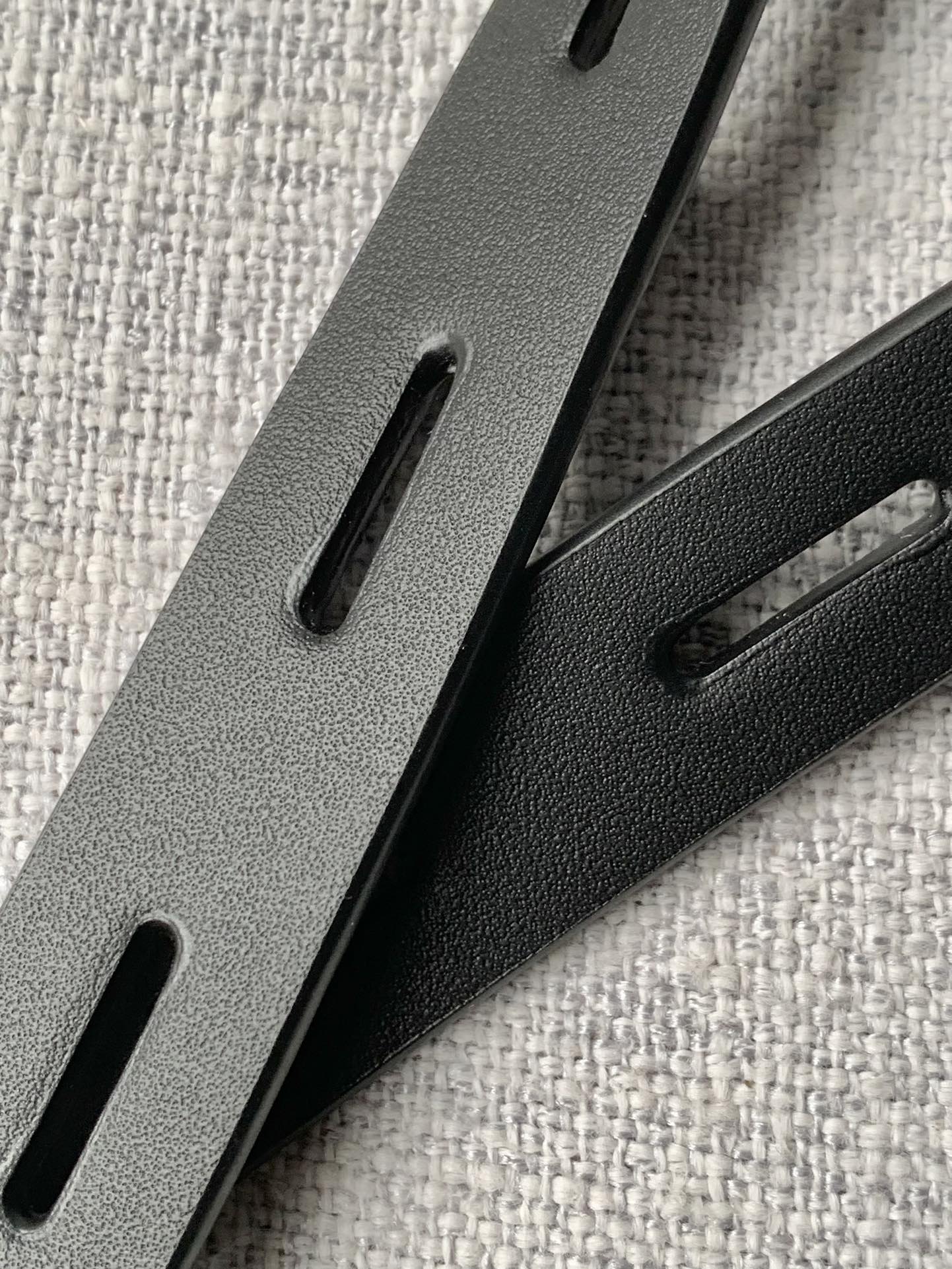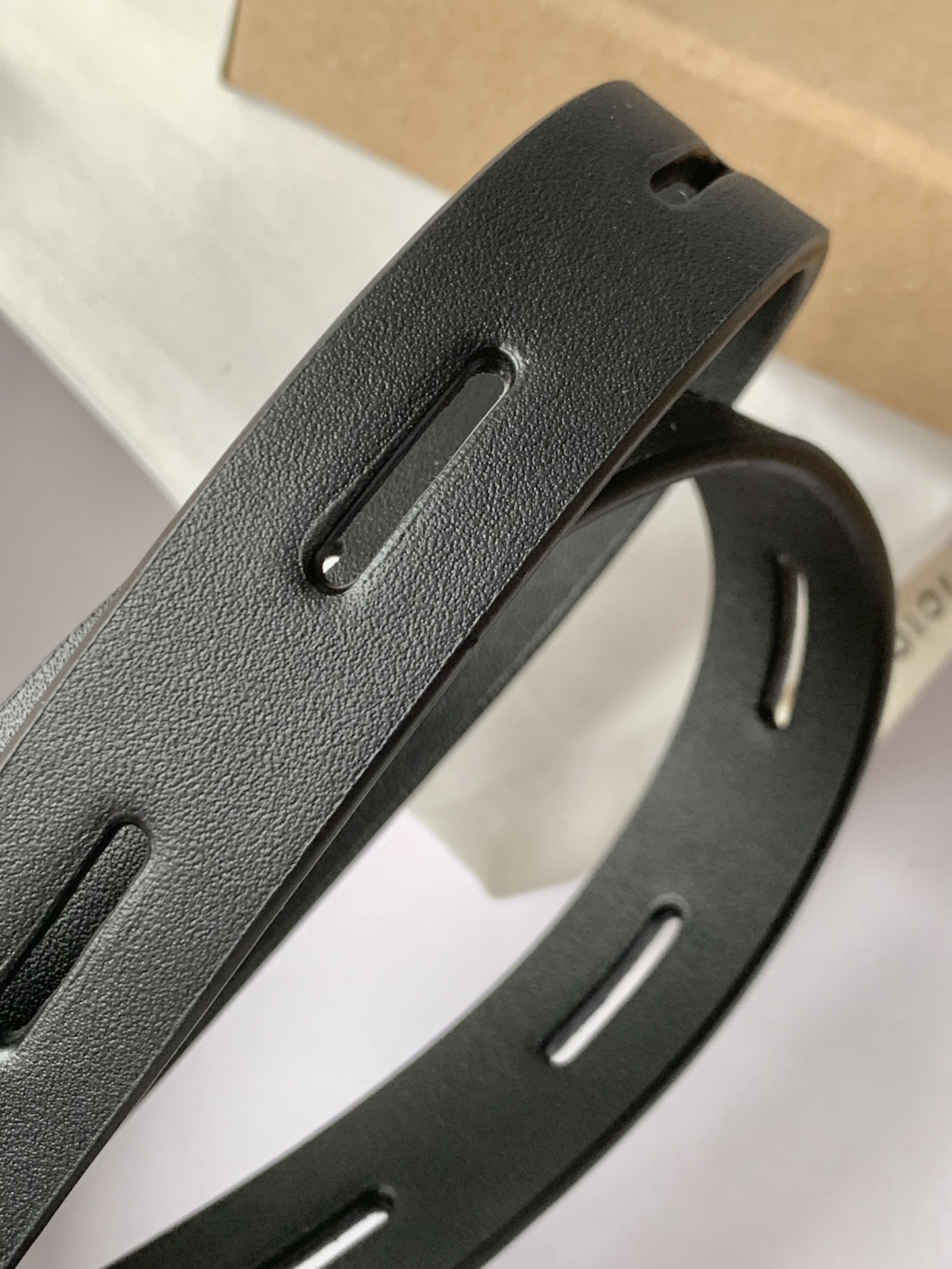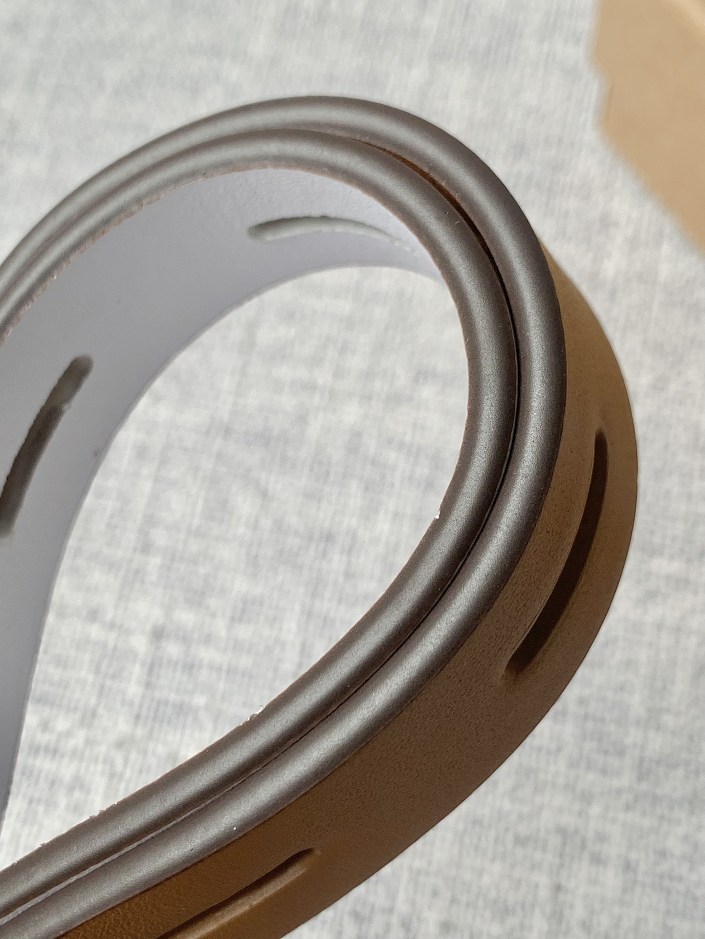 黑色哑光细纹牛皮做工,这个裁剪成2cm的宽度,很挑战极速,重要的是油边细节做的很细致,保证油边渗透进去使用起来更加顺滑,使用百次都不会开裂!