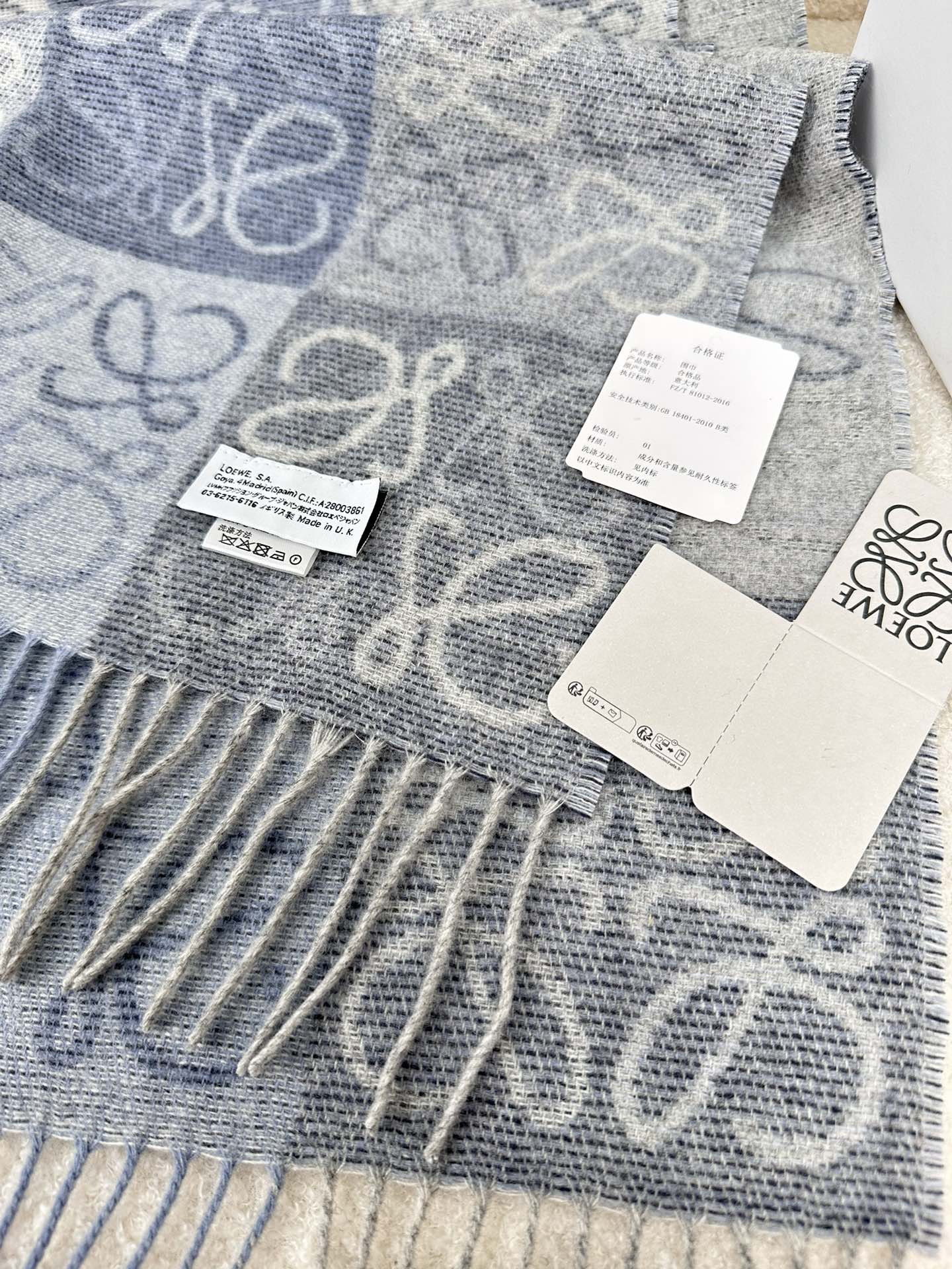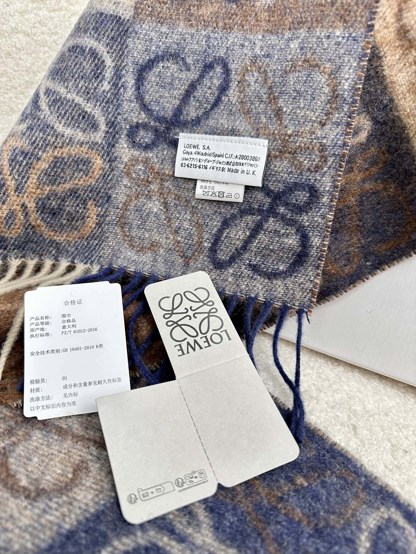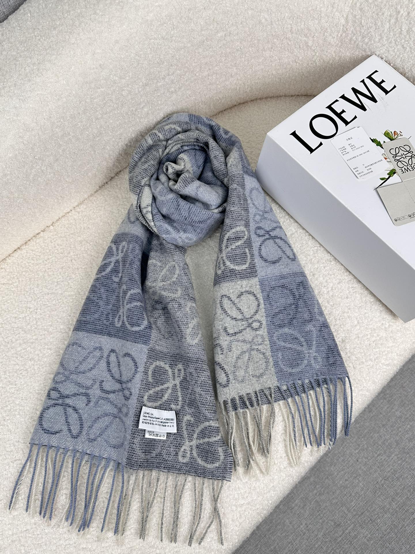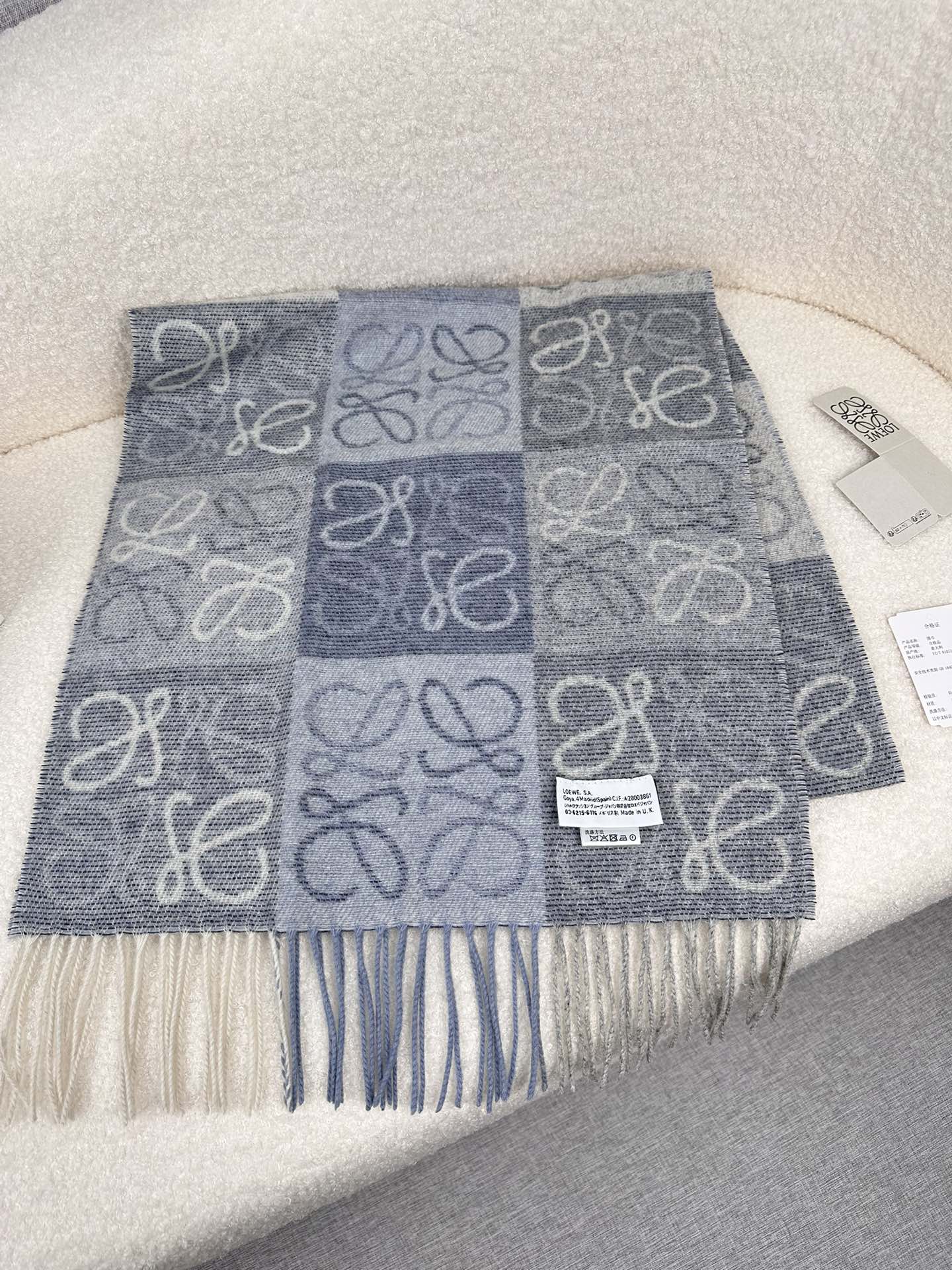 顶级中性款!罗意威很幸運拿到這個品牌的東西,真的不多見,很少在國內做訂單,款式真的少的可怜!羅意威作為西班牙的頂尖奢侈品牌,秉承傳統,技藝,熱誠,散髮獨特的西班牙貴族氣息!本款為巴塞羅納專櫃的櫥窗定制款!围巾整体构图为他们品牌最经典的LOGO风格设计。规格38x200,材质:90%羊毛10%羊绒!手感特别好!这个款式真的是太爆了、市场上多种F货出现。F货又扎手又薄,质感很差!这款是市场上最高版本的!!手感特别好.,细腻柔软!!原版标!!真的福利好货!!