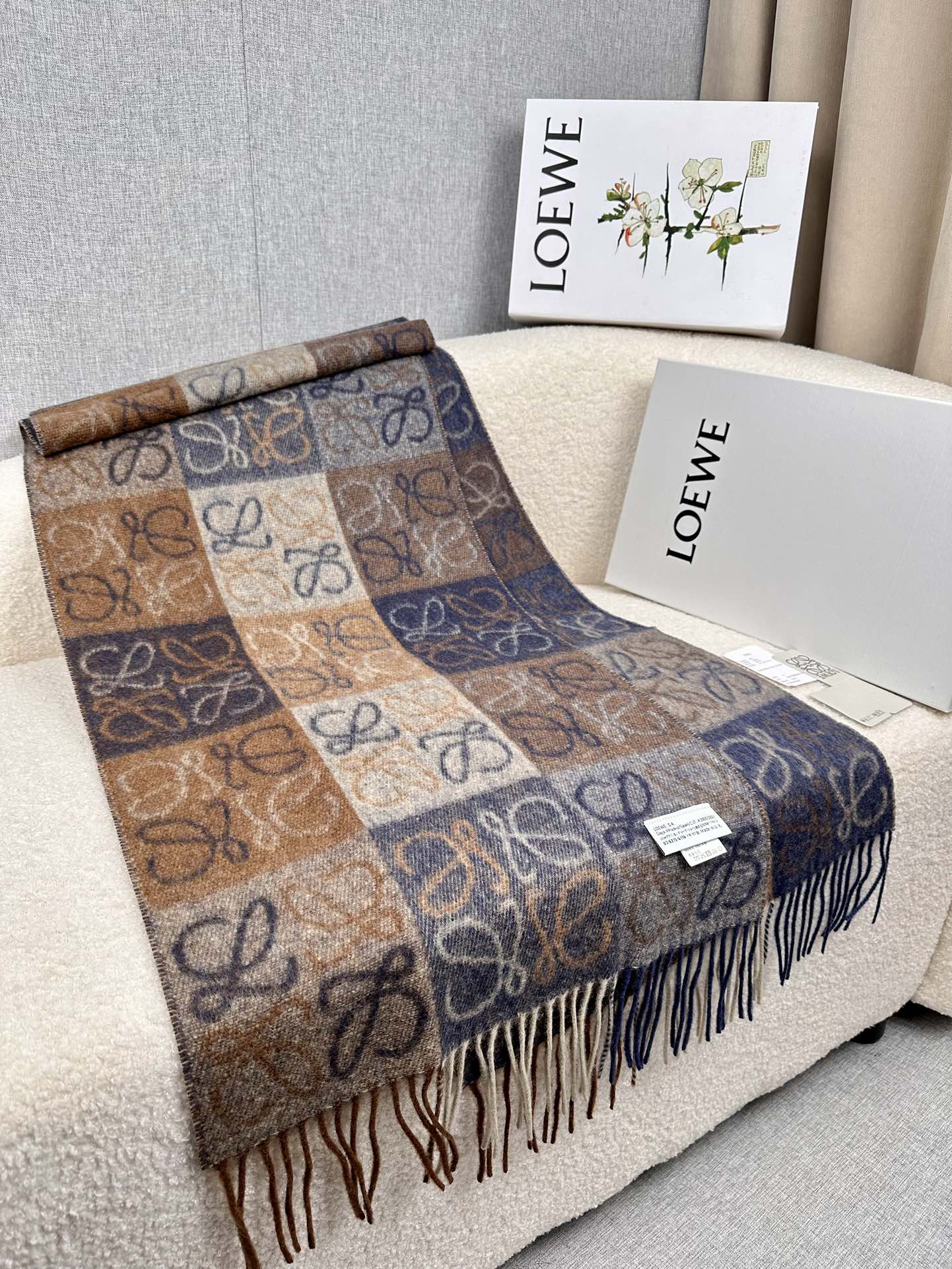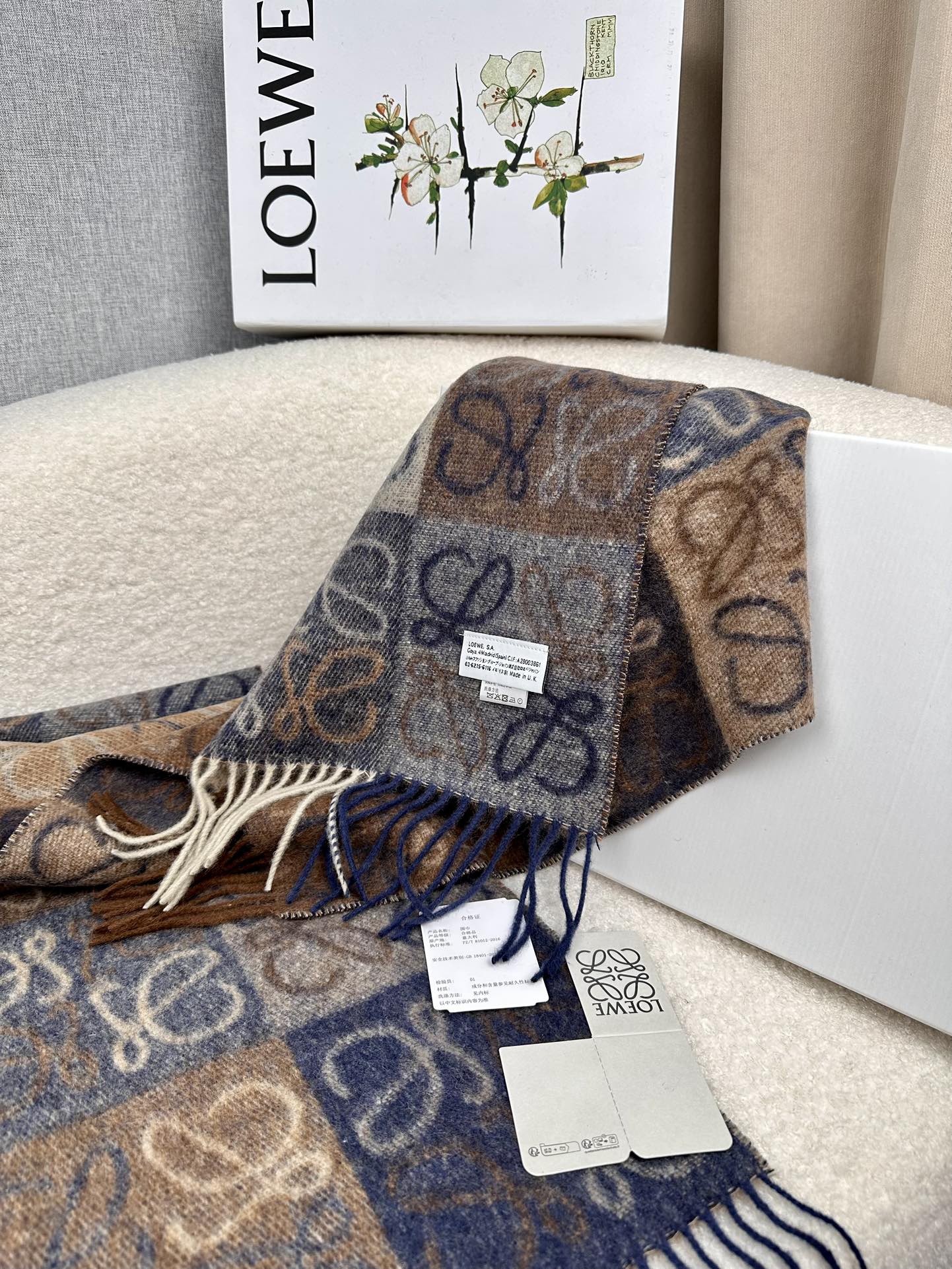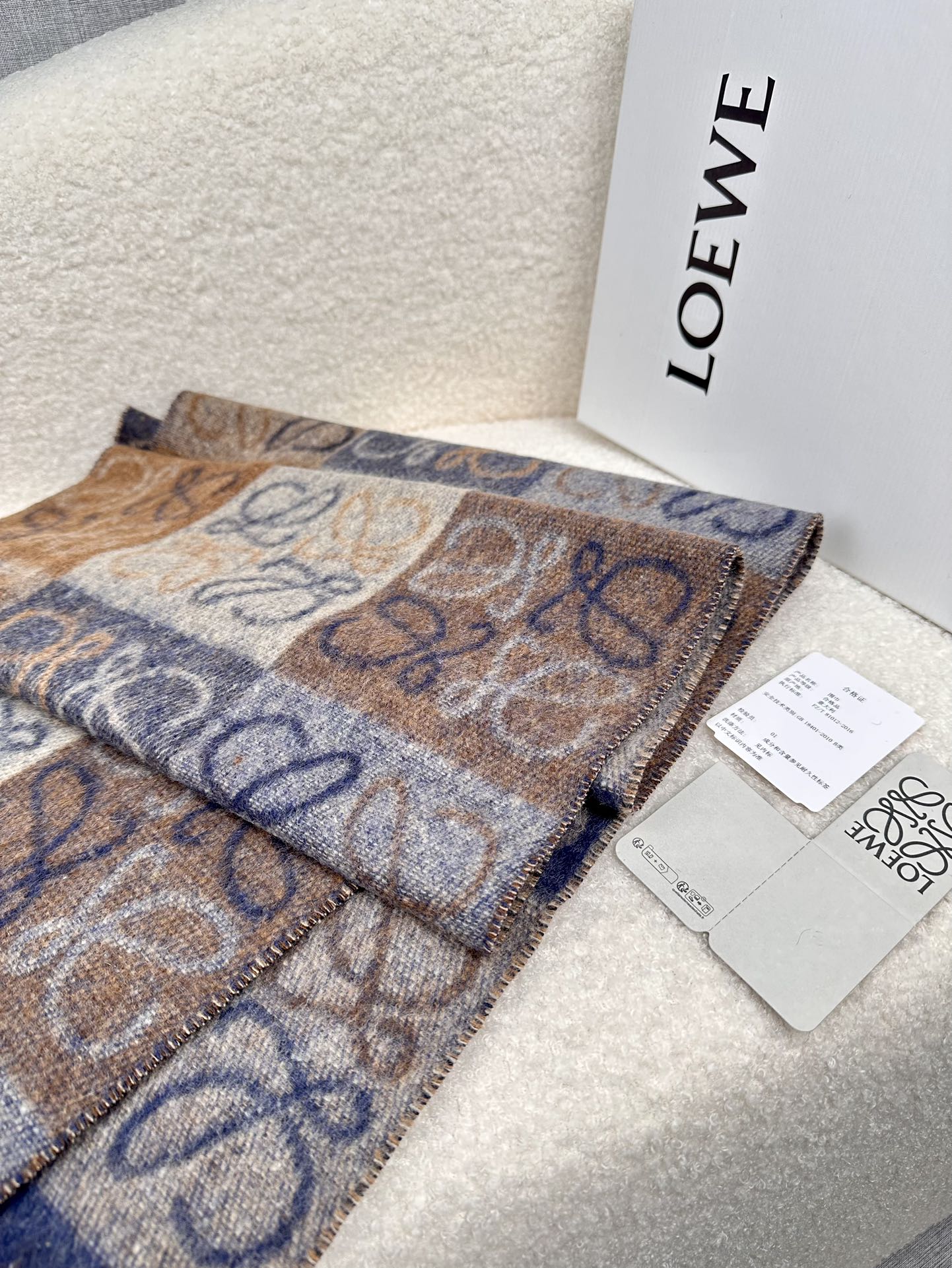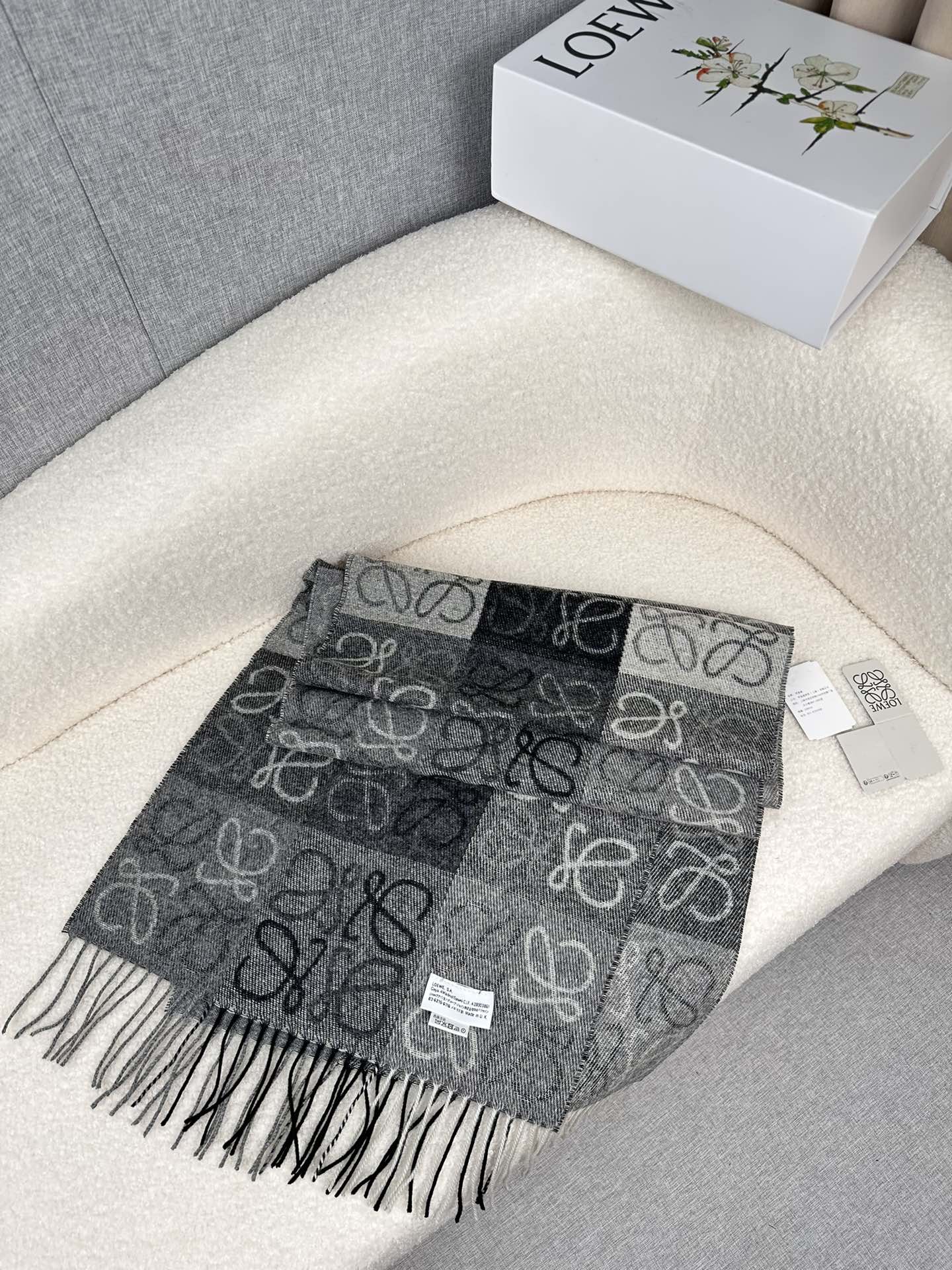 顶级中性款!罗意威很幸運拿到這個品牌的東西,真的不多見,很少在國內做訂單,款式真的少的可怜!羅意威作為西班牙的頂尖奢侈品牌,秉承傳統,技藝,熱誠,散髮獨特的西班牙貴族氣息!本款為巴塞羅納專櫃的櫥窗定制款!围巾整体构图为他们品牌最经典的LOGO风格设计。规格38x200,材质:90%羊毛10%羊绒!手感特别好!这个款式真的是太爆了、市场上多种F货出现。F货又扎手又薄,质感很差!这款是市场上最高版本的!!手感特别好.,细腻柔软!!原版标!!真的福利好货!!