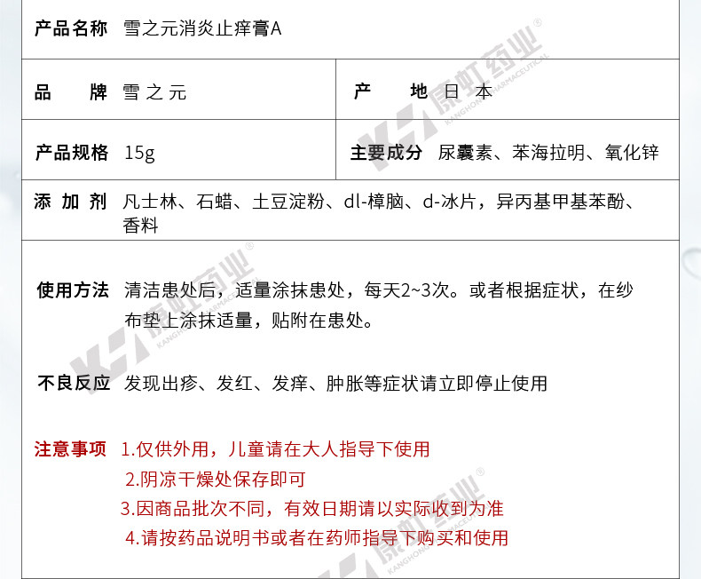 日本雪之元皮炎膏15g抑菌杀菌止痒消肿消炎过敏修复原装进口正品