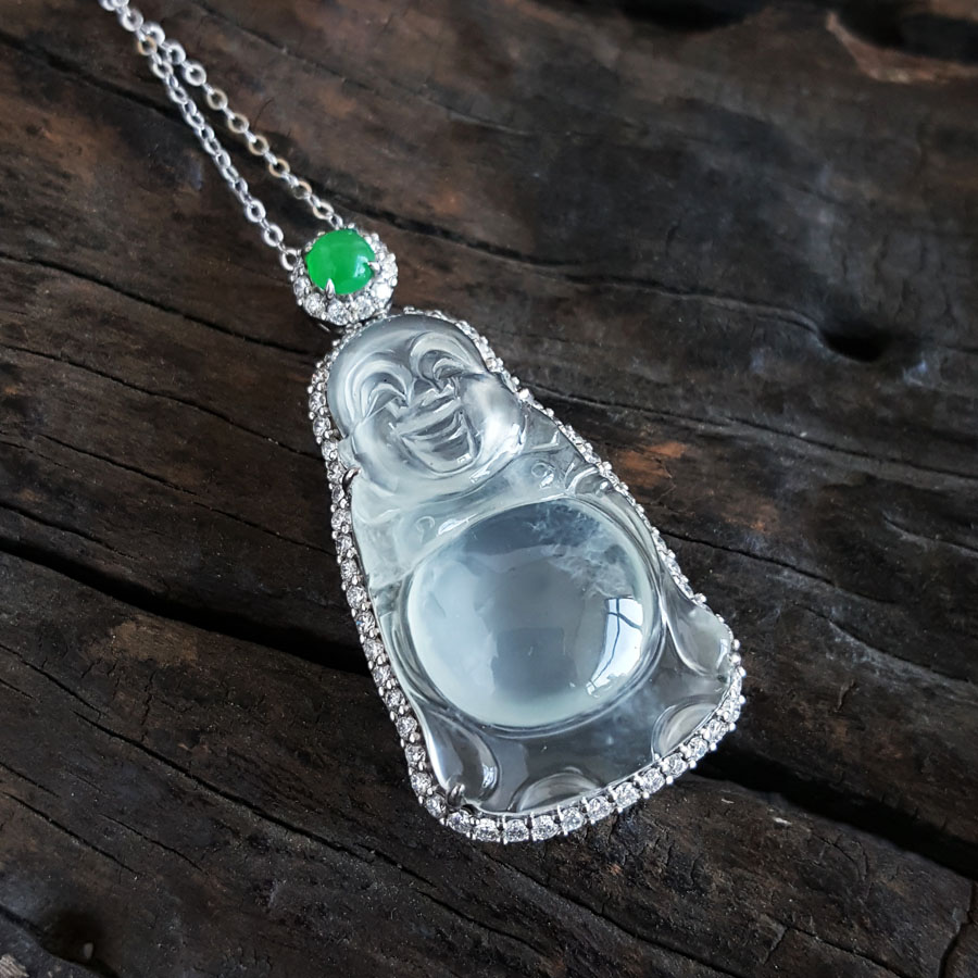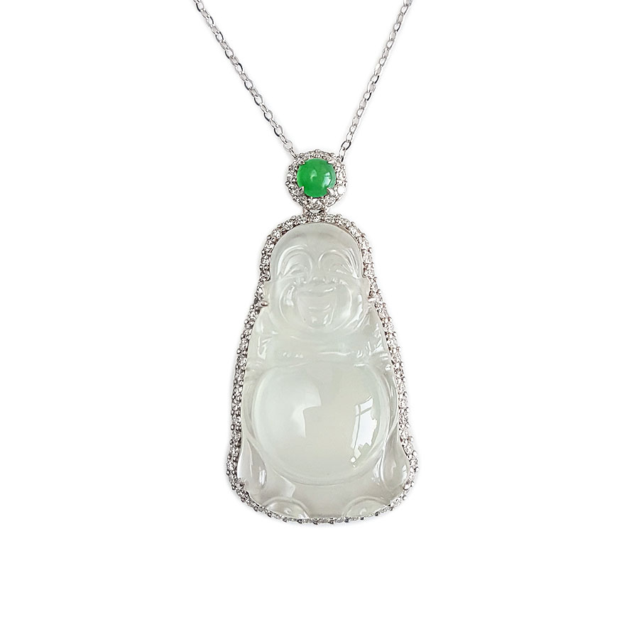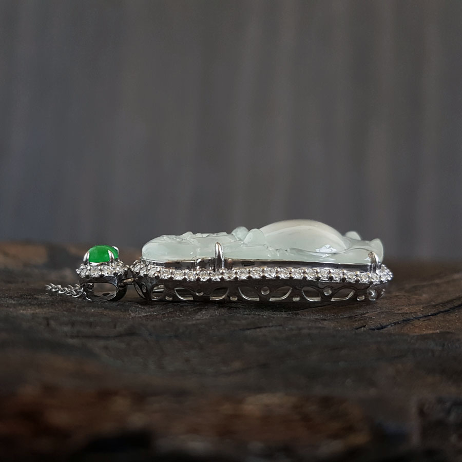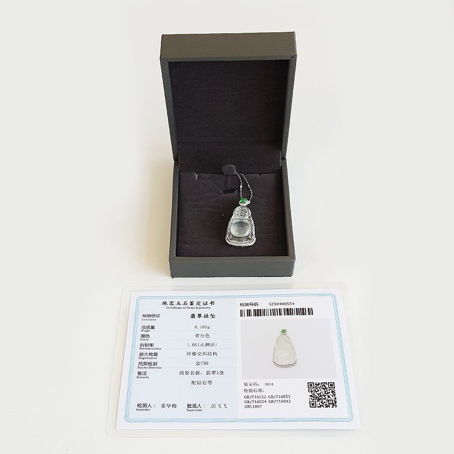 名称 | AU750收藏级白金镶钻镶天然细腻高冰种立佛翡翠吊坠项链 |