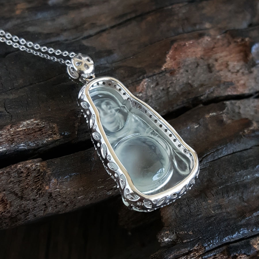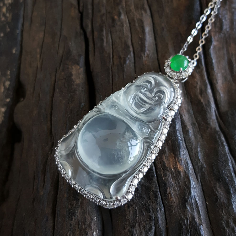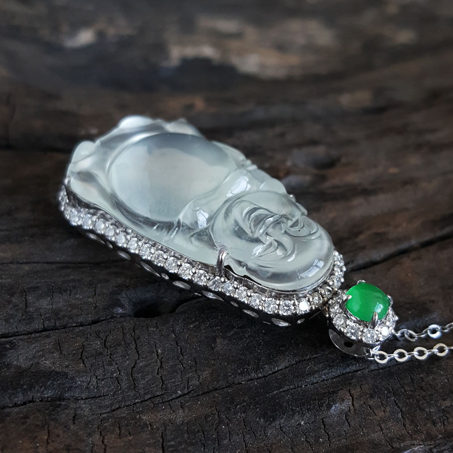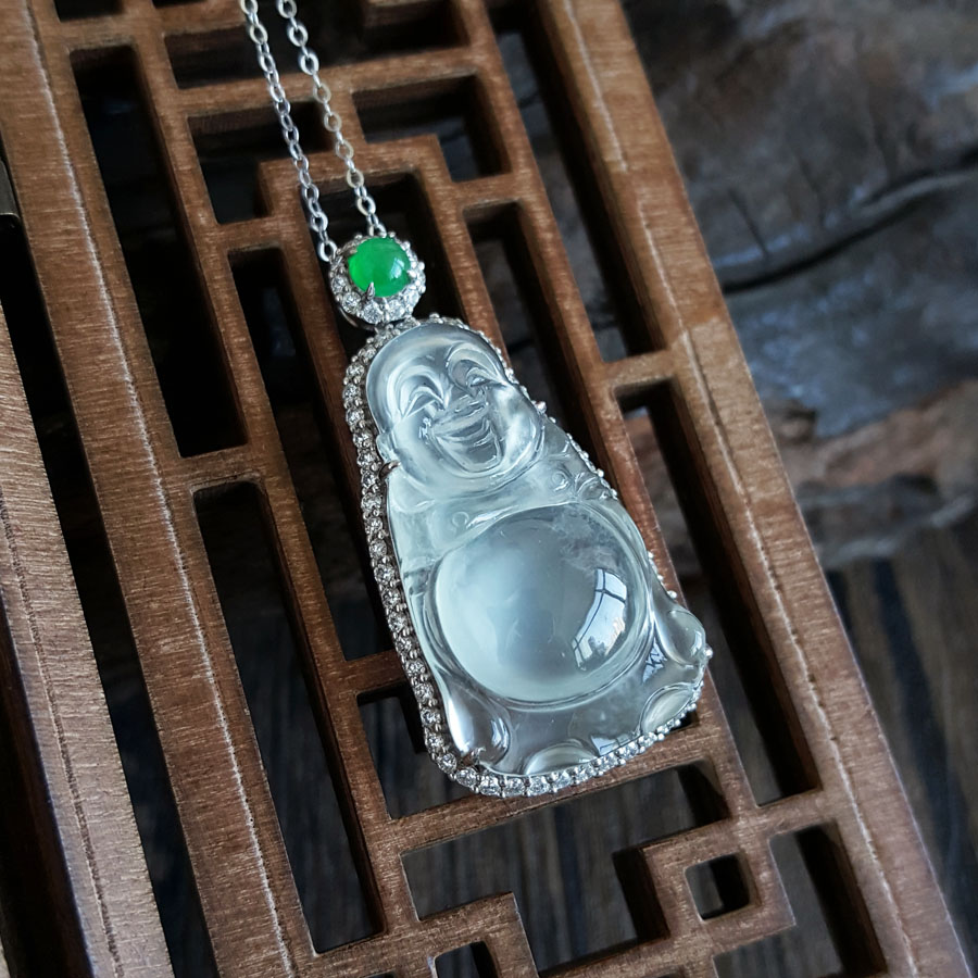 名称 | AU750收藏级白金镶钻镶天然细腻高冰种立佛翡翠吊坠项链 |