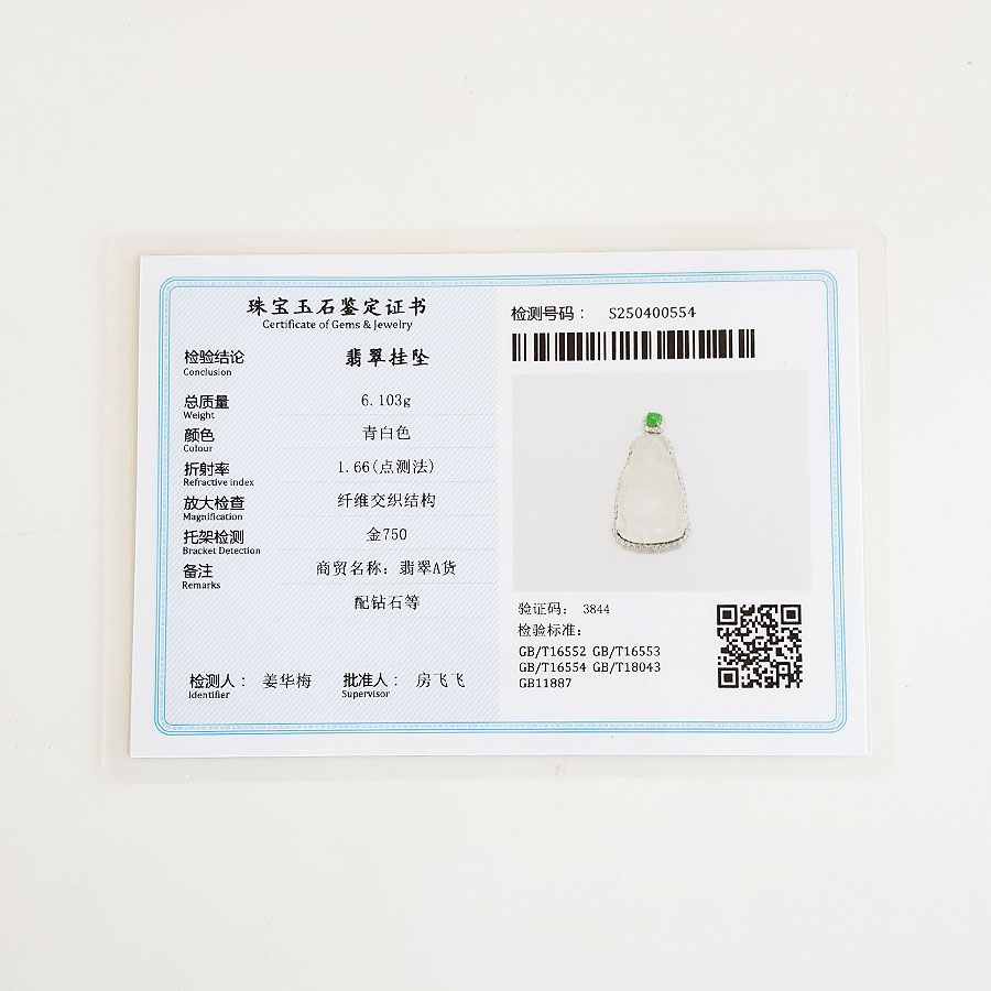 【天然正品】AU750收藏级白金镶钻镶天然细腻高冰种立佛翡翠吊坠项链女士现售价:11800!220325AH43