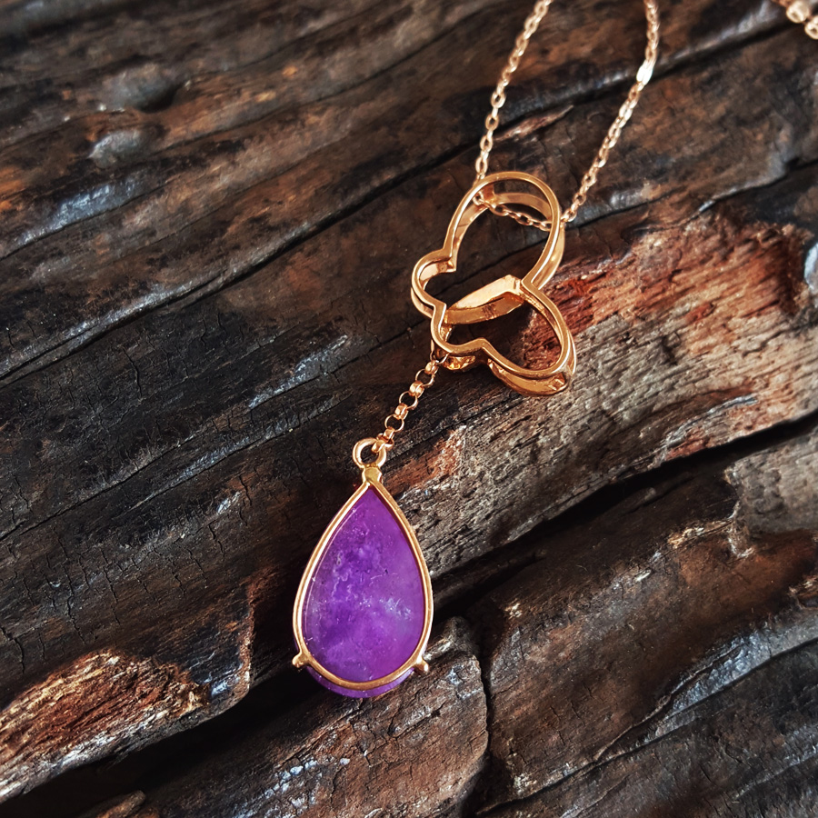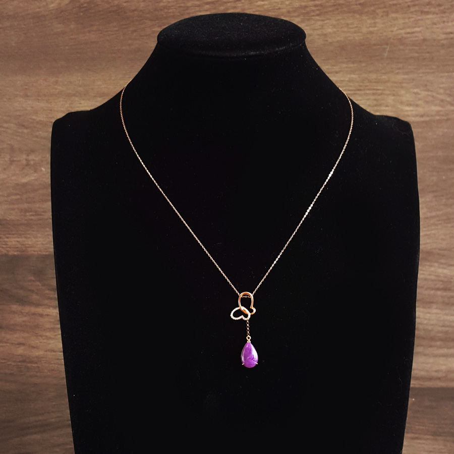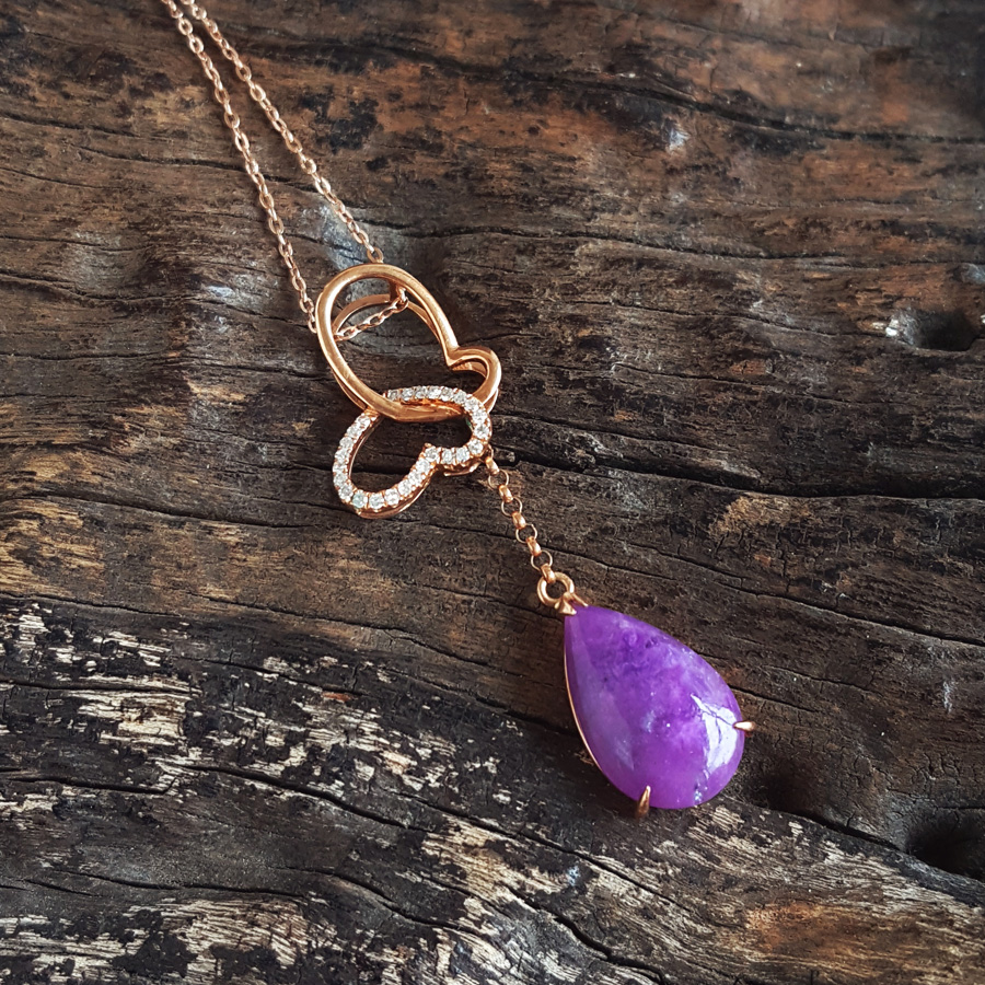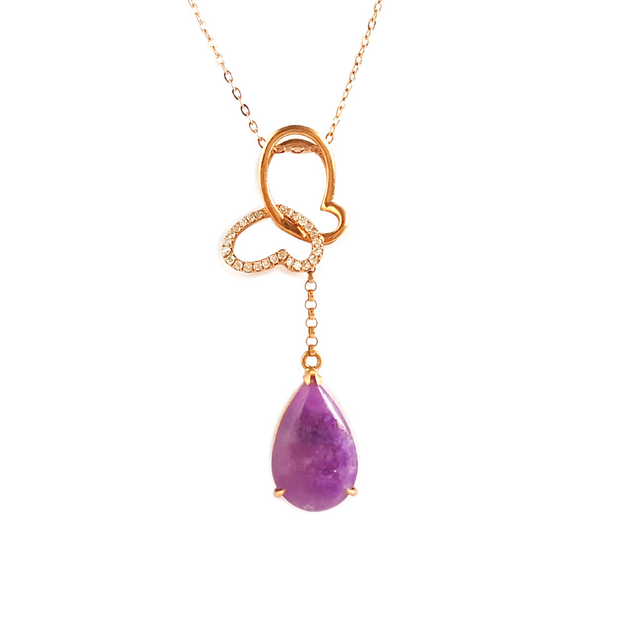 名称 | AU750玫瑰金镶钻镶天然细腻蝴蝶造型紫罗兰舒俱来吊坠项链 |