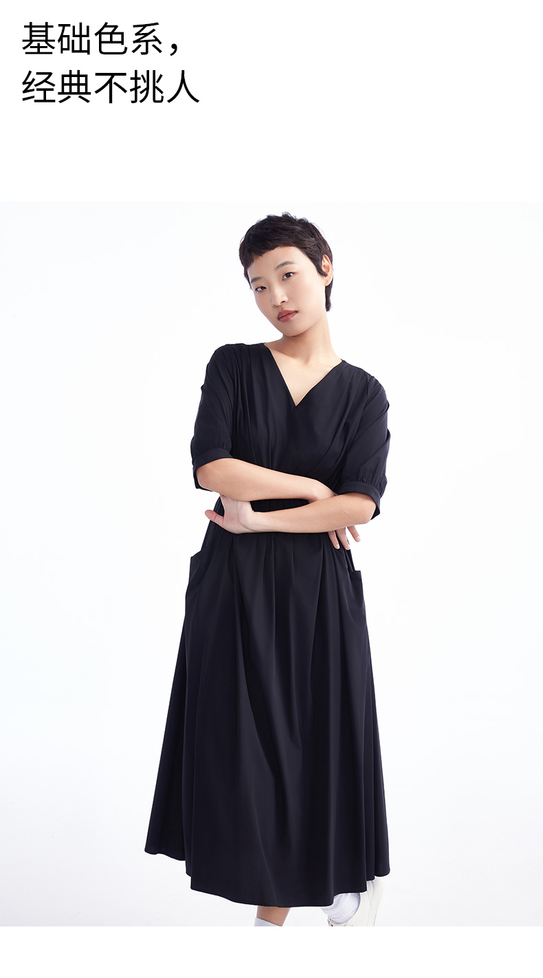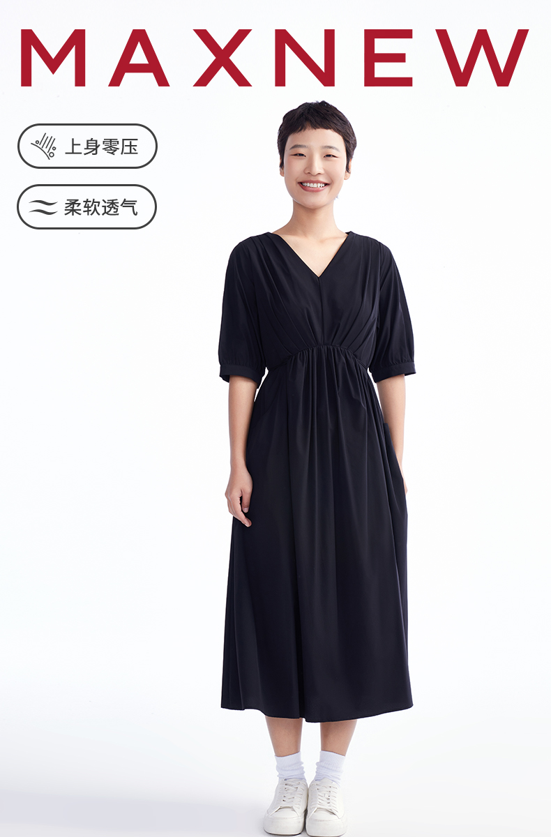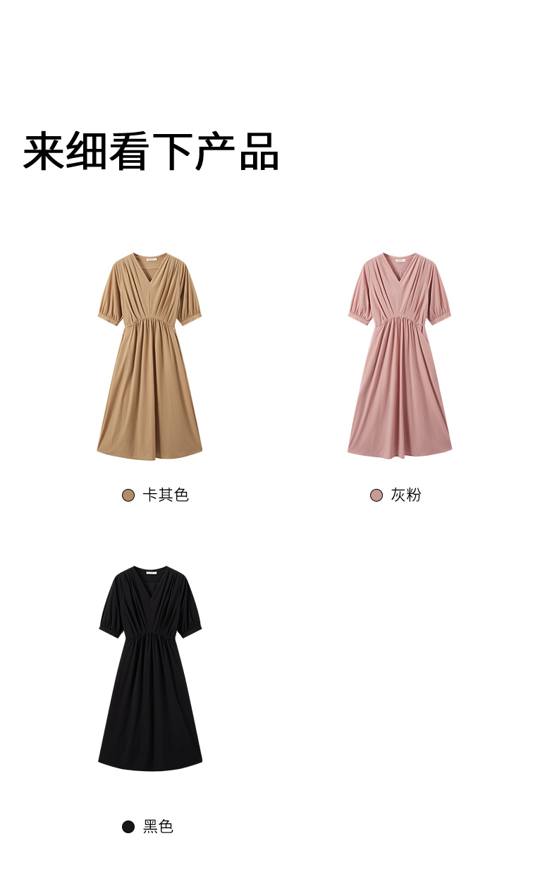 【裙装】女装轻薄灵压高腰线V领收腰连衣裙 1N2225310