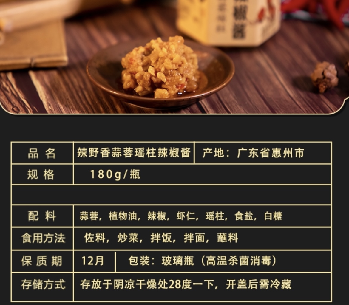 【商品名称】蒜蓉瑶柱辣椒酱