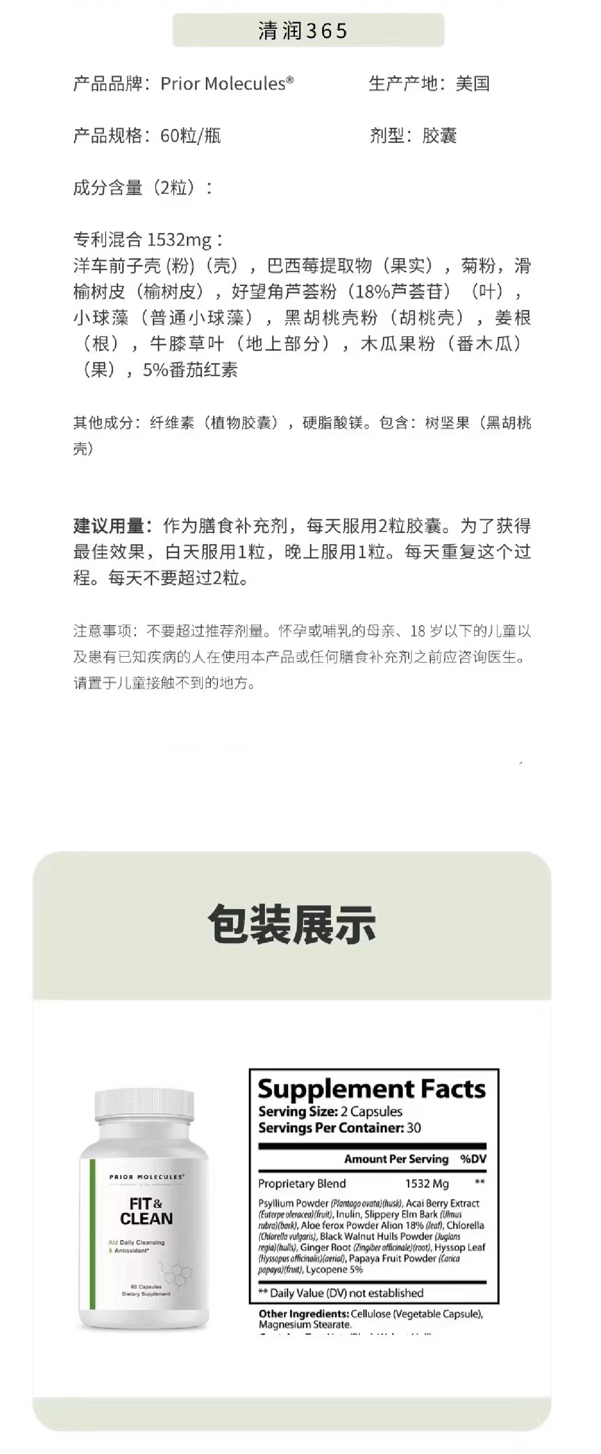 Prior Molecules 清润365 FIT & CLEAN 60粒/瓶 05/28