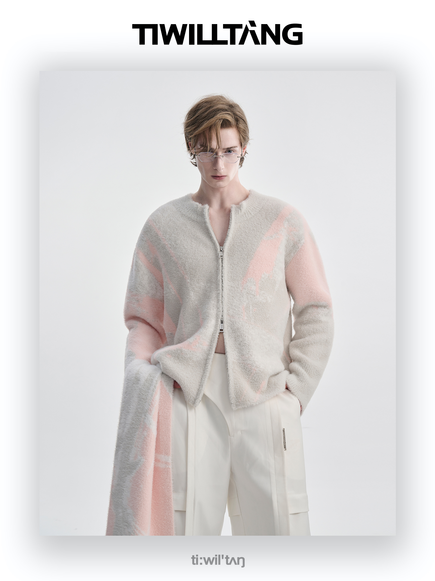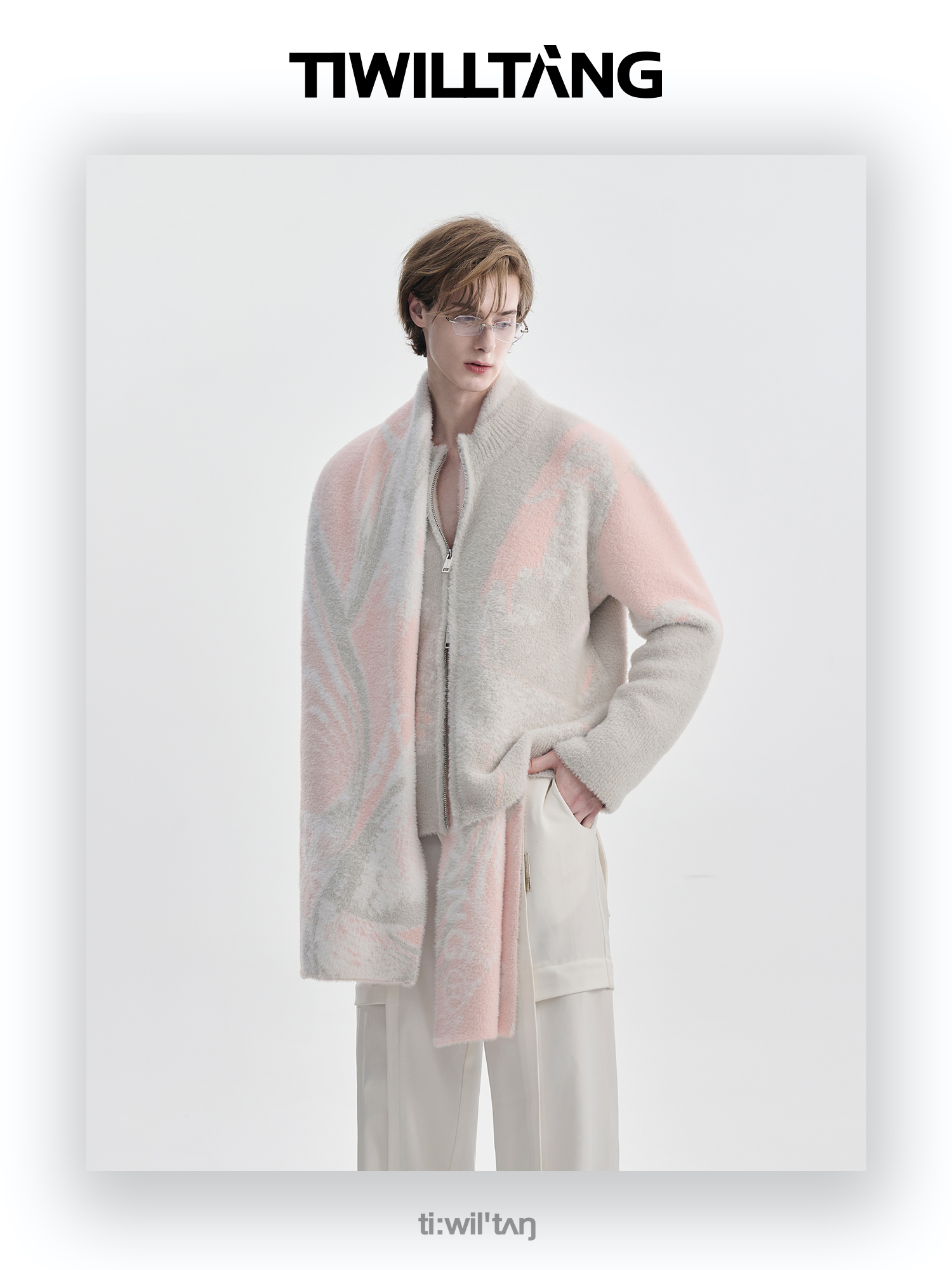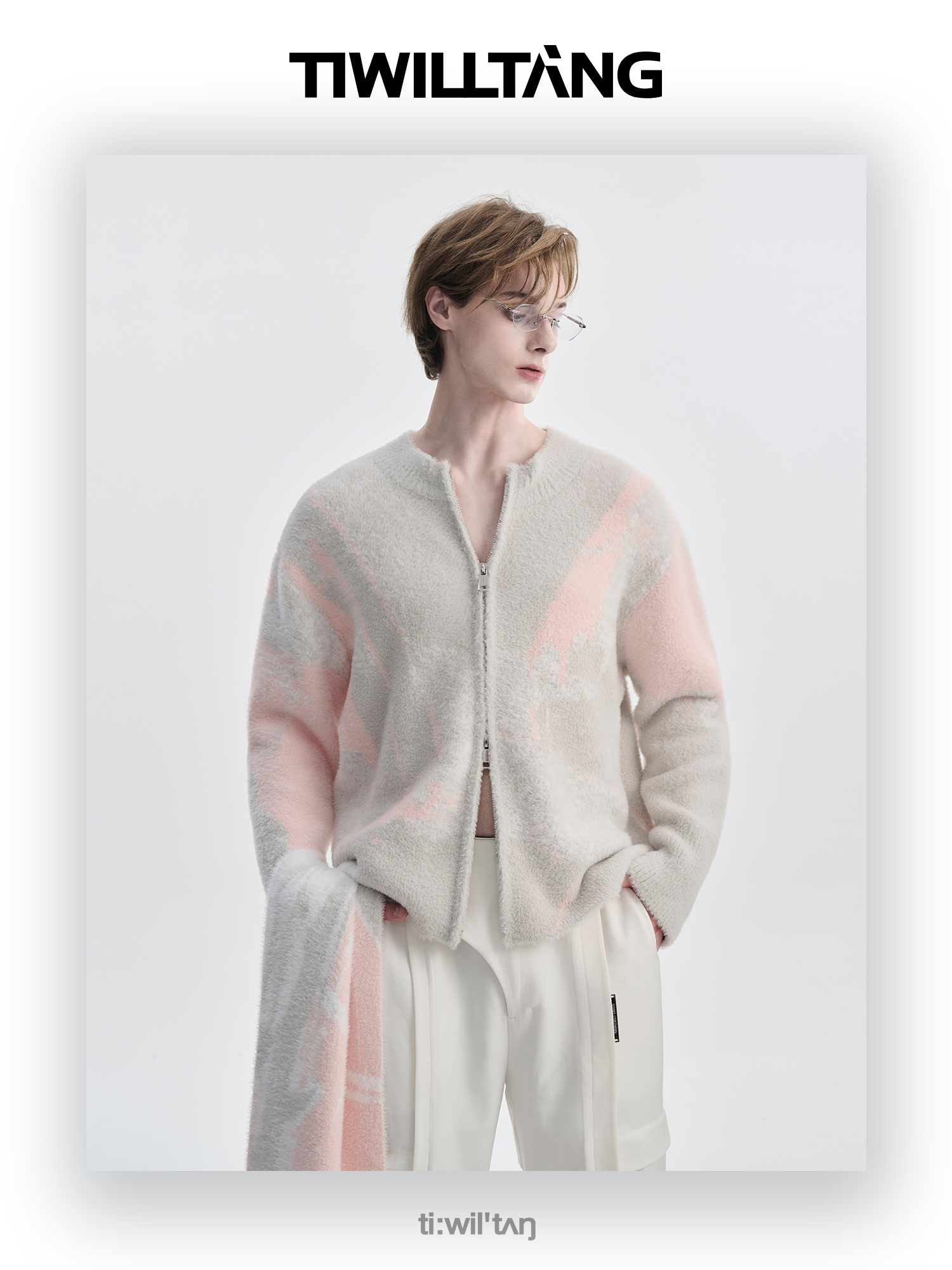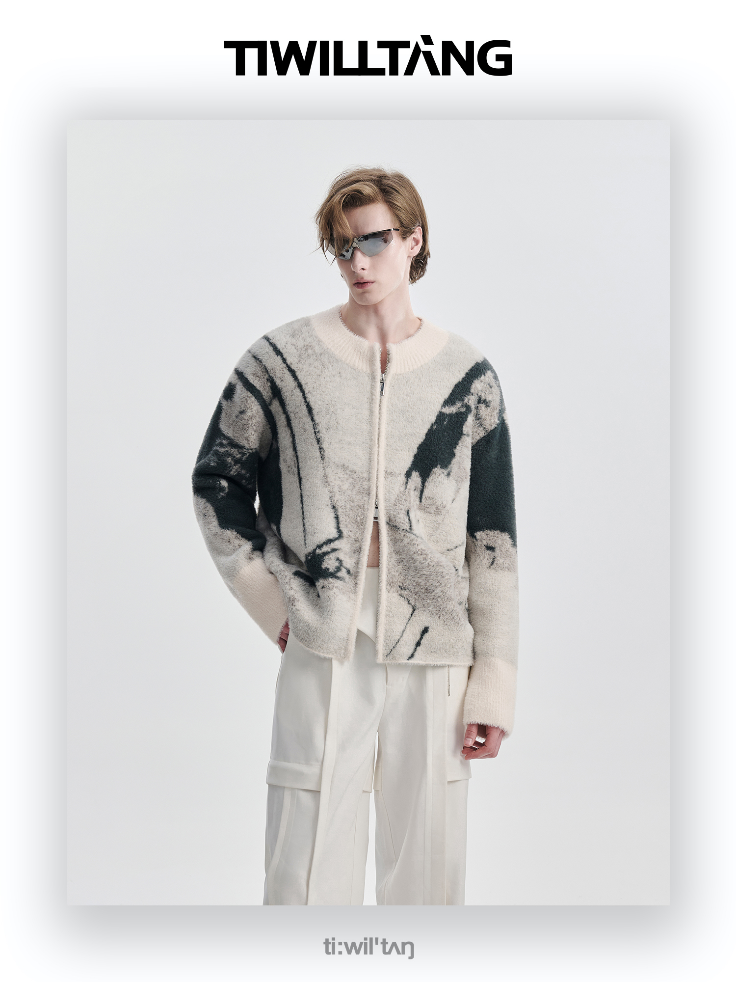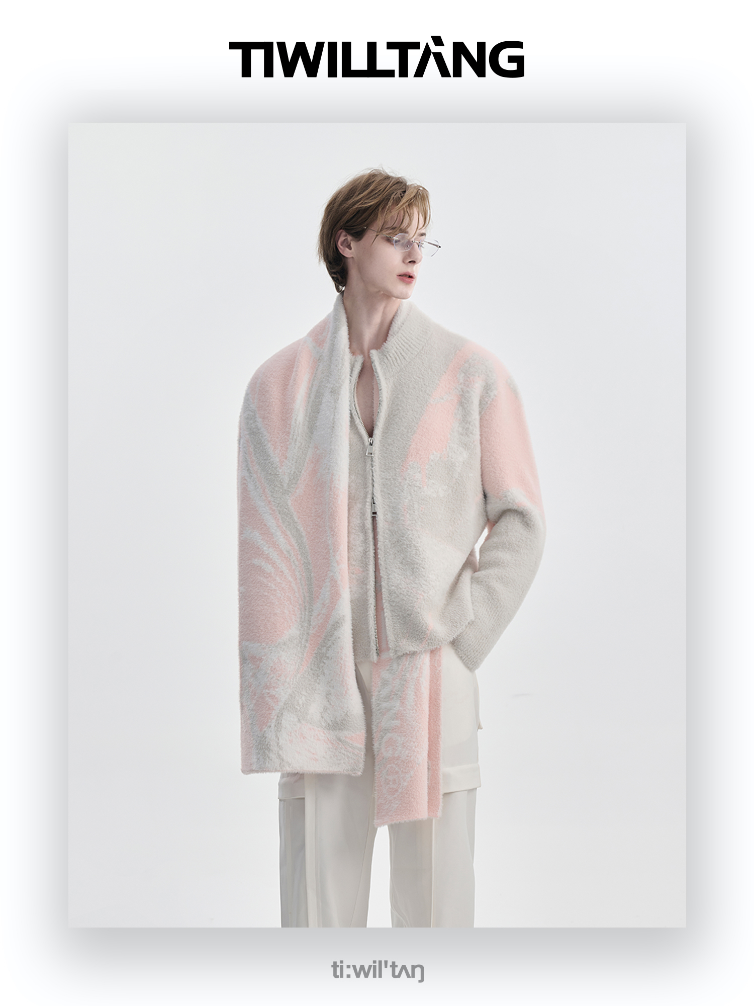 TIWILLTANG启世录“铃锓圣秩”仿貂毛图案拉链开衫提花针织衫潮