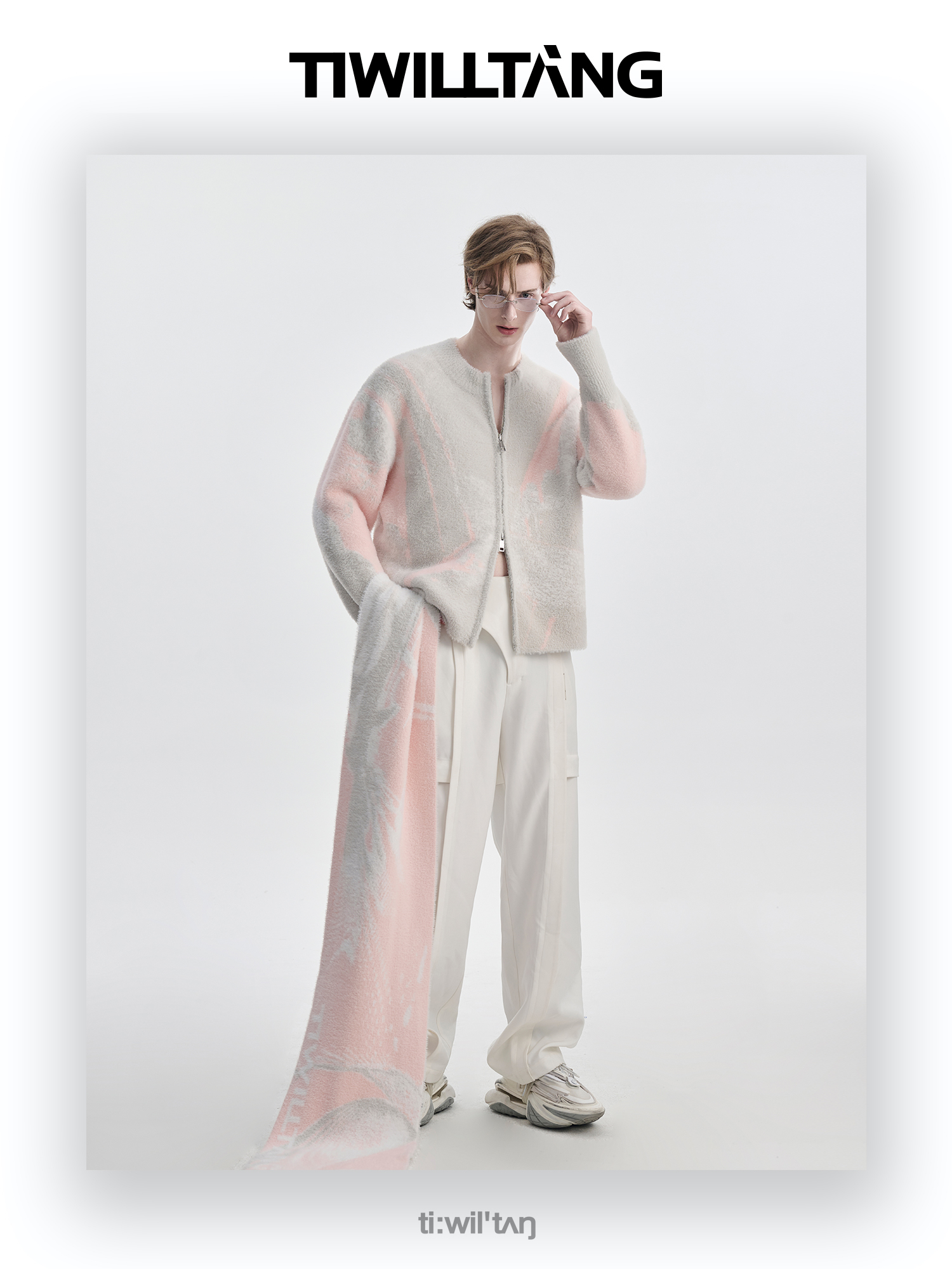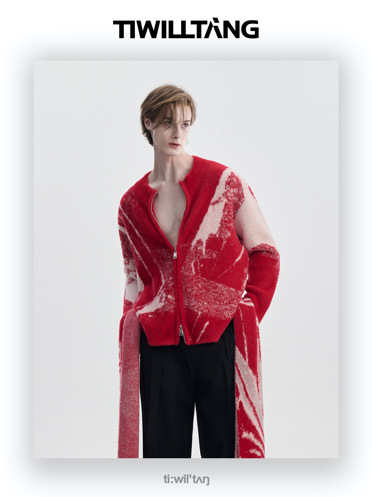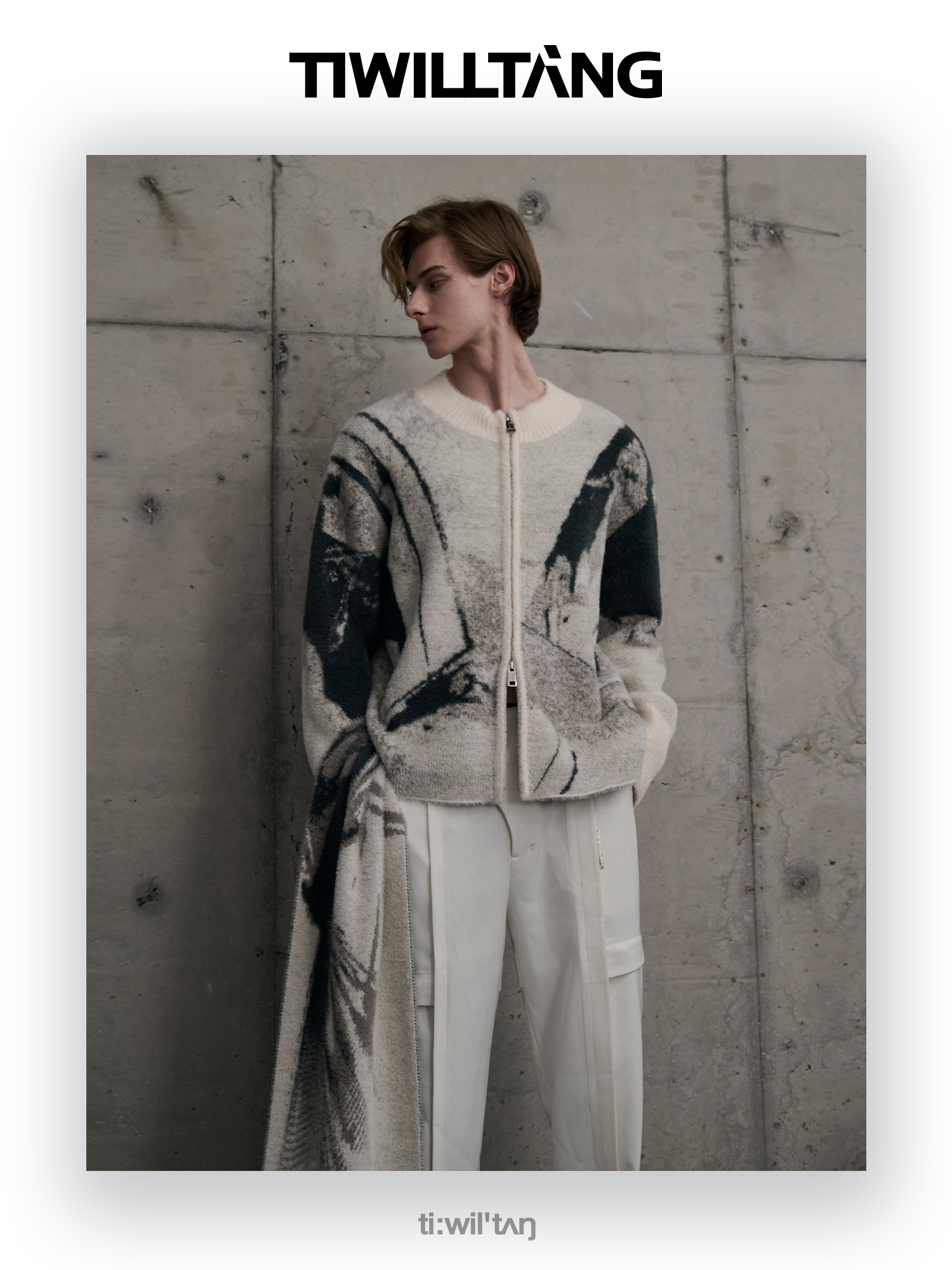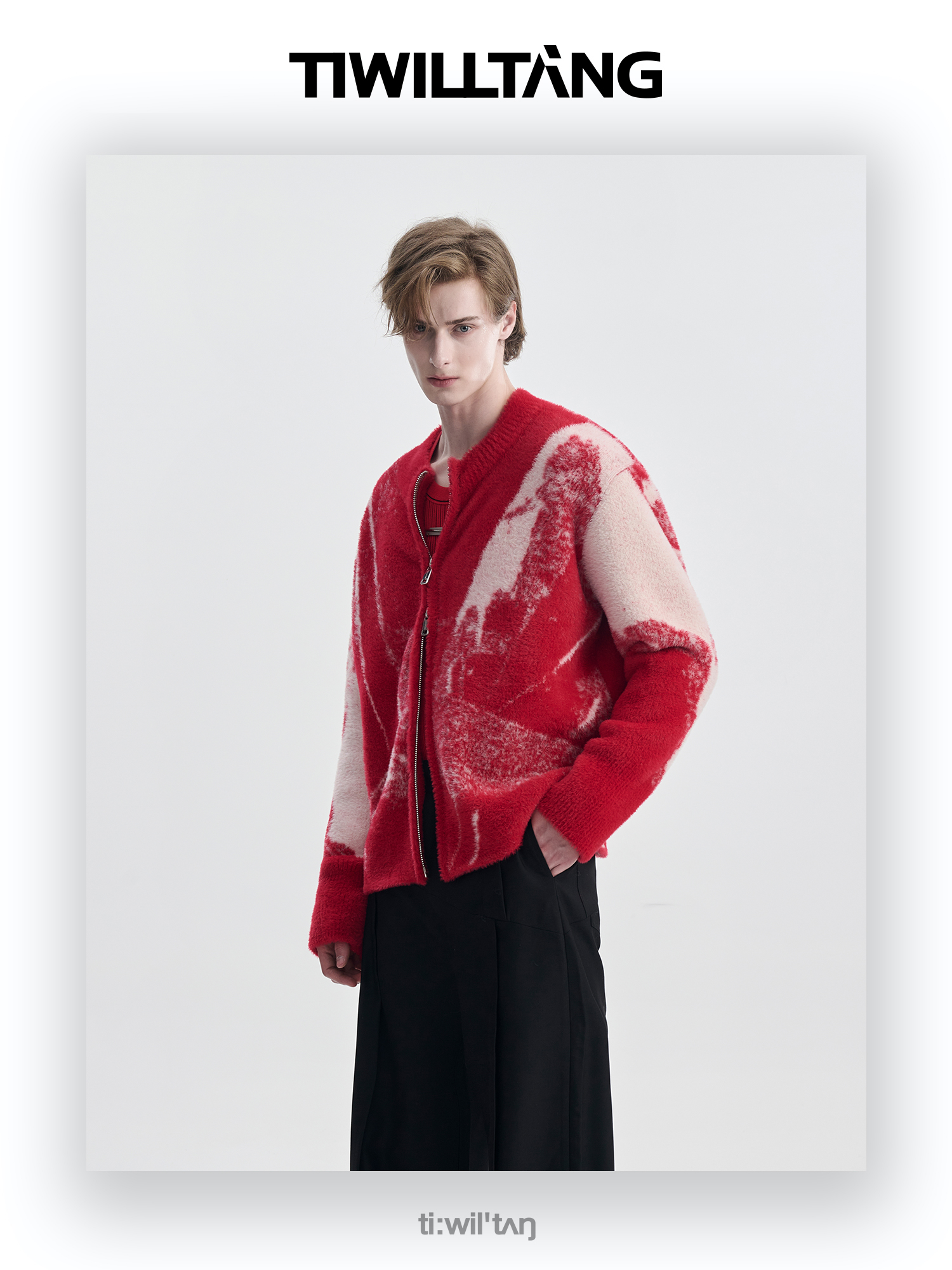 TIWILLTANG启世录“铃锓圣秩”仿貂毛图案拉链开衫提花针织衫潮
