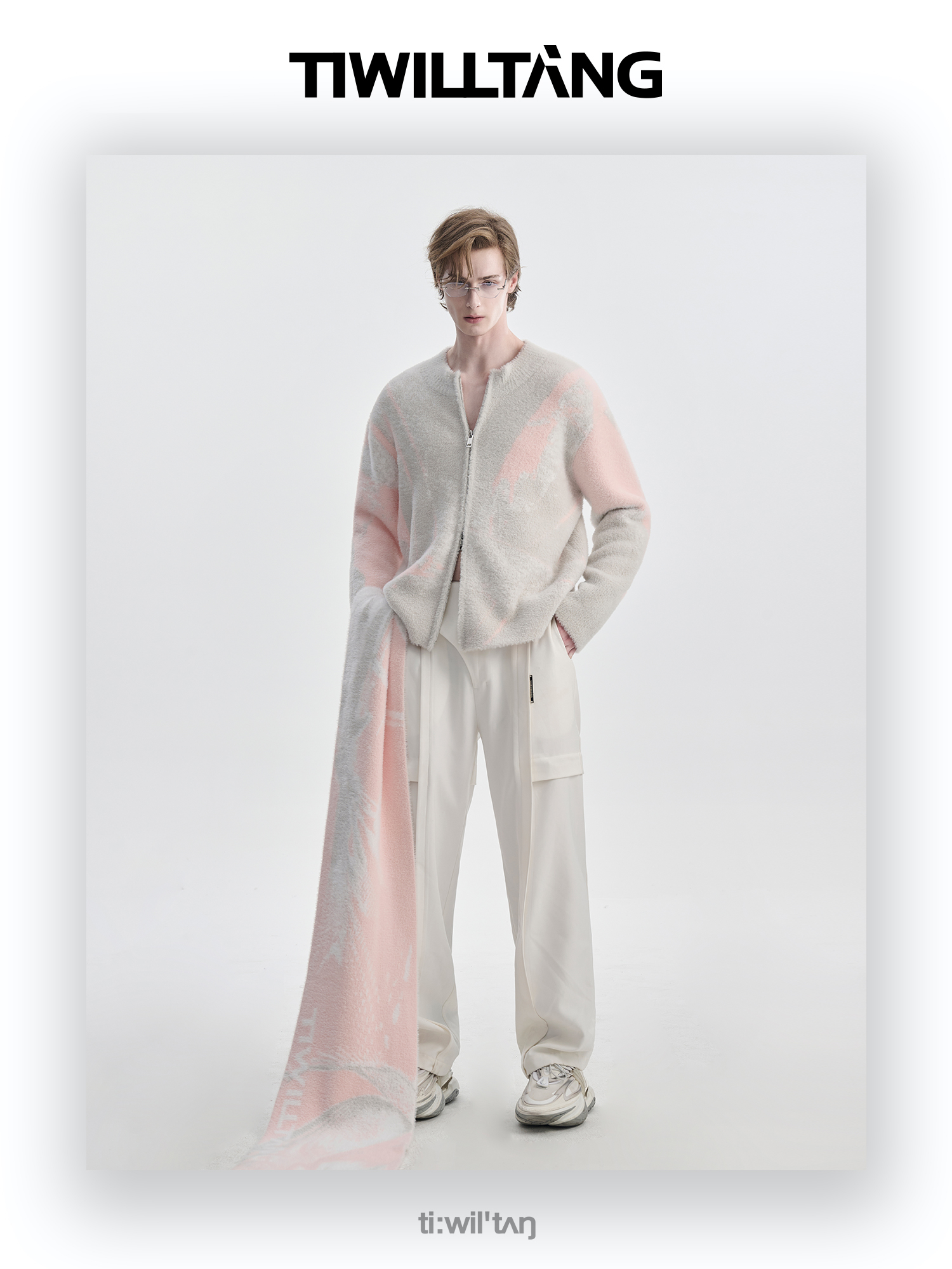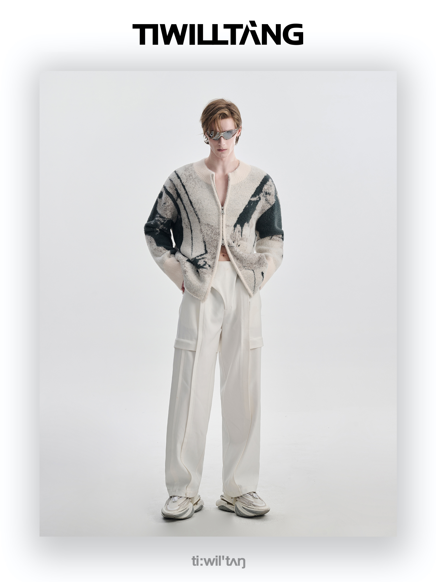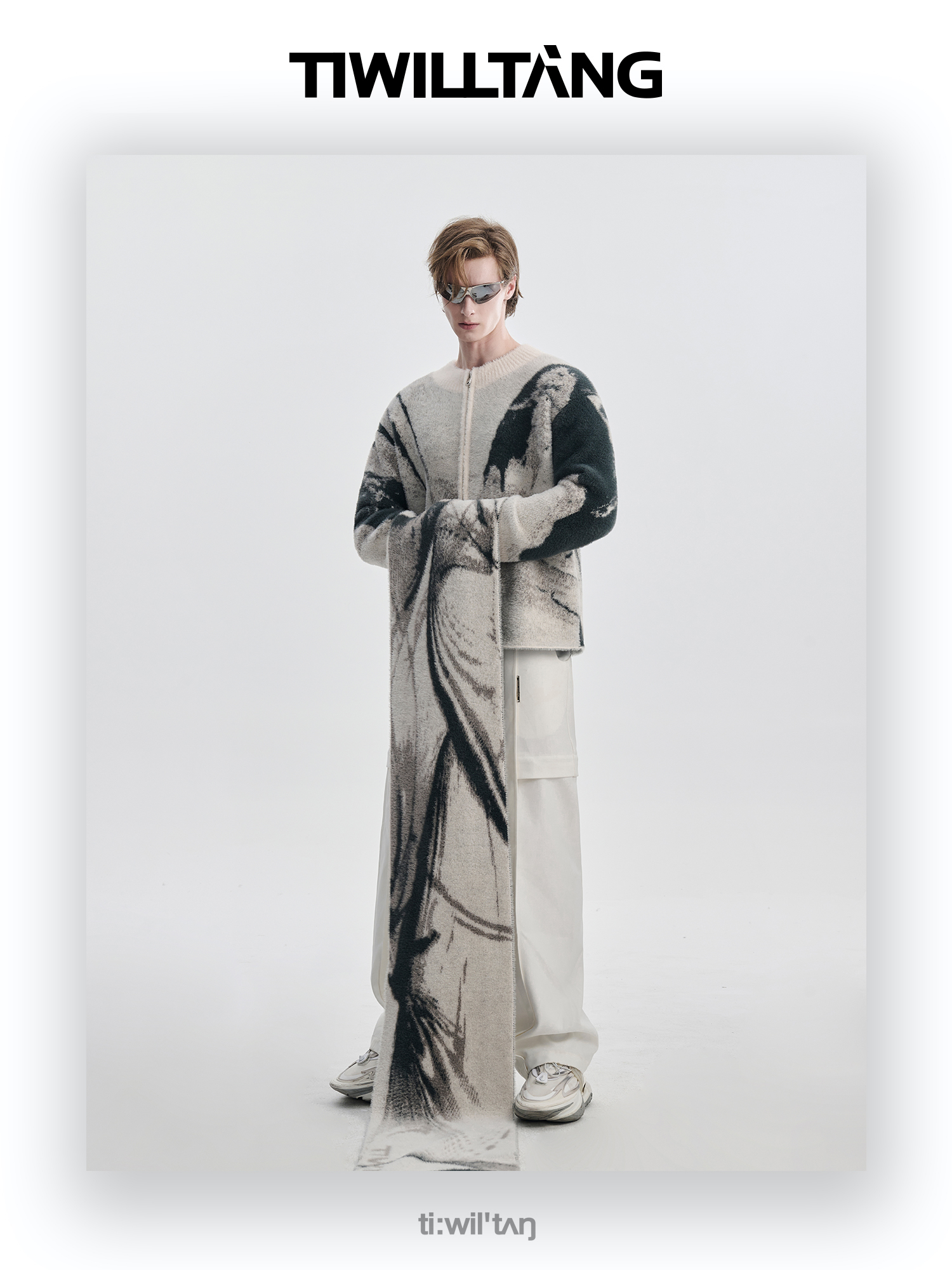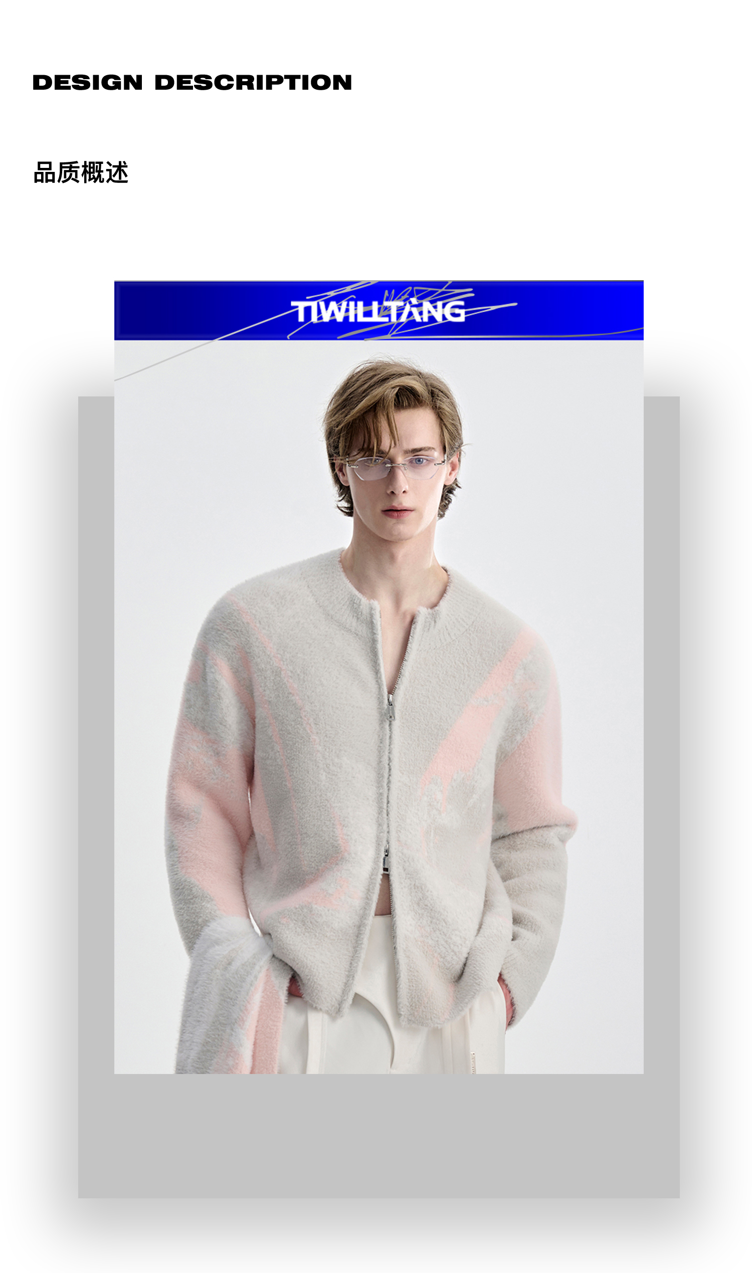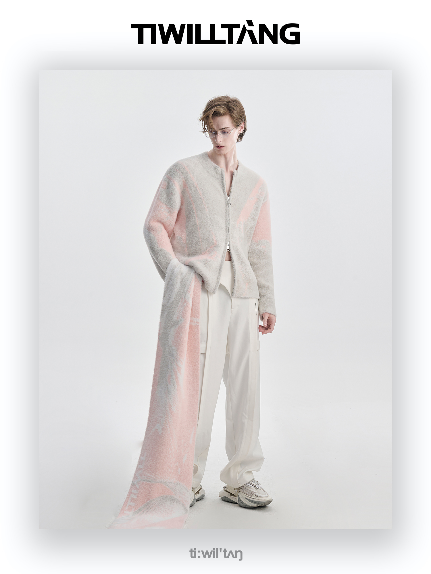 TIWILLTANG启世录“铃锓圣秩”仿貂毛图案拉链开衫提花针织衫潮