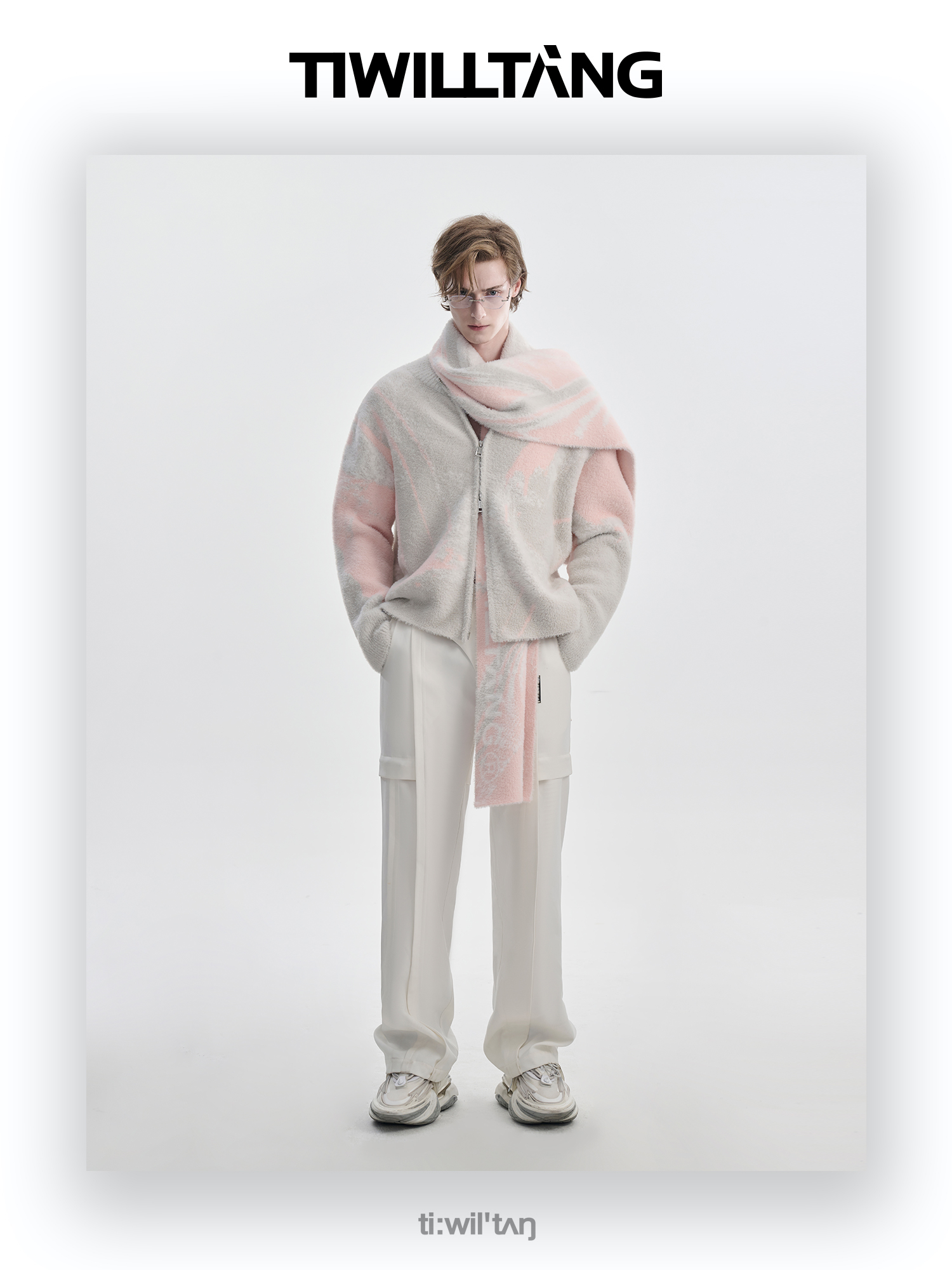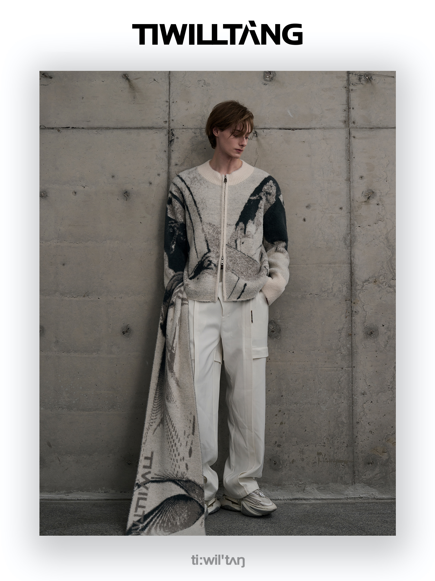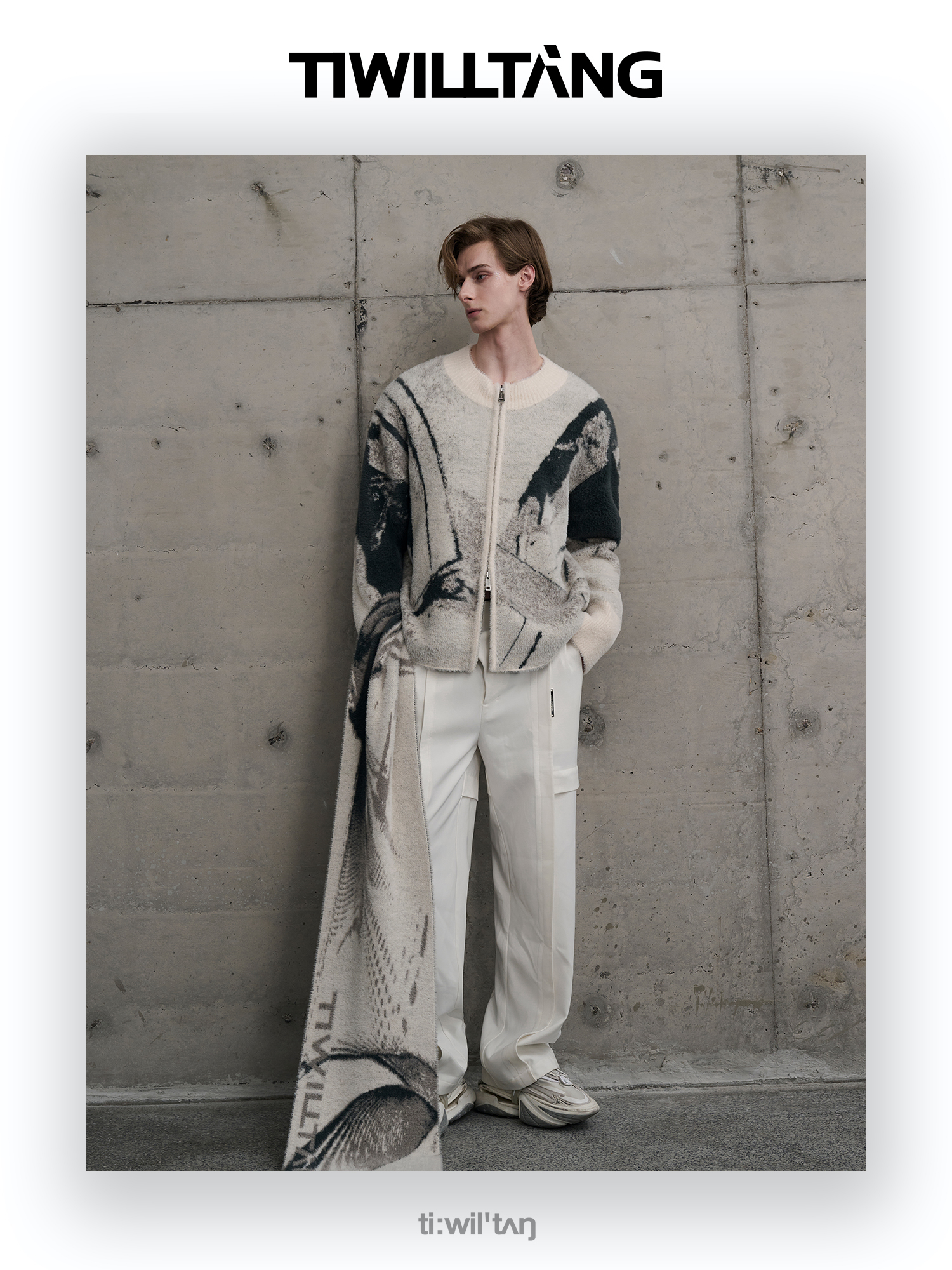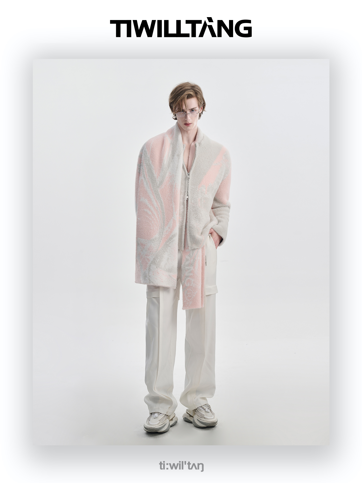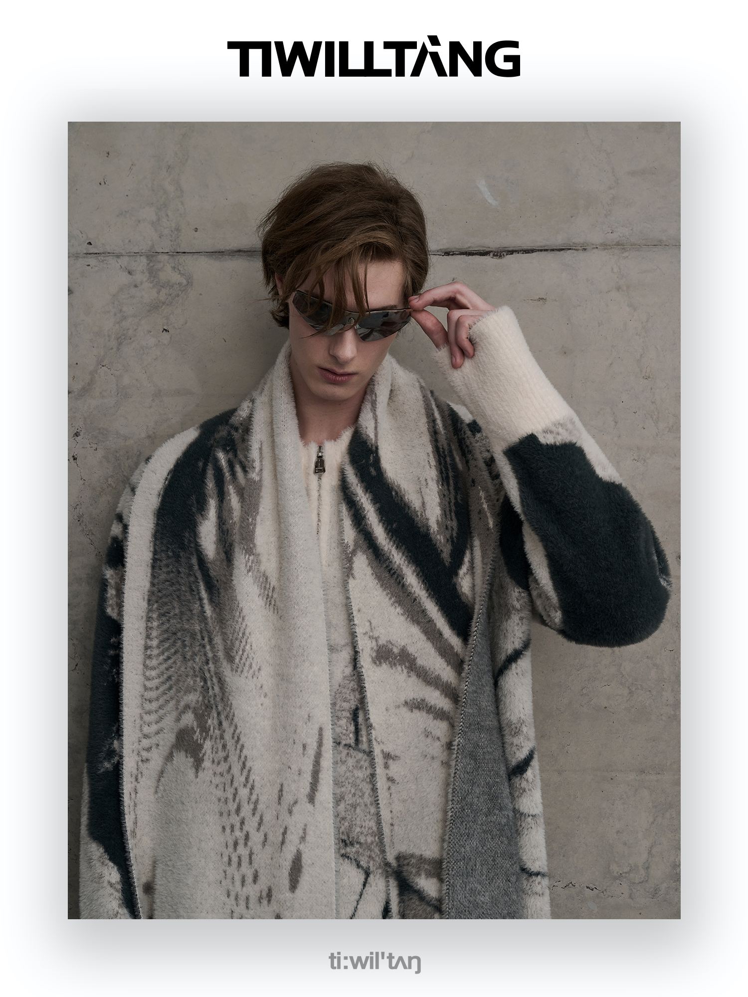 TIWILLTANG启世录“铃锓圣秩”仿貂毛图案拉链开衫提花针织衫潮