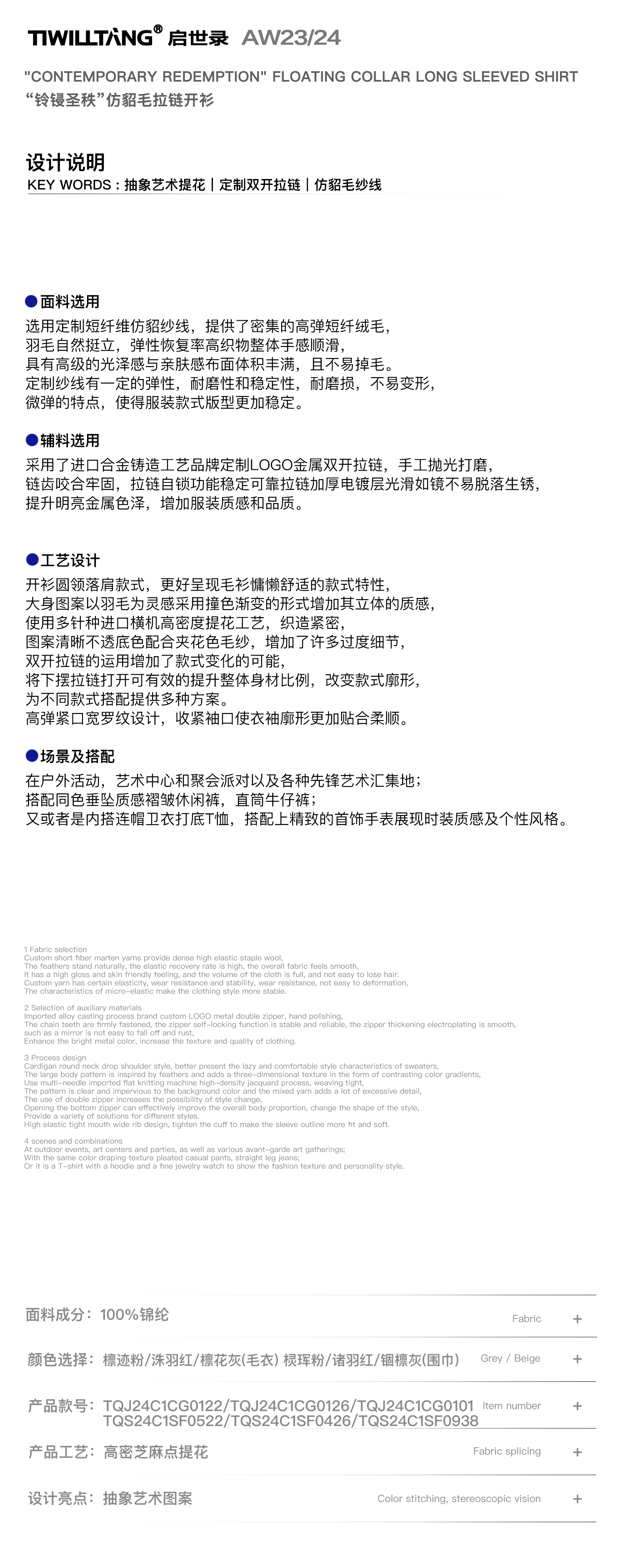 启世录TIWILLTANG“隙间曳影 ”高领拉链毛衫
