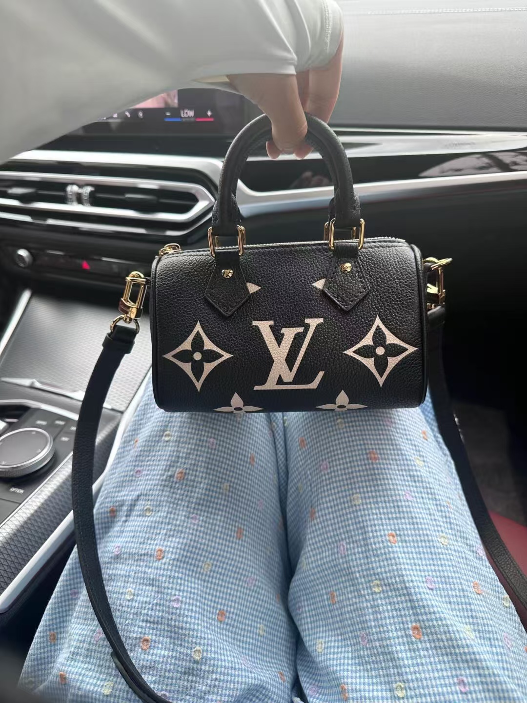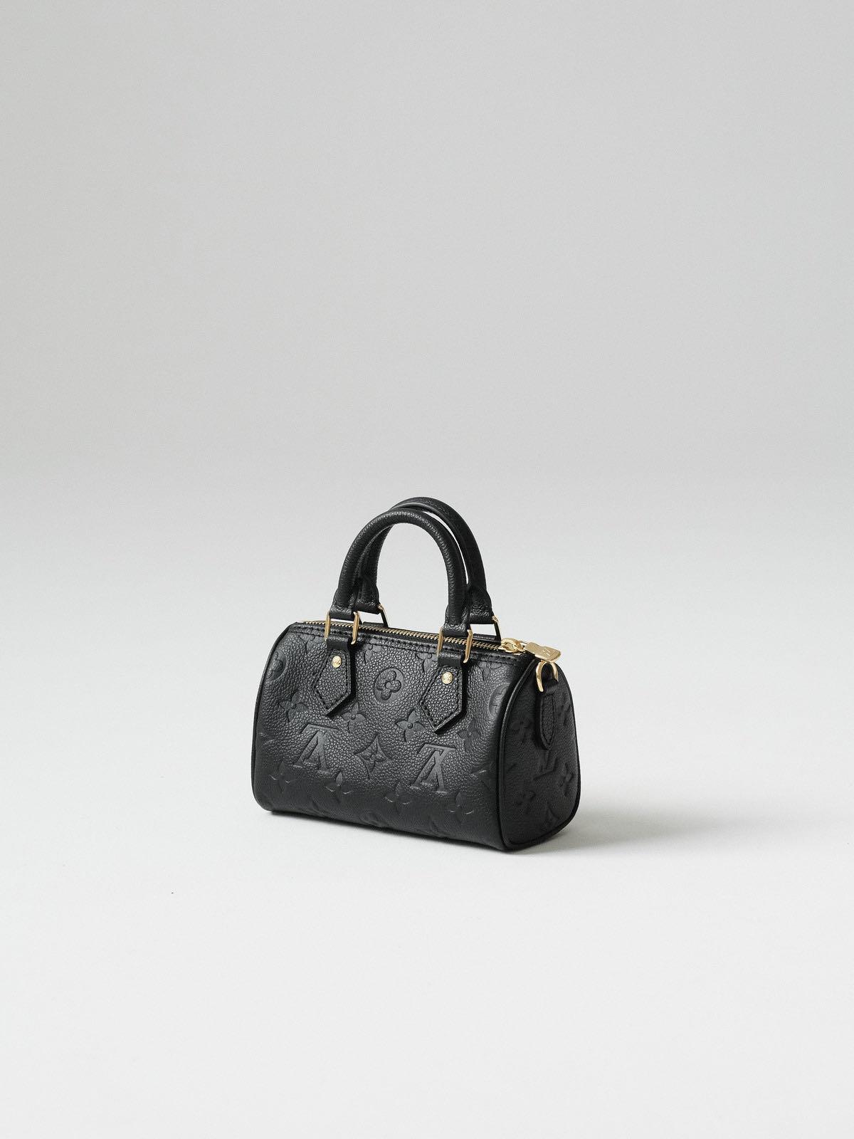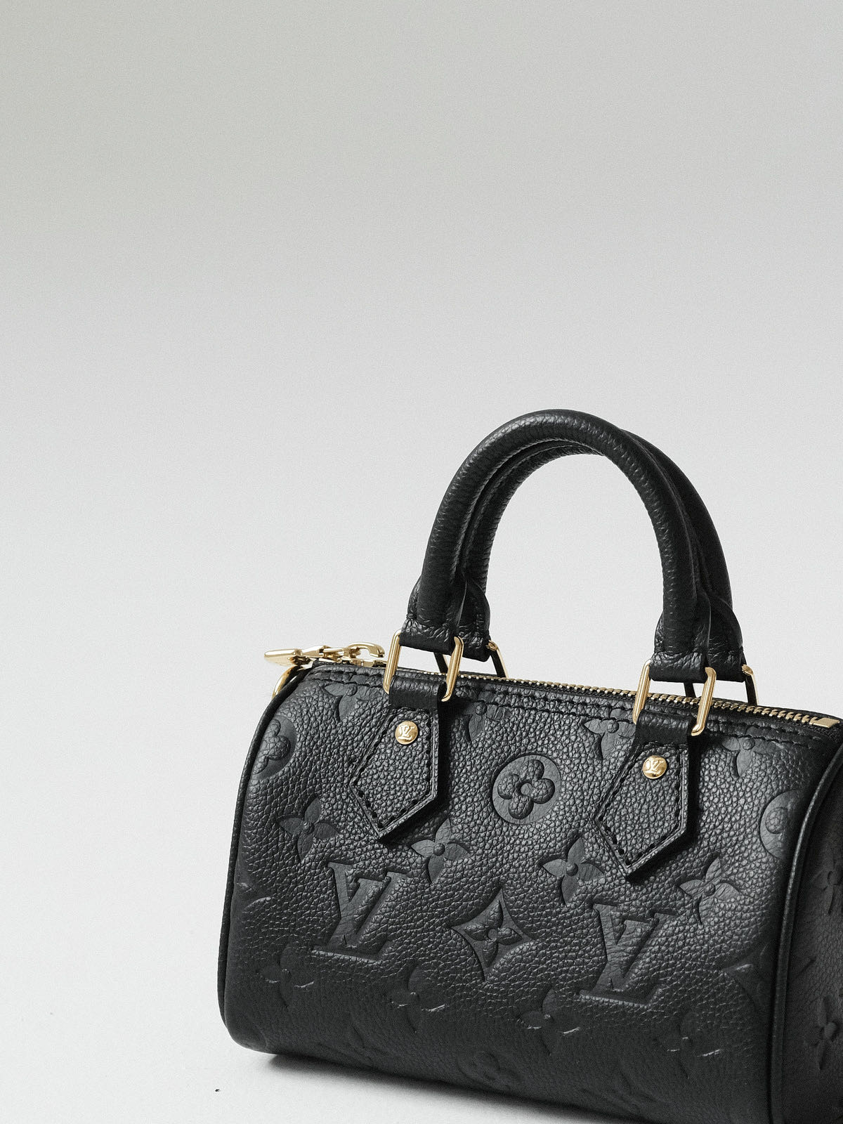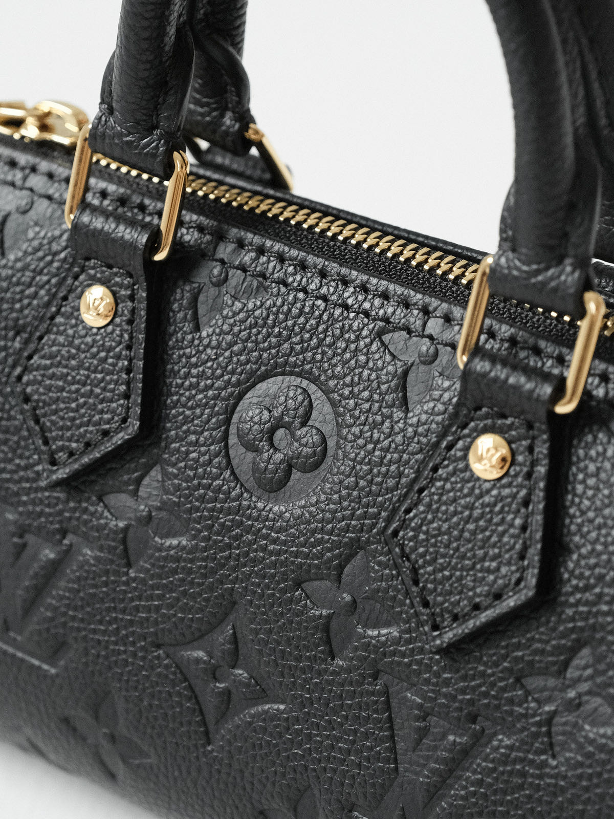 全皮nano迷你枕头包系列本款浓缩Speedy手袋的经典轮廓,为Monogram Empreinte 粒面皮革压印Monogram图案,成就柔软贴身的圆润构型。顶部手柄和可拆卸并调节的肩带实现多种背携方式。Nano Speedy手袋,散发极致女人味,全皮压花丝印可调节肩带迷你枕头包,是您携带日常用品的理想之选。这款手袋是原型Speedy手袋的完美迷你版,缝线精致,轻盈无比,顶部手柄和可拆卸并调节的肩带实现多种背携方式。