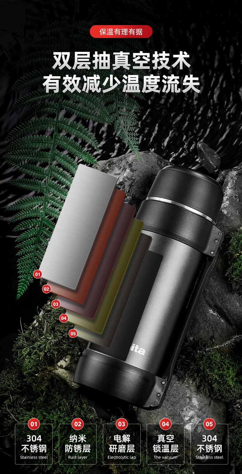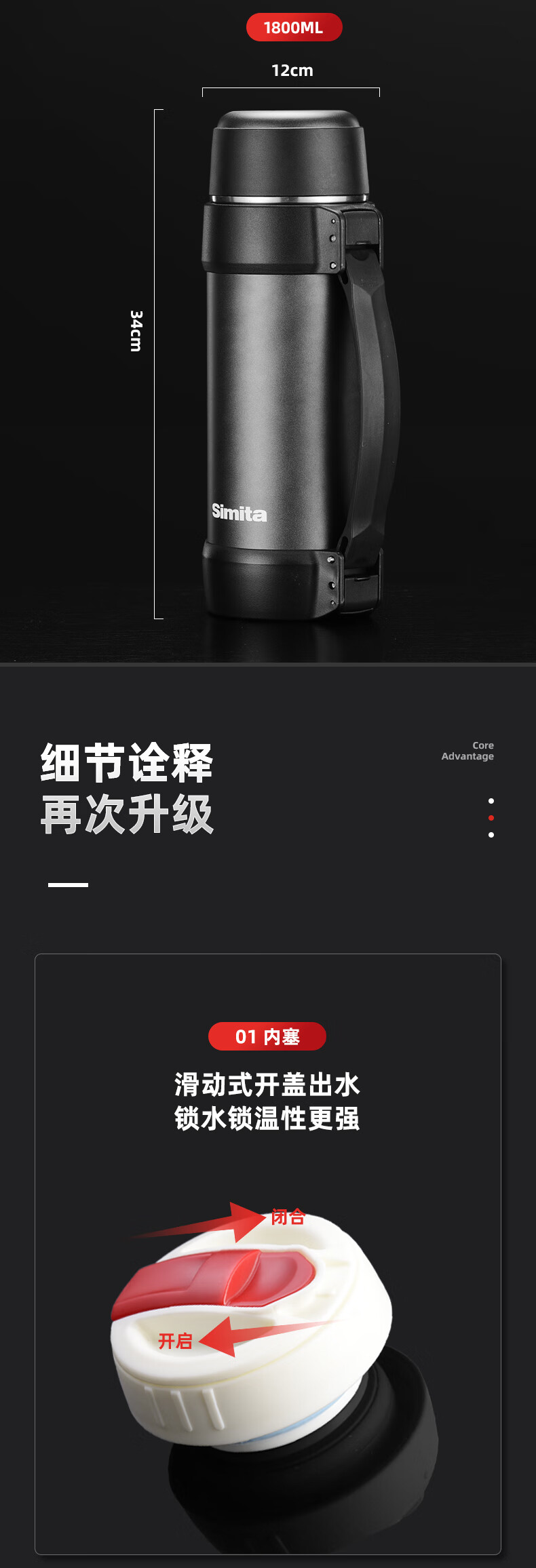 施密特(Simita)保温壶大容量保温壶男士户外便携车载水壶杯子家用水壶金点广口壶 MBH1005-180A
