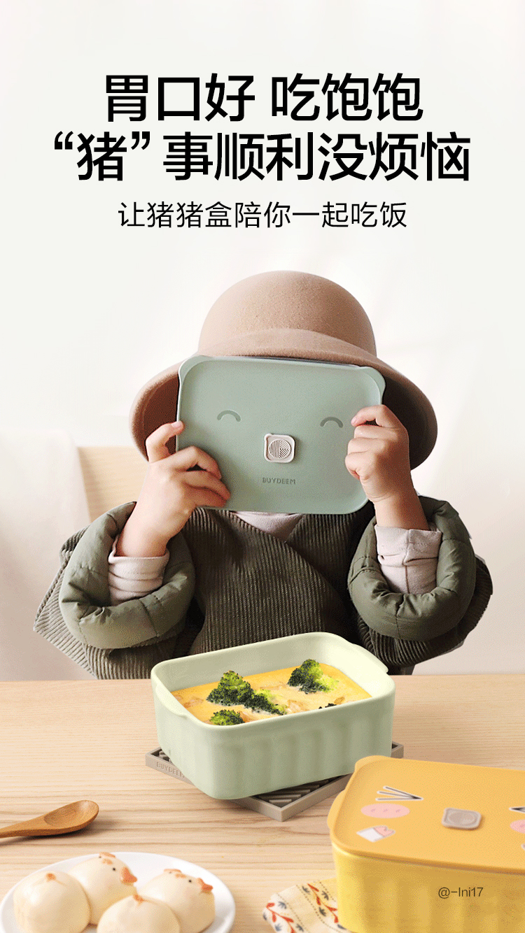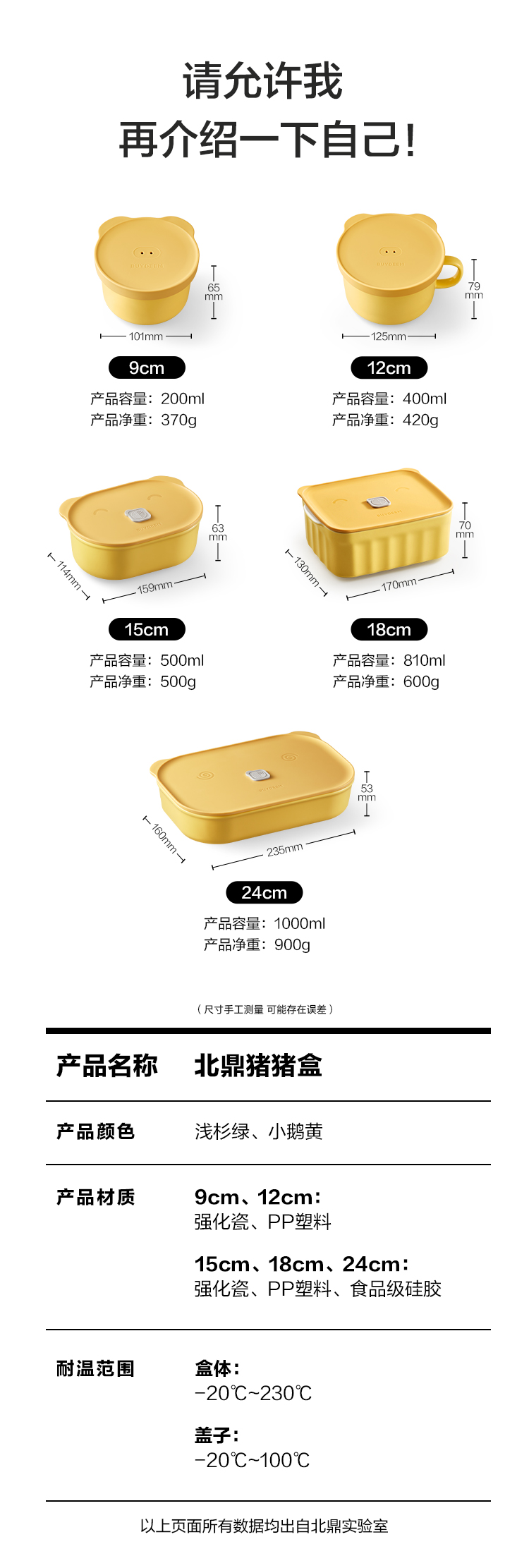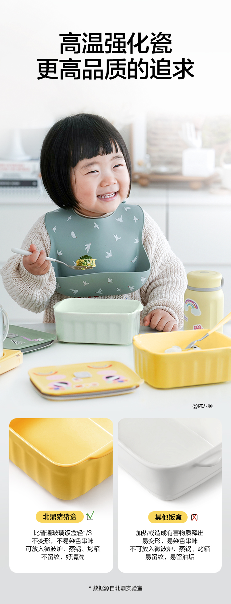 【18cm猪猪盒包装微瑕清仓】北鼎猪猪盒陶瓷碗一人食饭碗多功能便当盒电蒸锅多容量迷你餐盒
