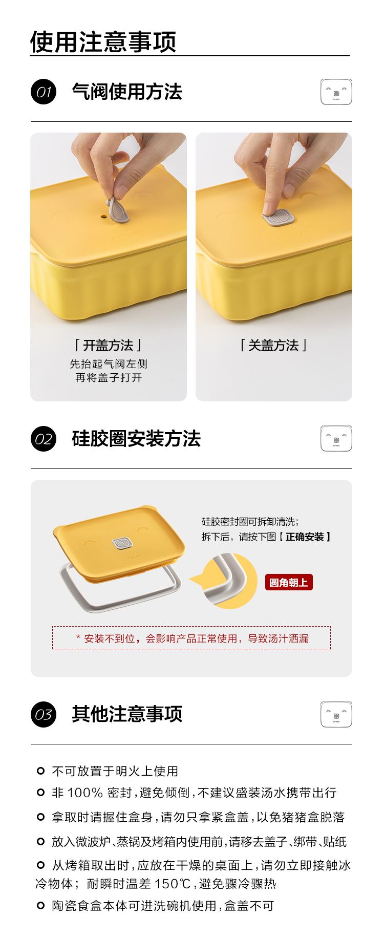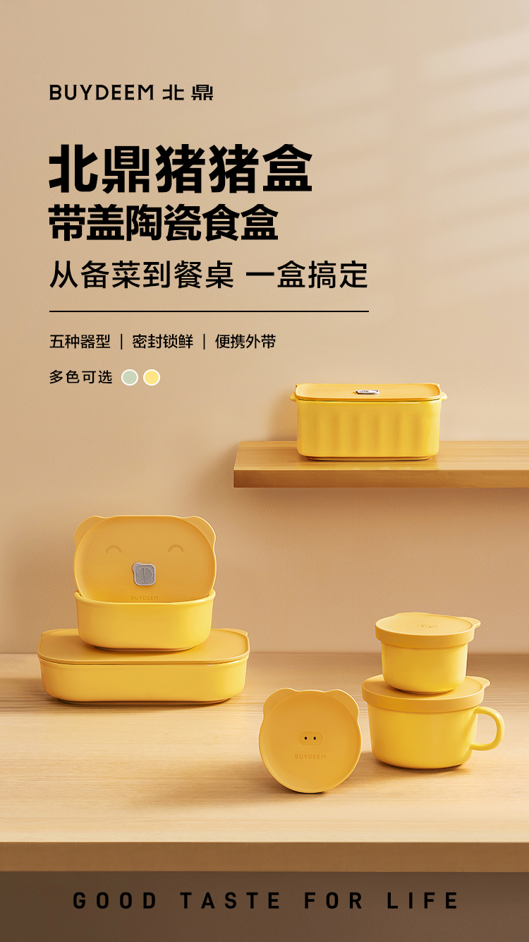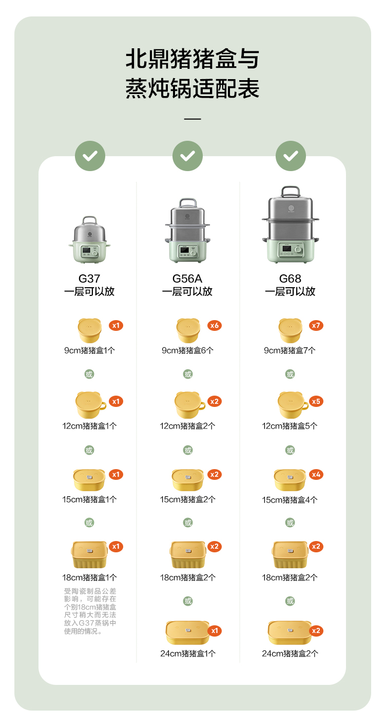 【18cm猪猪盒包装微瑕清仓】北鼎猪猪盒陶瓷碗一人食饭碗多功能便当盒电蒸锅多容量迷你餐盒