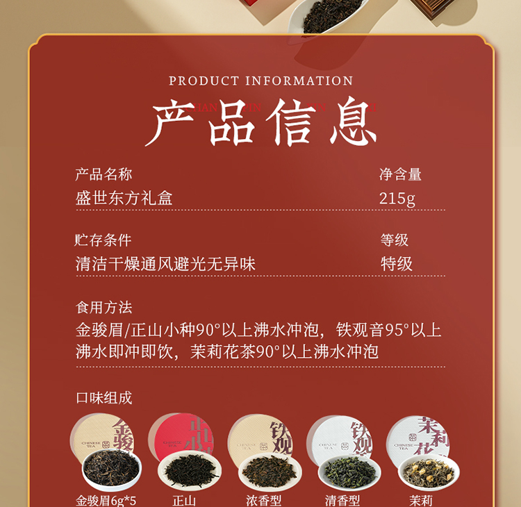 【盛世东方】去寻微信会员专享 特级金骏眉 正山小种 茉莉花 大红袍 铁观音 茶叶礼盒 净含量215g