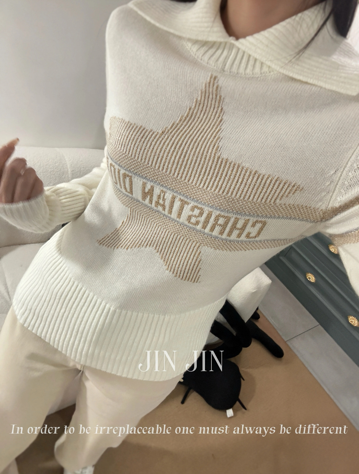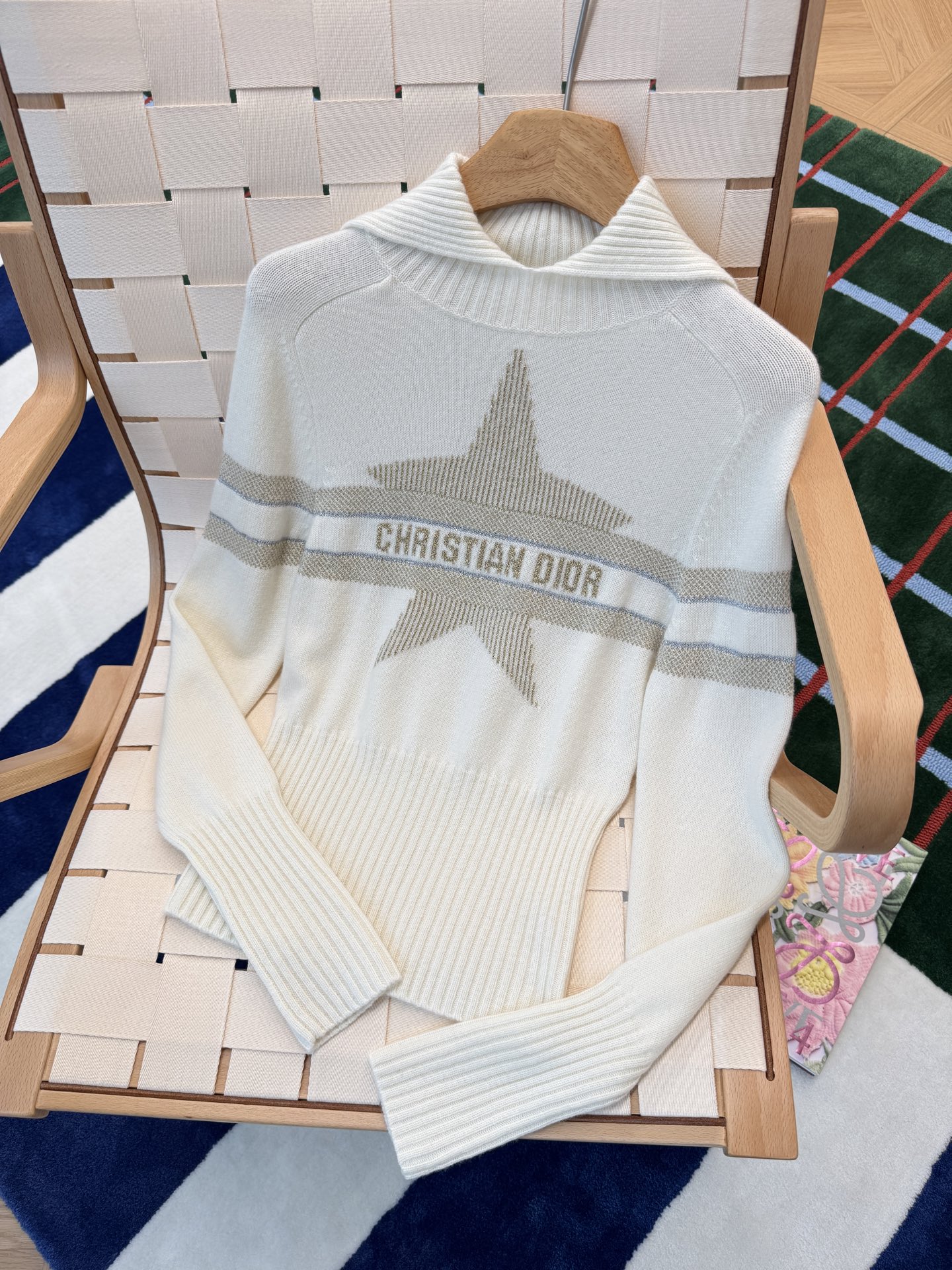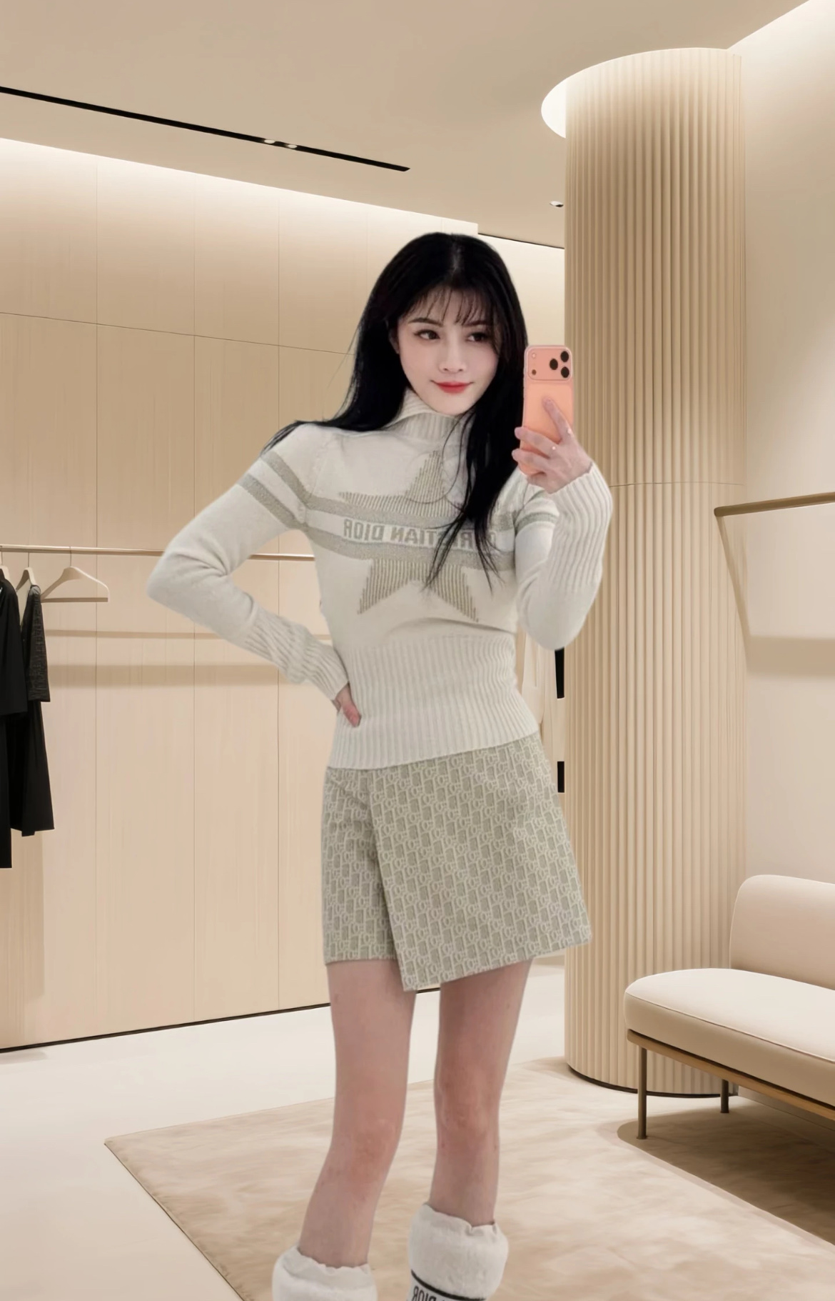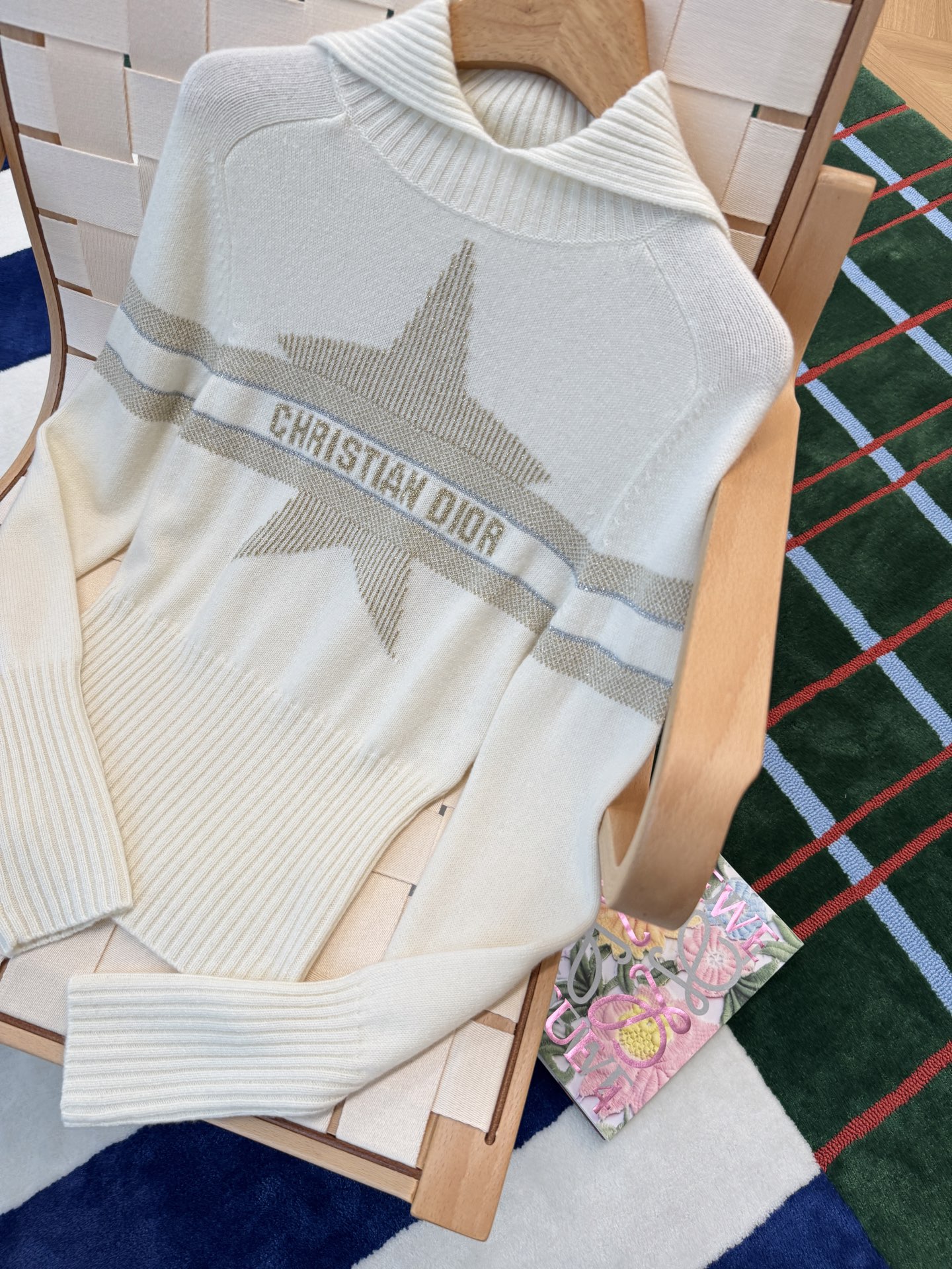 25年新款滑雪限定系列🎿必留款🆕套头小翻领五角星针织衫收腰设计真的很显瘦👍🏻超温柔的奶白色➕金丝线设计香香软软的真的很乖常规版型✨特别精致贴身穿着完全不扎,软软糯糯更舒适亲肤上身骨感显瘦纤细身材线条感~~ 将运动风格与高端时尚融合真的是太太太好看啦码数SML