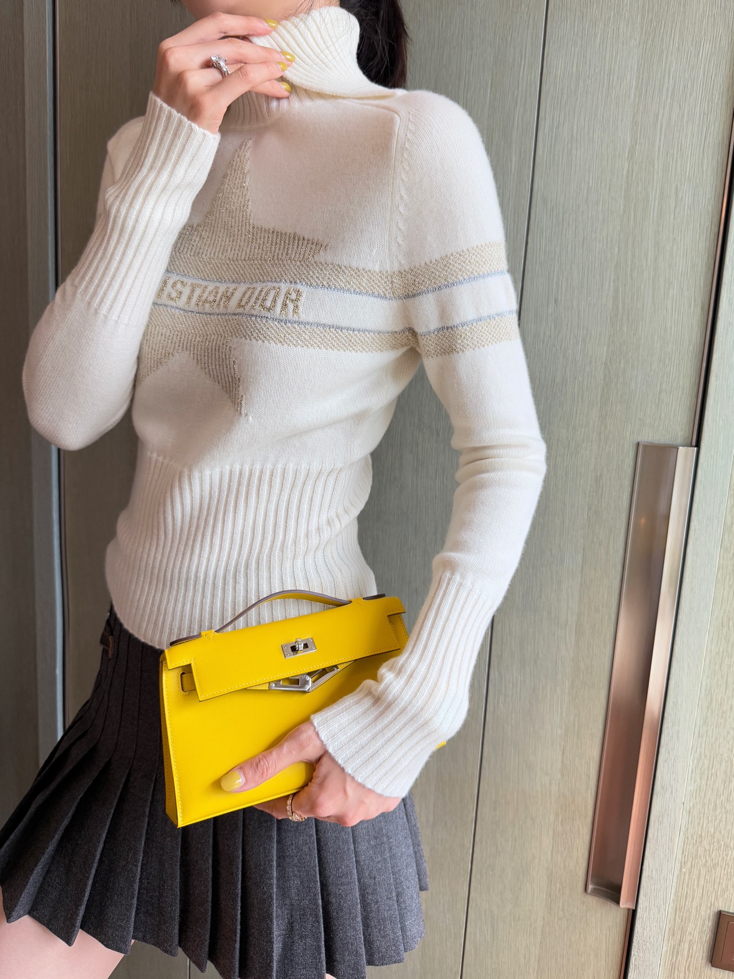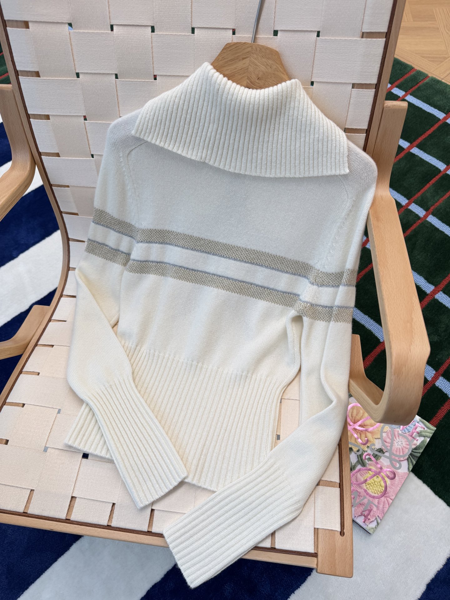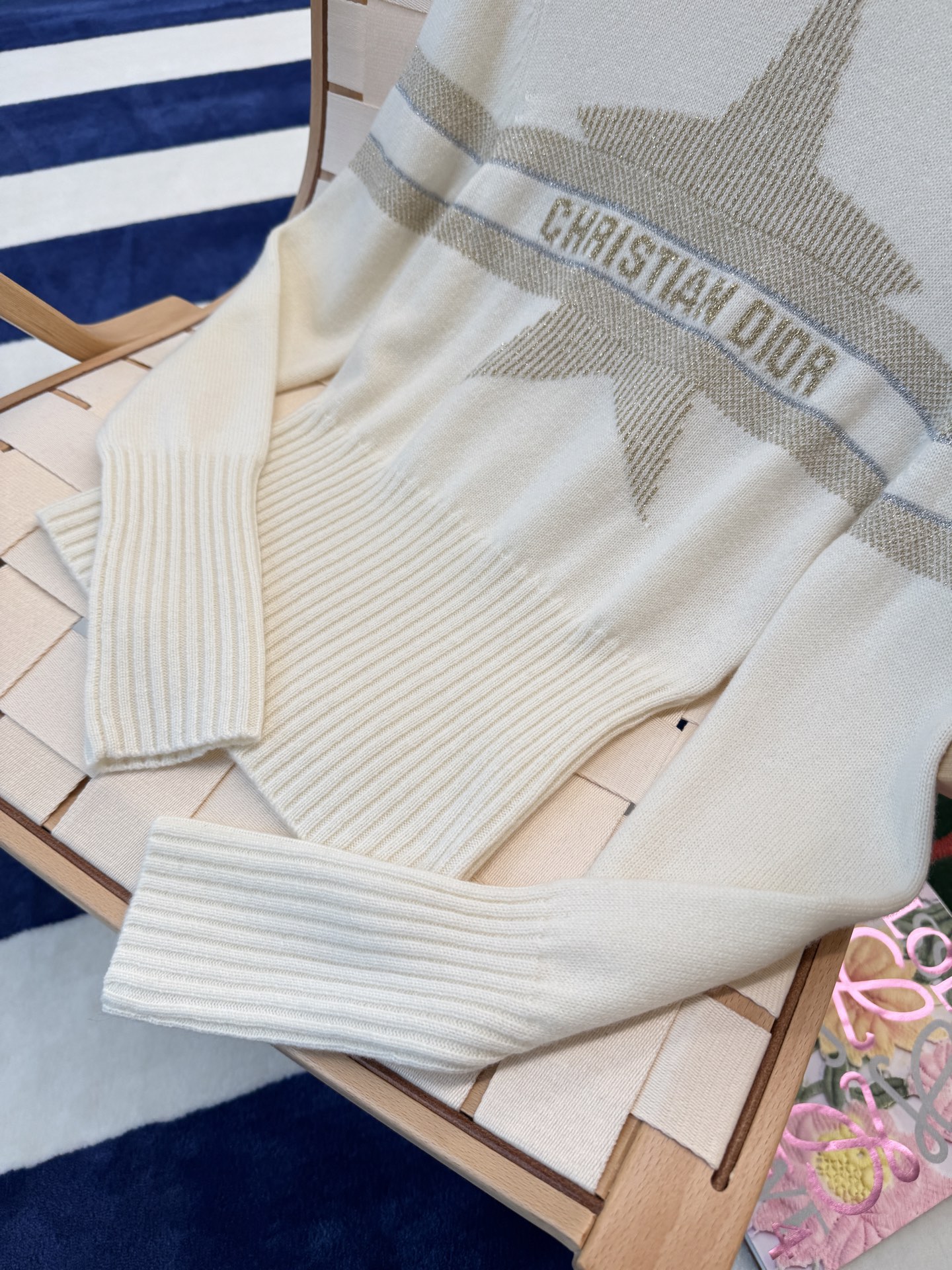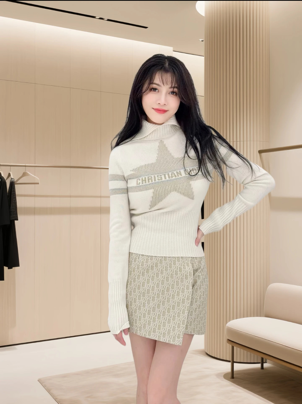 25年新款滑雪限定系列🎿必留款🆕套头小翻领五角星针织衫收腰设计真的很显瘦👍🏻超温柔的奶白色➕金丝线设计香香软软的真的很乖常规版型✨特别精致贴身穿着完全不扎,软软糯糯更舒适亲肤上身骨感显瘦纤细身材线条感~~ 将运动风格与高端时尚融合真的是太太太好看啦码数SML