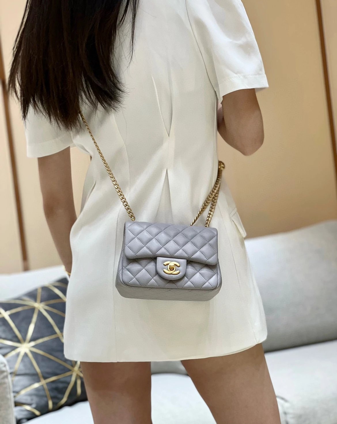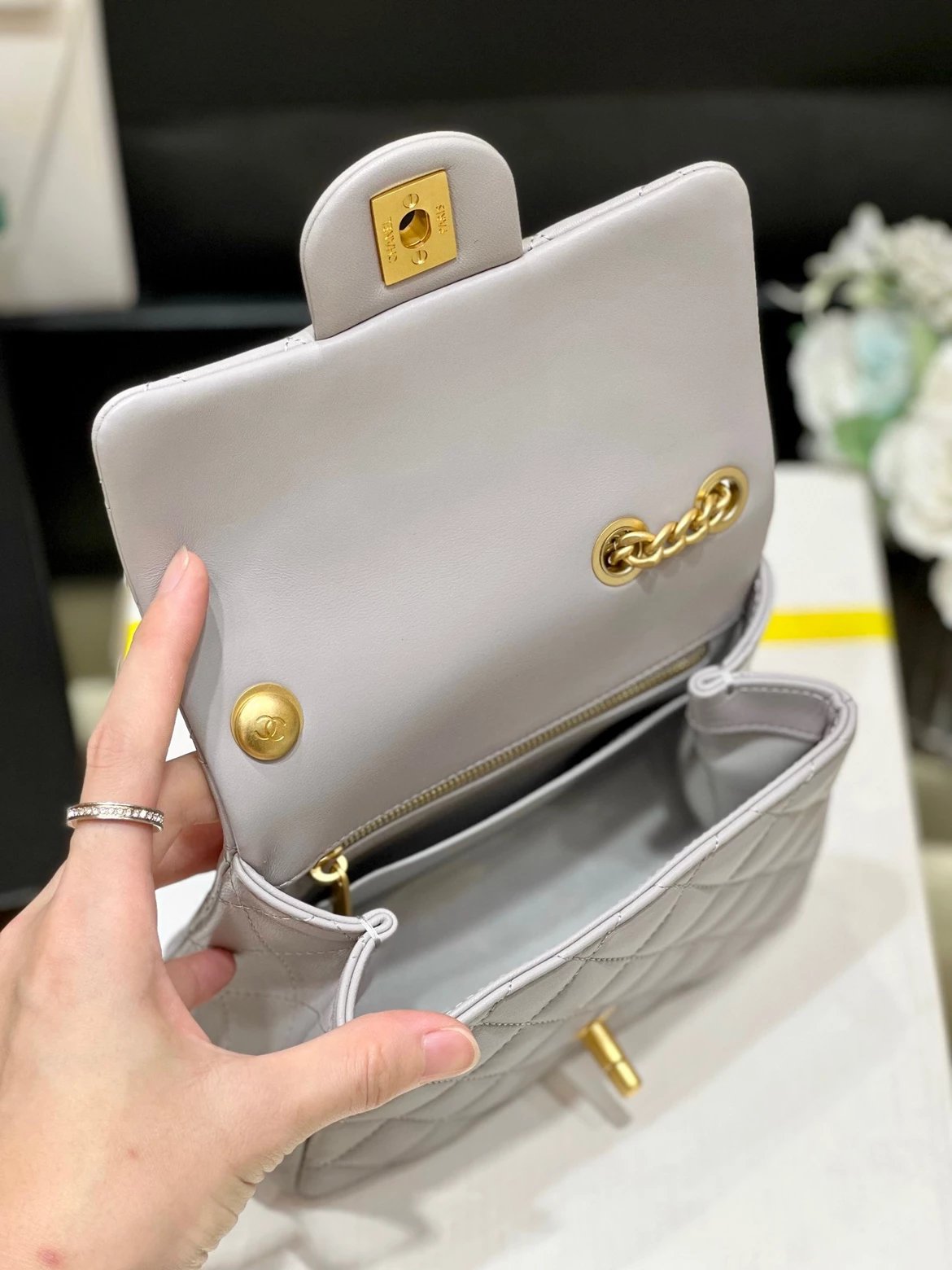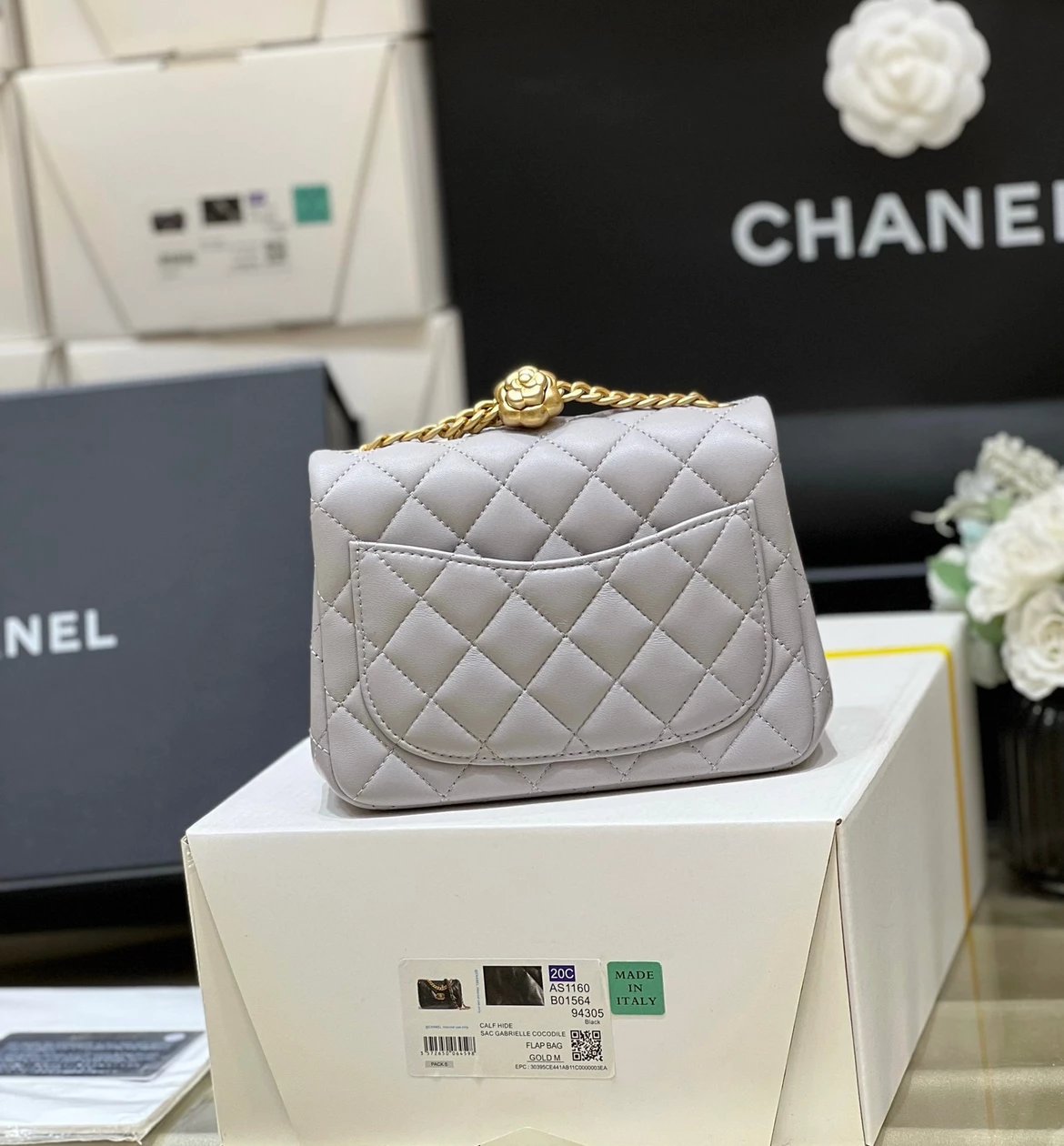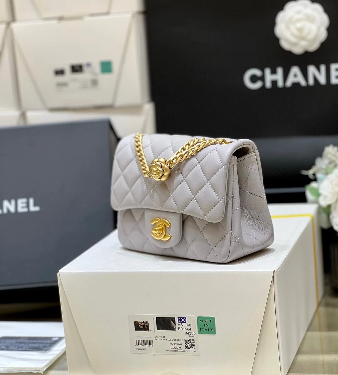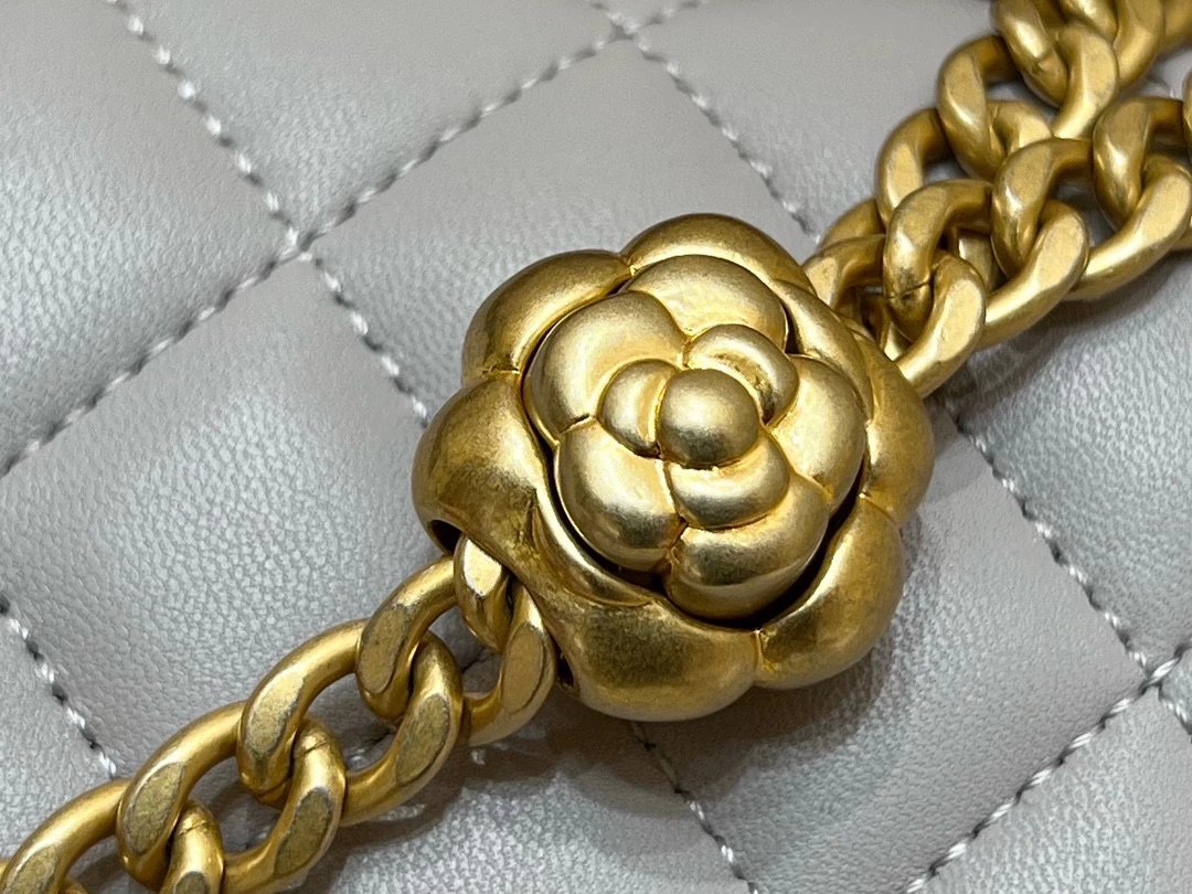 香奶奶|23S山茶花金属扣方胖子大mini|KX 版本‼️ 纯原厂 23S 山茶花调节扣 ZP 4130入 23s的是用山茶花代替了小金球,同样非常好看 调节扣可以随意调节长短,实用内里用了桃红色羊皮,搭培 皮料:欧洲原厂方框小羊皮 。五金:意大利镀厚金做旧五金 货源稀少,经常容易断货 整个包的手感与真品达成一致[庆祝] 。尺寸;18cm 大20cm
