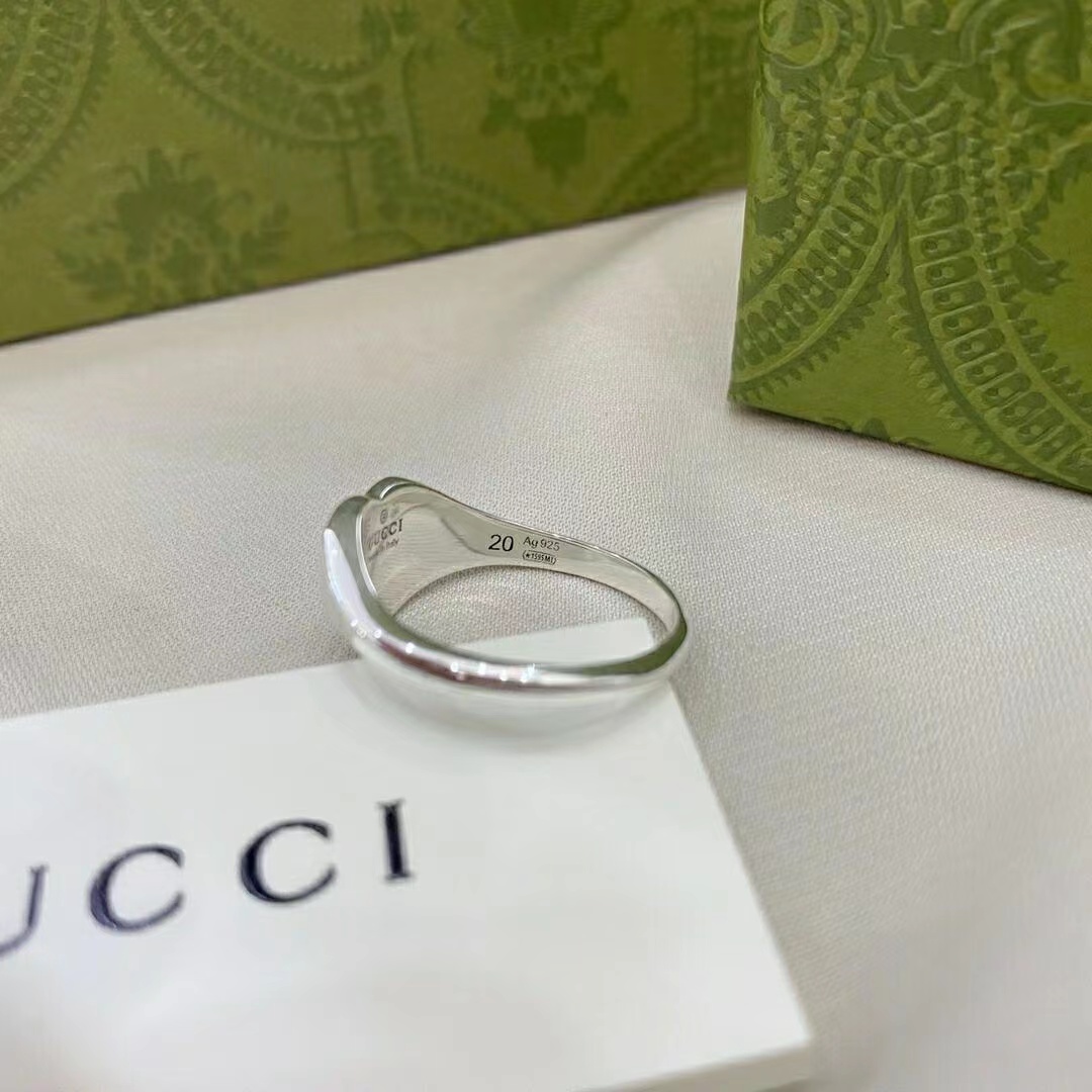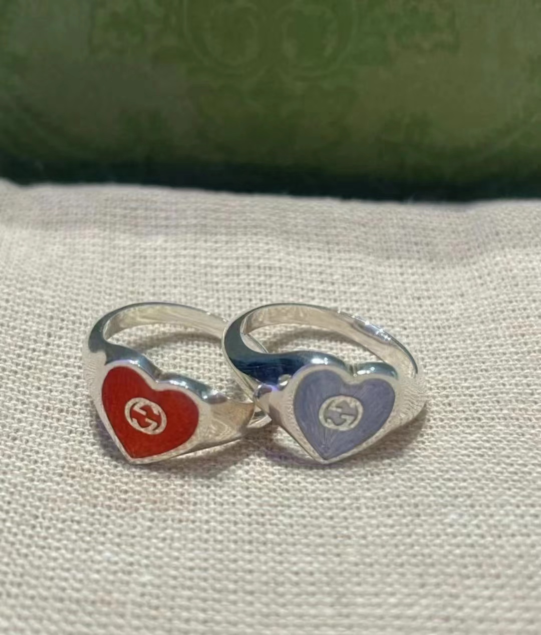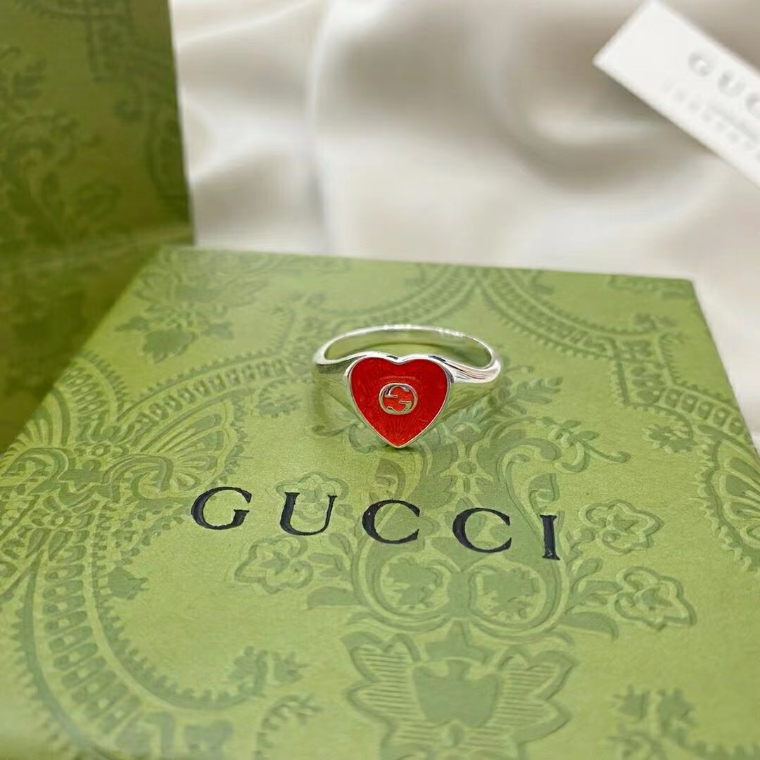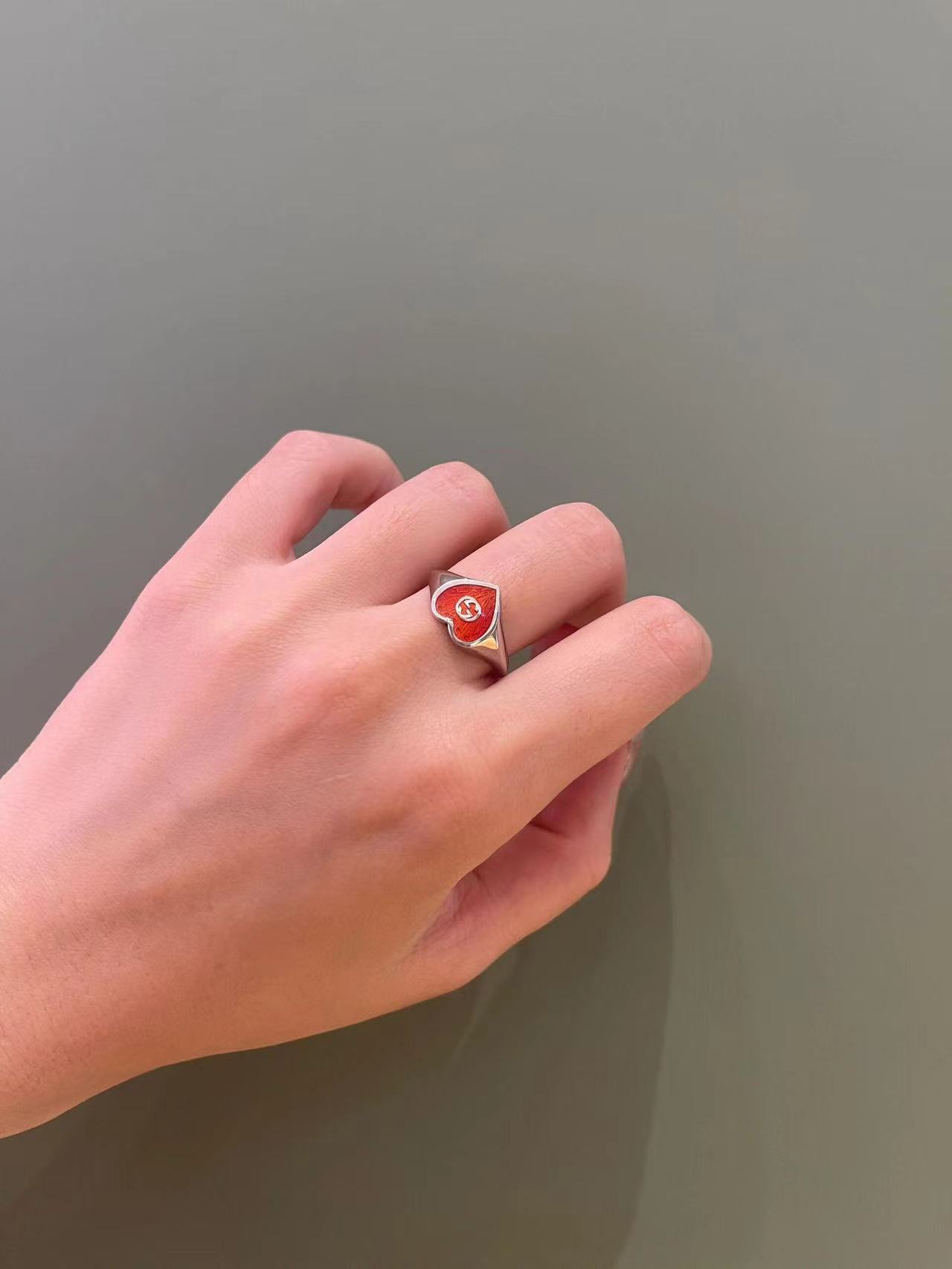 Gucci古驰925纯银双G珐琅红色爱心戒指