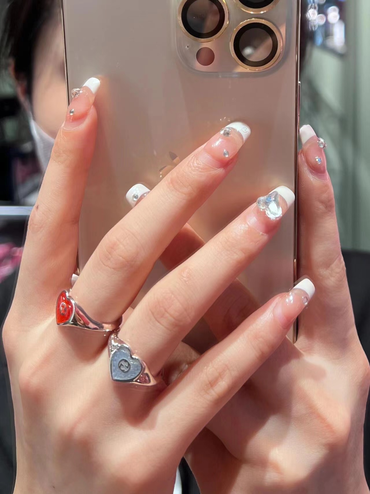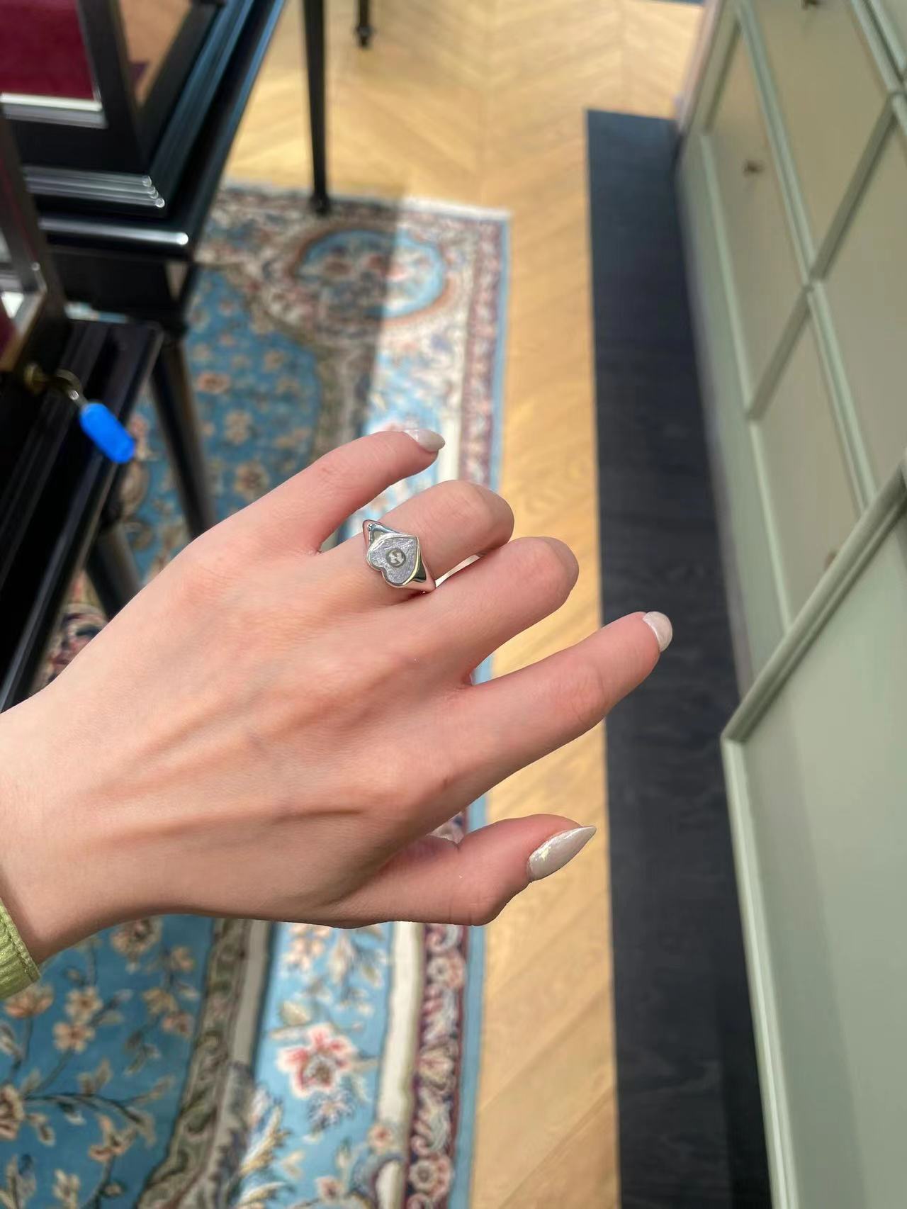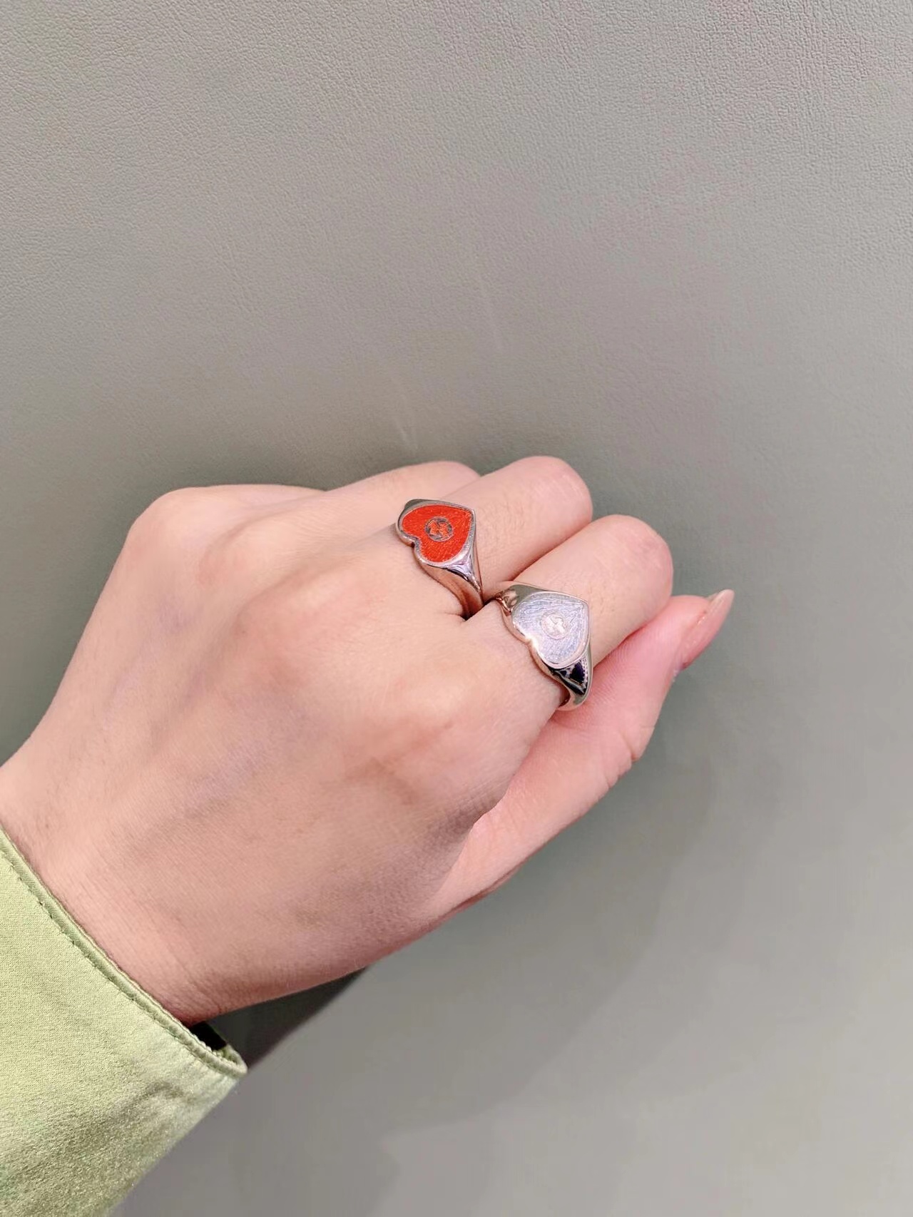 Gucci古驰925纯银双G珐琅红色爱心戒指