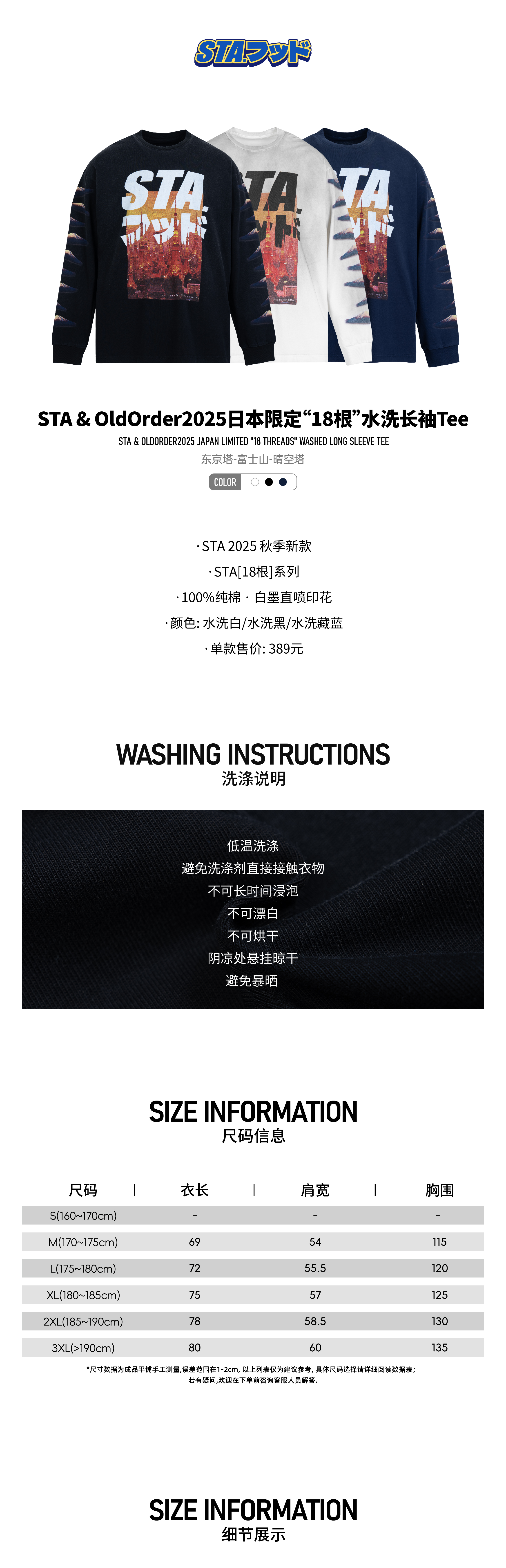 STA&OldOrder2025日本限定“18根”水洗长袖Tee