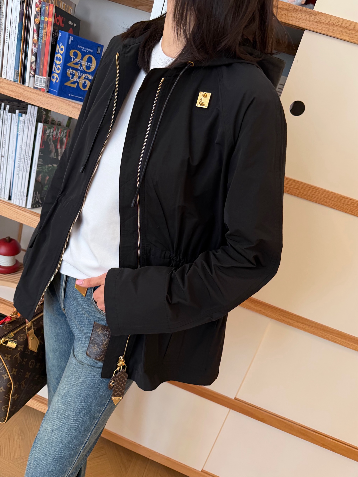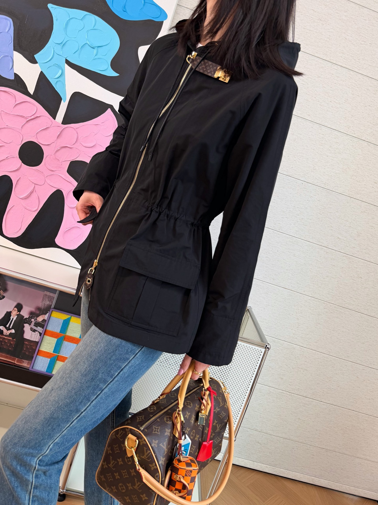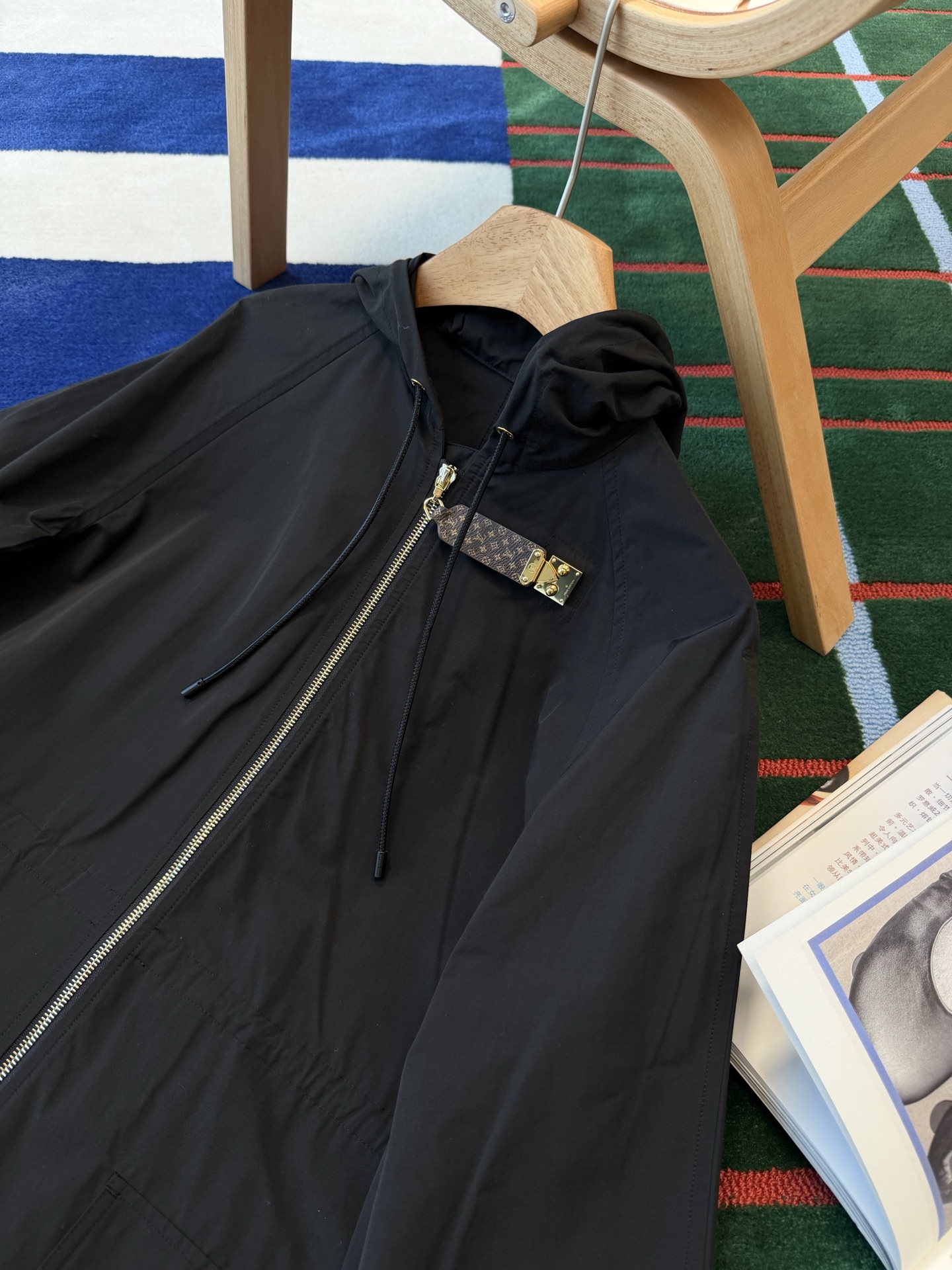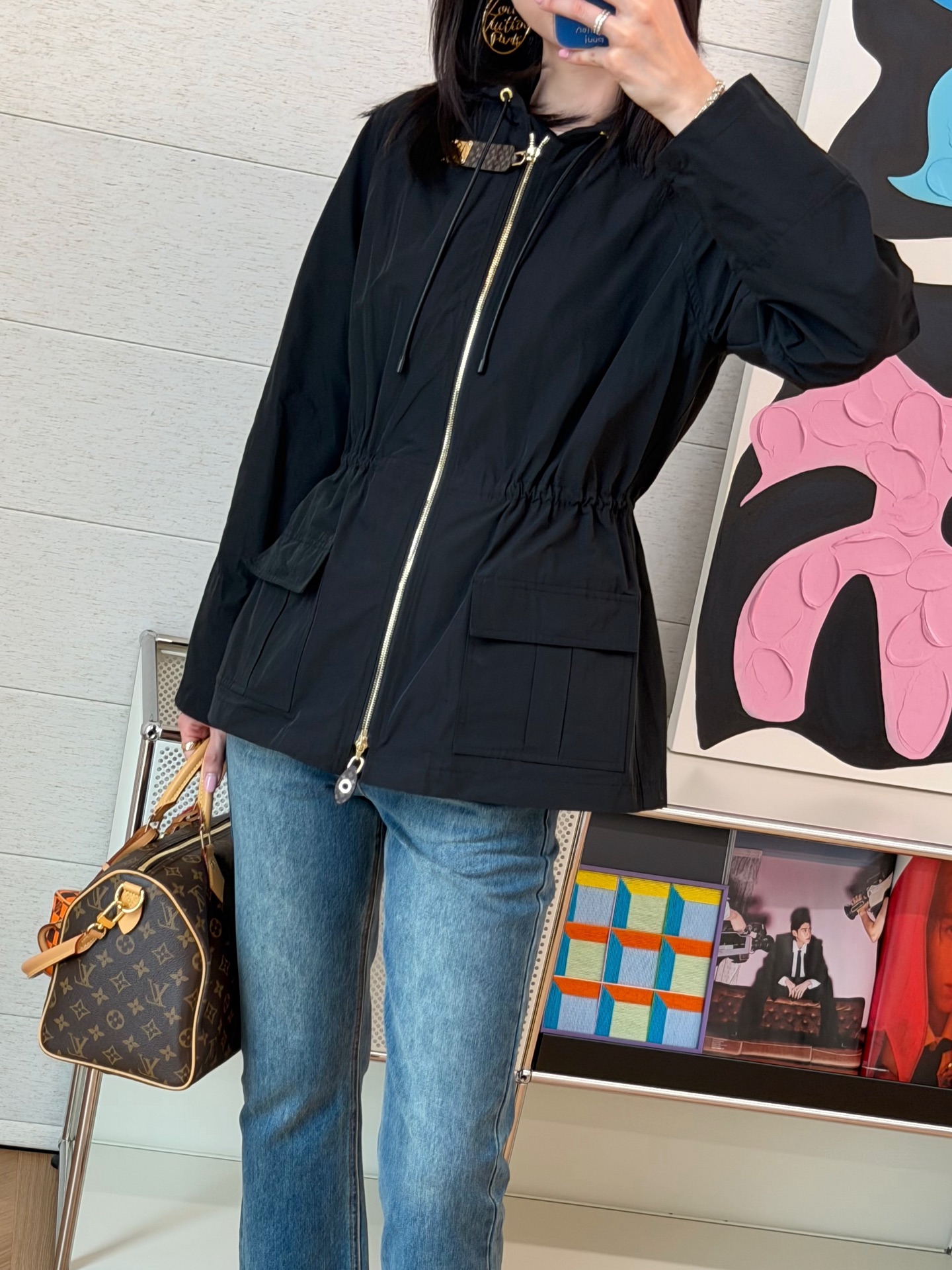 【超级爆款上线】新款🆕连帽抽绳风衣外套,经典黑色自带高级质感🫶🏻低调不张扬却超级有记忆点😉简约利落又吸睛,日常通勤也能穿出时髦感😍腰部抽绳设计,随性飒爽又优化身材比例🔝宽松显瘦不挑身材,怎么穿都好看👍面料紧实密度均匀,挺括有型,上身软糯舒适🥳定制顺滑金属拉链+老花饰扣,质感细节拉满💯版型和工艺都非常考究✨春夏过渡、日常通勤必备,人人都好穿😘闭眼入不踩雷🕶️码数SML