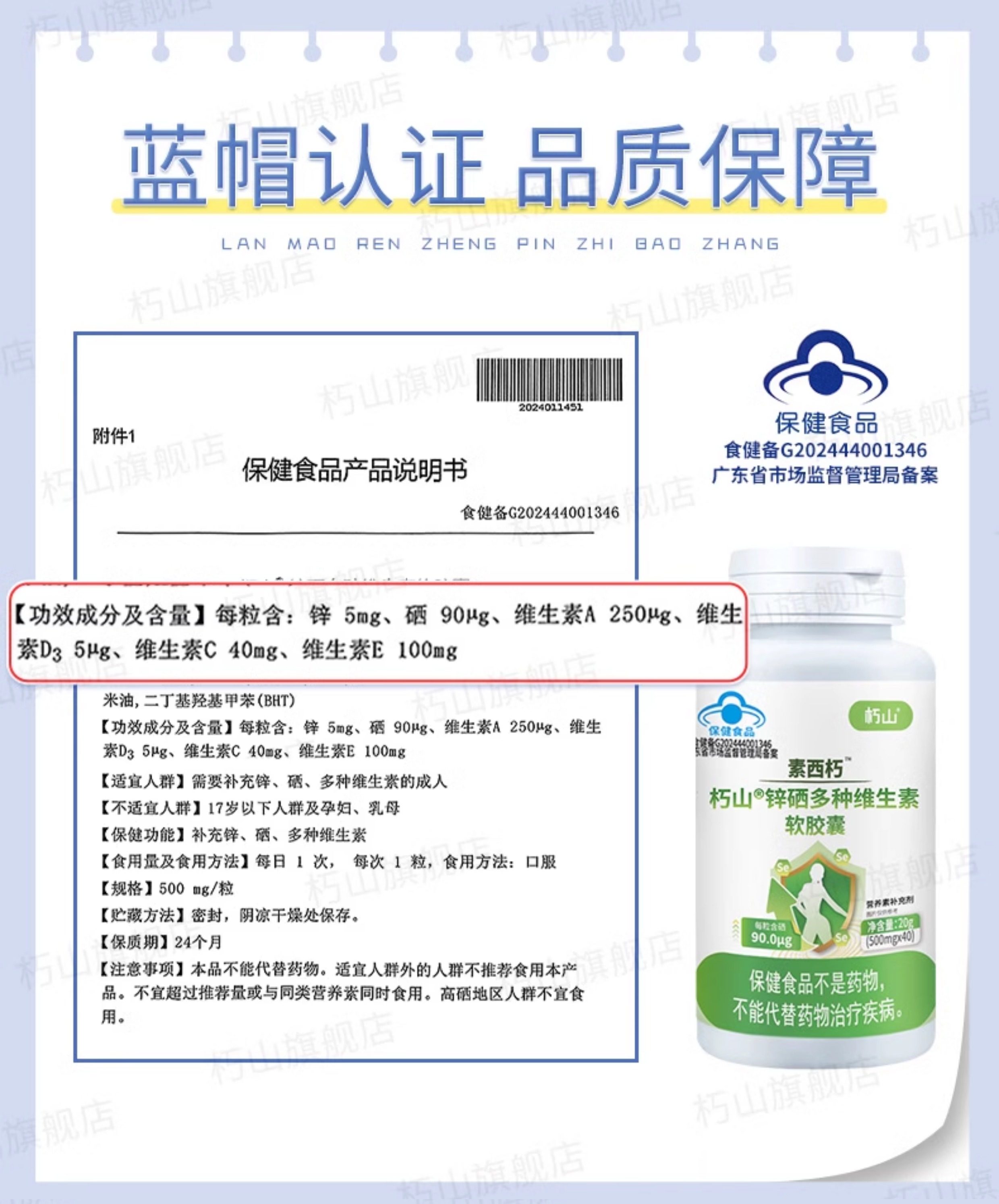 素西朽 官方旗舰店 补锌硒多种维生素富西朽软胶囊 非药非水果3瓶