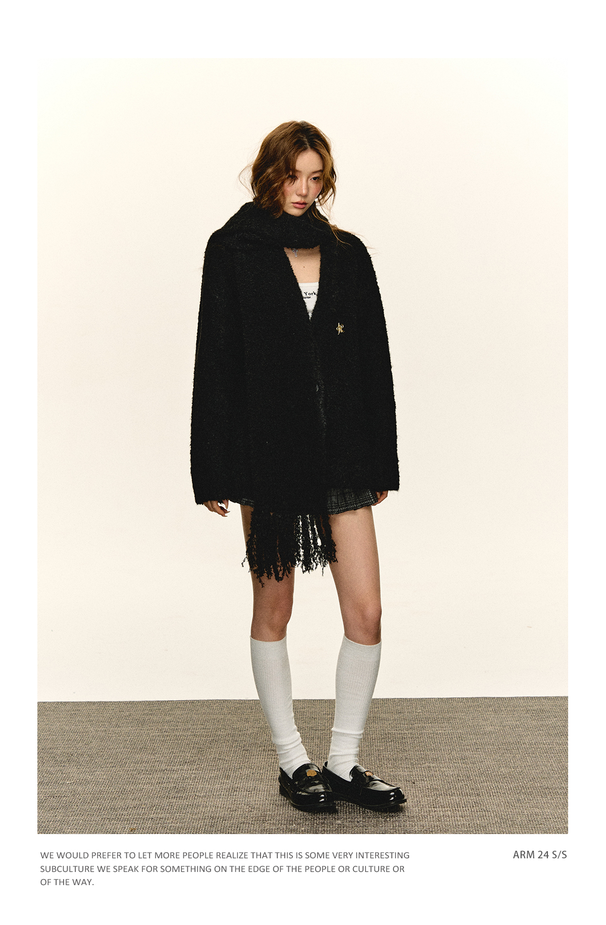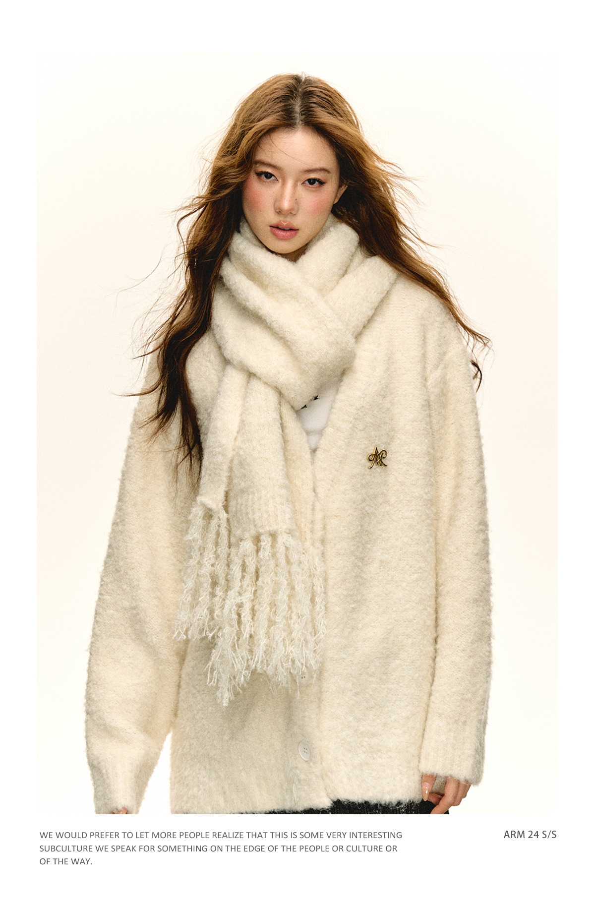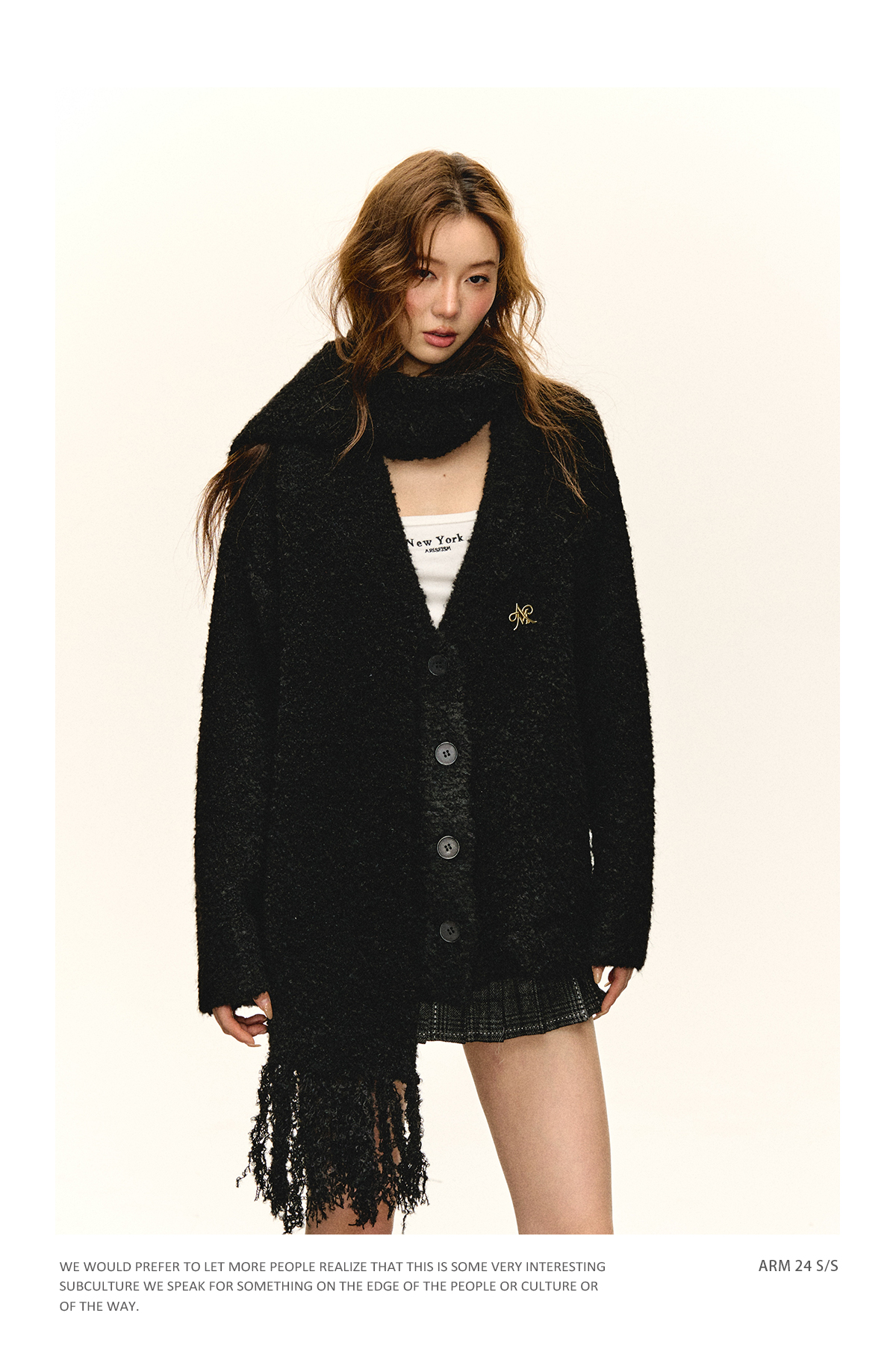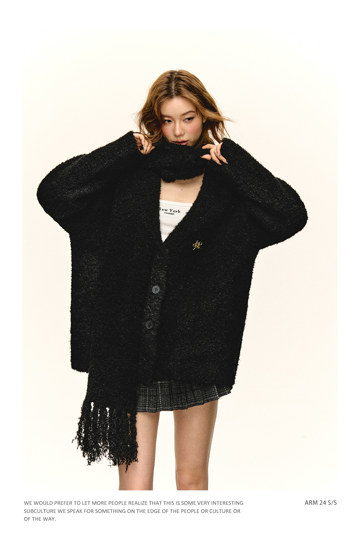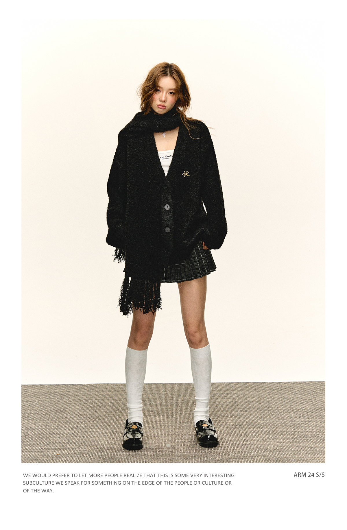 Ariseism 圆领绞花开衫毛衣外套女春秋新款修身显瘦内搭打底上衣