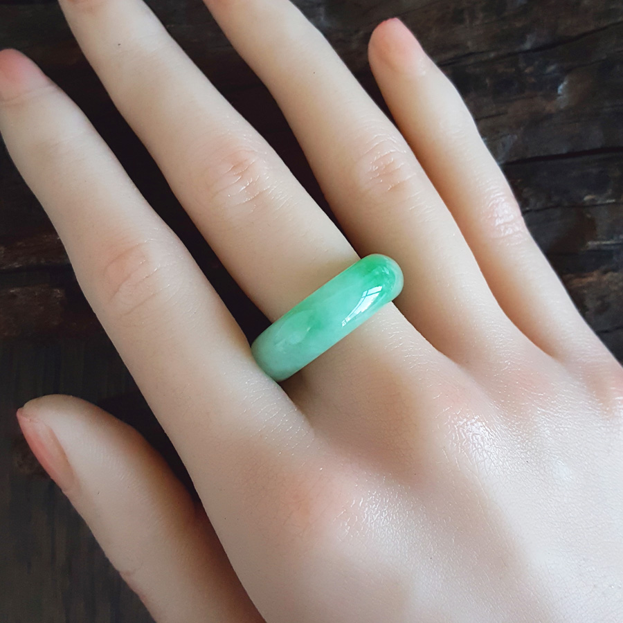 名称 | 天然无杂裂细腻糯种绿色翡翠戒指指环 |