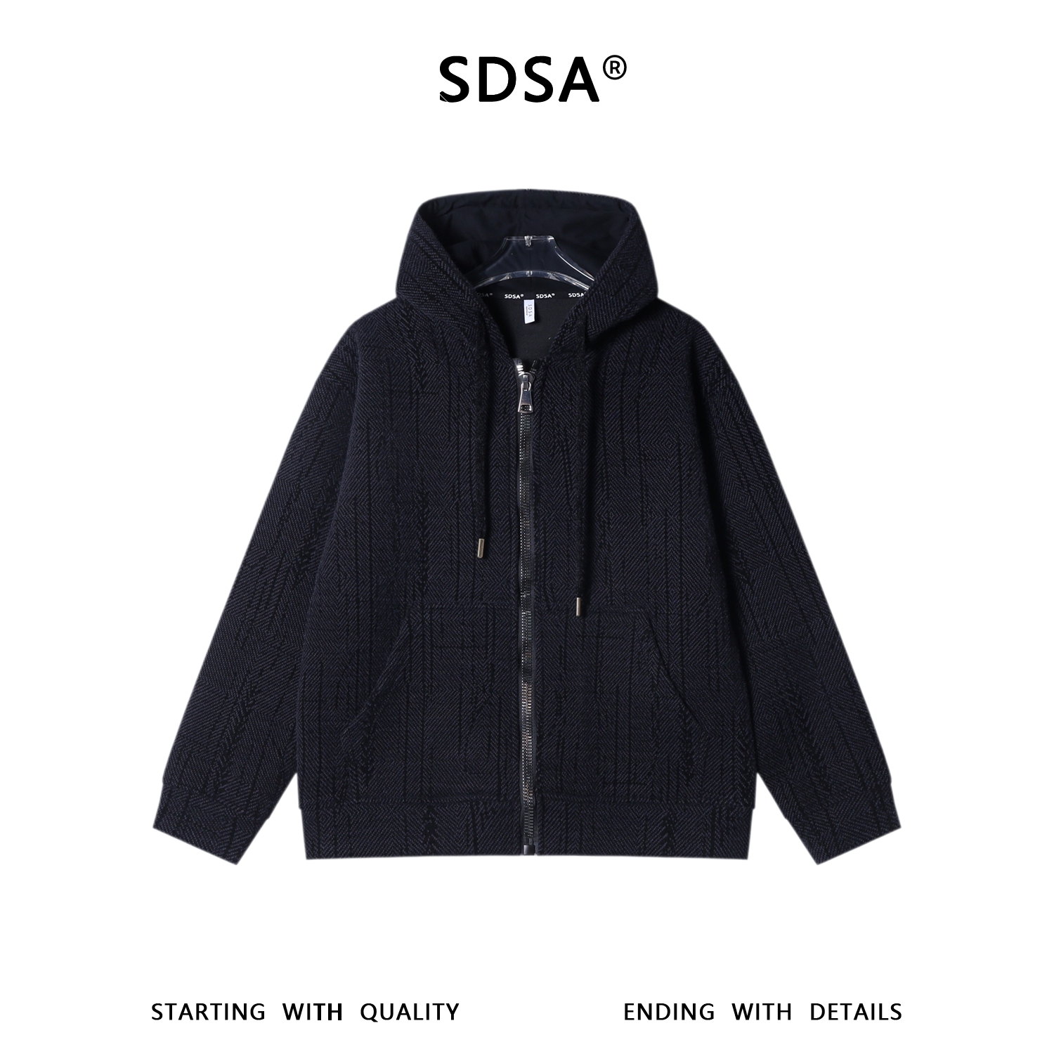 SDSA男士秋冬新款痞帅男装潮牌休闲提花撞色拉链抽绳连帽卫衣百搭