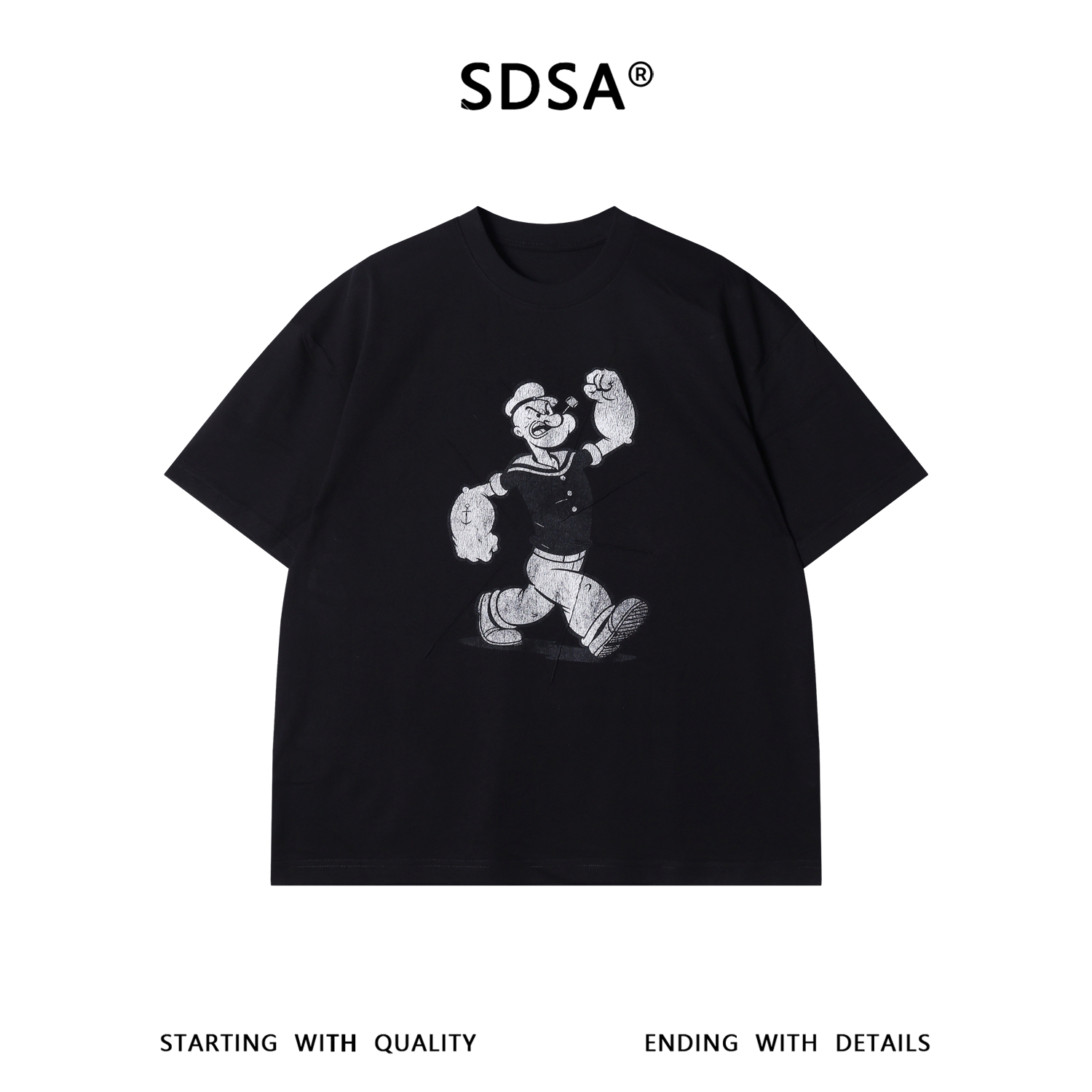 SDSA男装2026新款高贵轻奢时尚大力水手复古印花短袖T恤百搭时尚