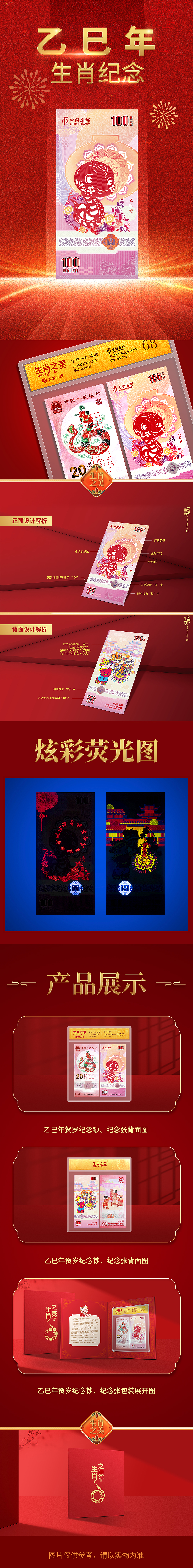 【蛇年邮币钞】蛇年纪念钞、纪念币、邮票套装 蛇年邮币钞套装