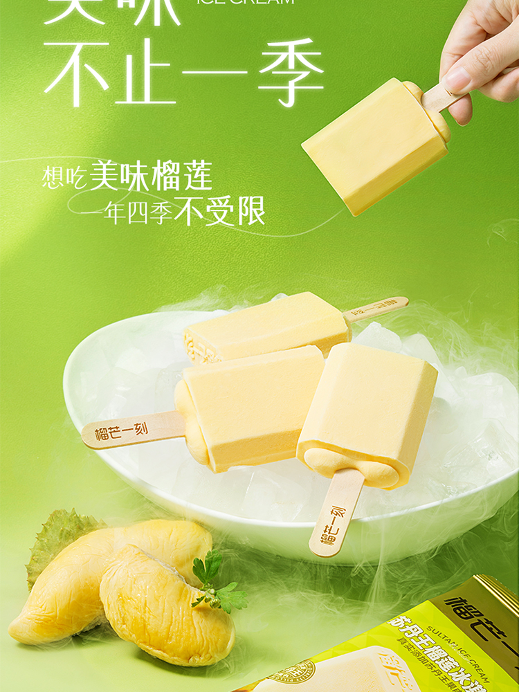 榴芒一刻 苏丹王榴莲 冰淇淋(条)60g*6+脆筒冰淇淋(甜筒)65g*6
