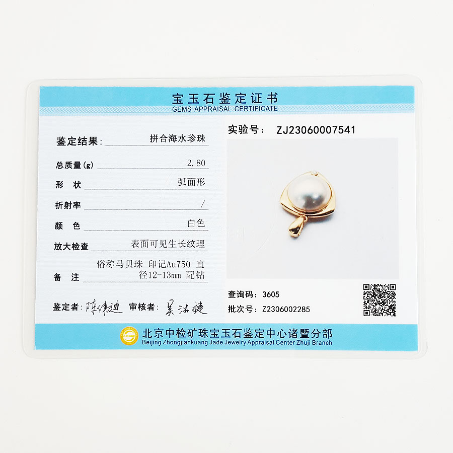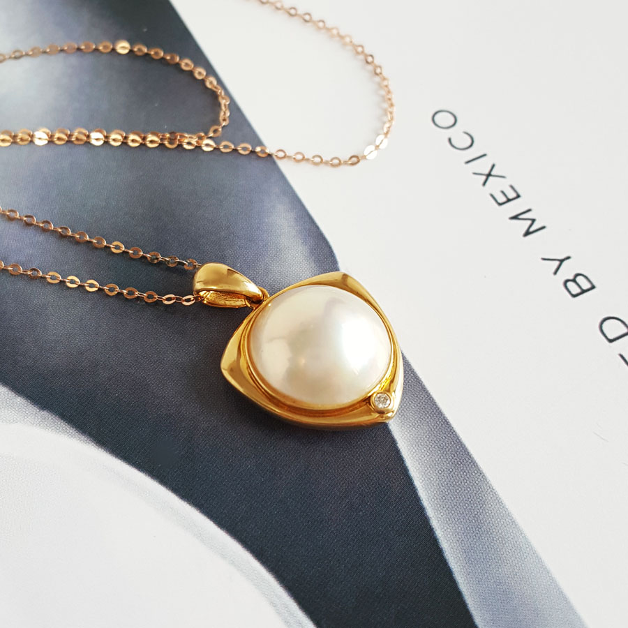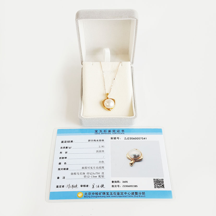 名称 | AU750黄金镶钻镶天然近完美约12-13MM海水马贝珠吊坠项链 |