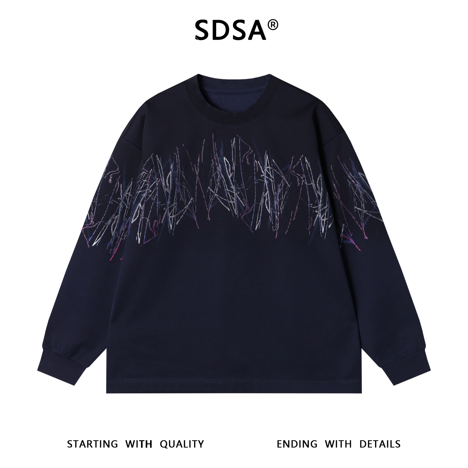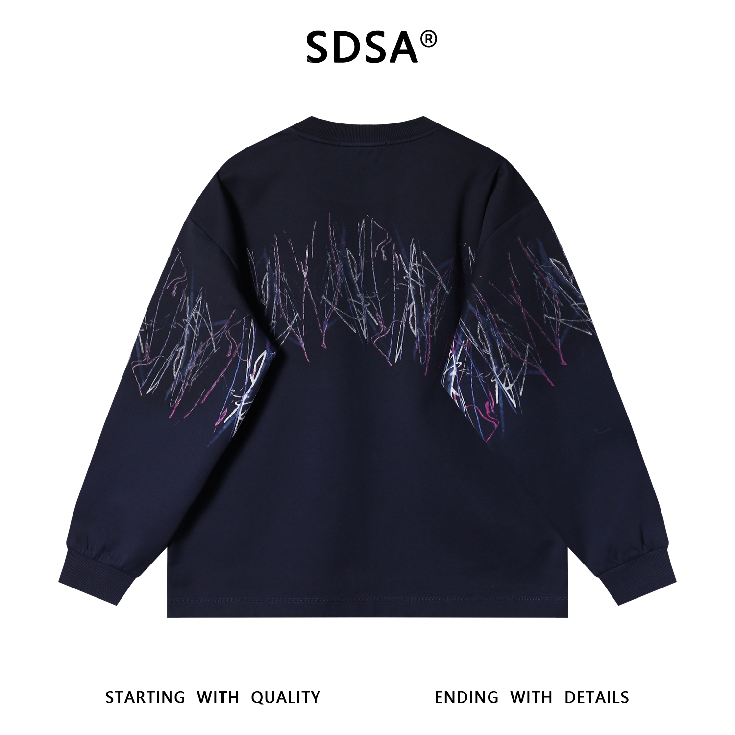 SDSA男士秋冬新款痞帅男装韩版凌乱线条涂鸦圆领卫衣百搭时尚上衣