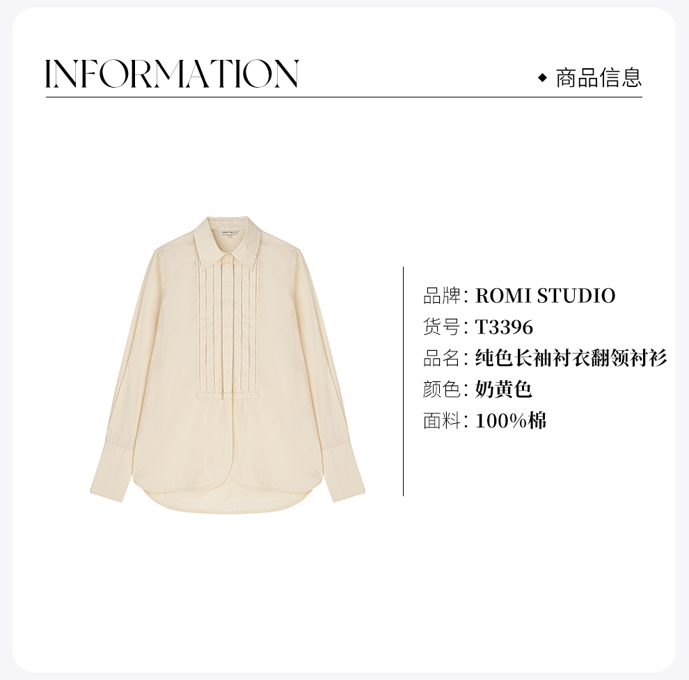 ROMI STUDIO【高品质】春夏百搭设计感纯色长袖衬衣翻领衬衫 T3396