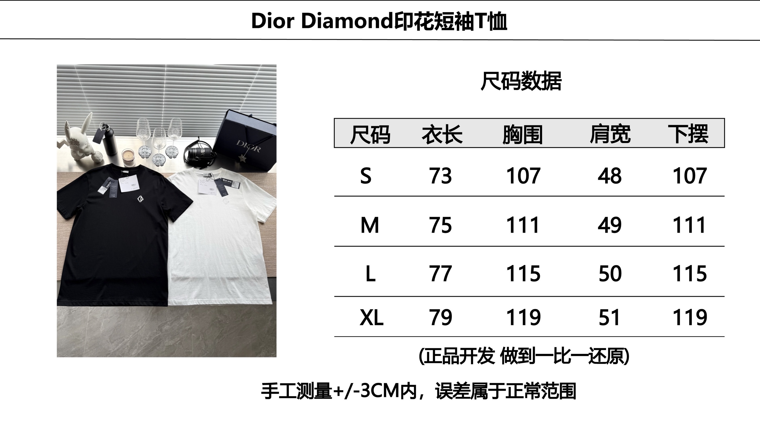 Dior25SS Diamond印花短袖T恤‼️整件衣服7200购买Zp拆解打造,定制棉质平纹针织面料,做到100%全棉进口纱线,前幅饰以反光CD Diamond标志印花设计,后幅饰以DIOR反光印花设计,意大利进口制造,真正做到1:1copy 闭眼入 码数:S M L XL