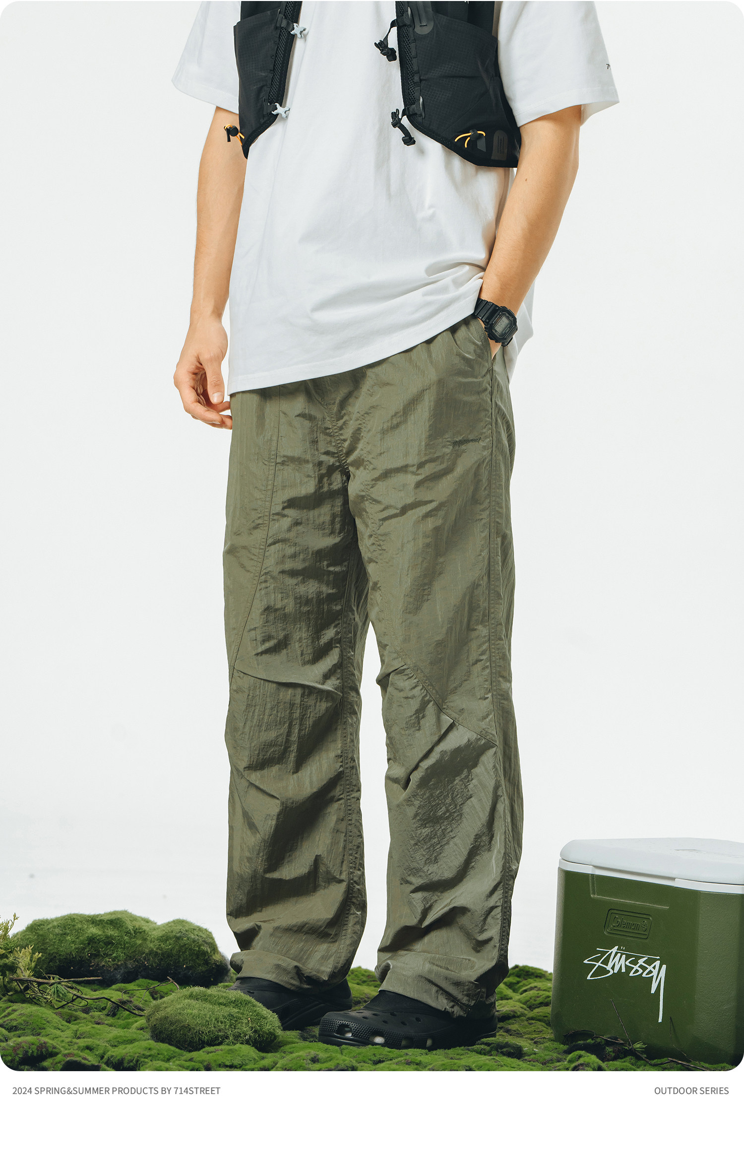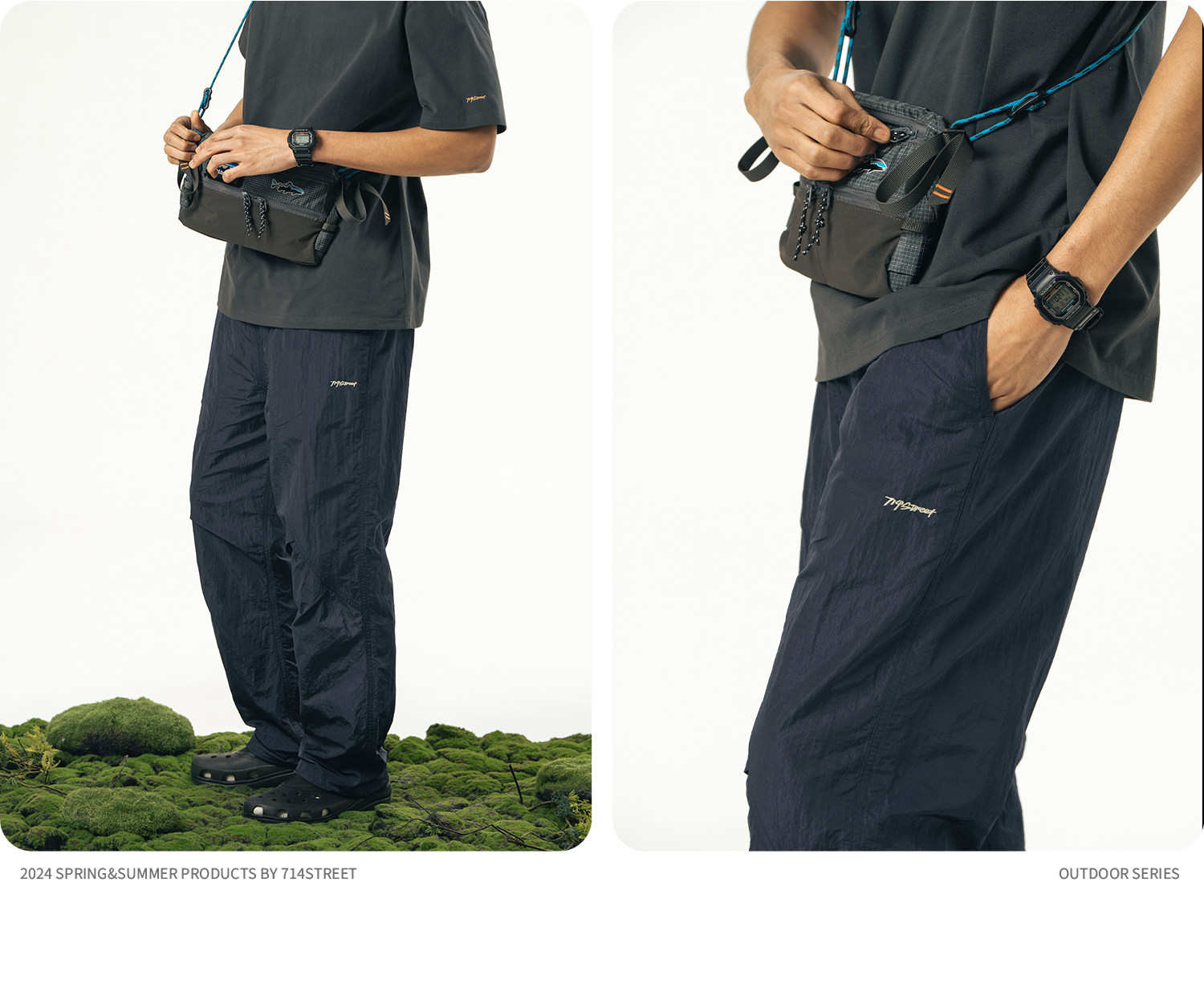 714street户外防水尼龙长裤夏季款轻薄透气宽松直筒裤男士休闲裤