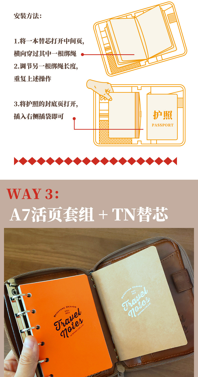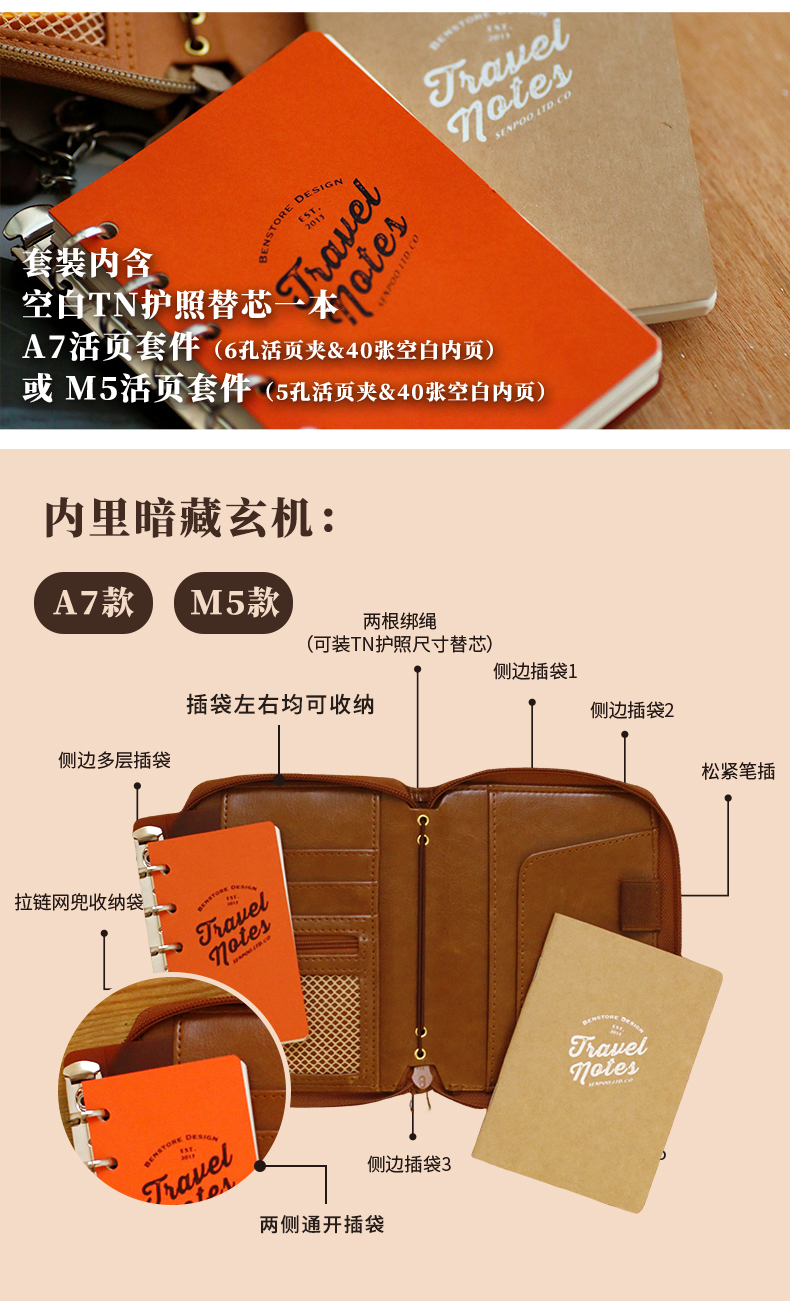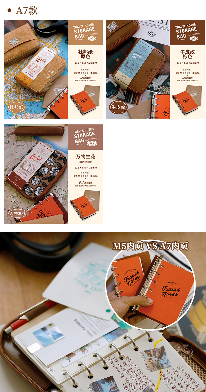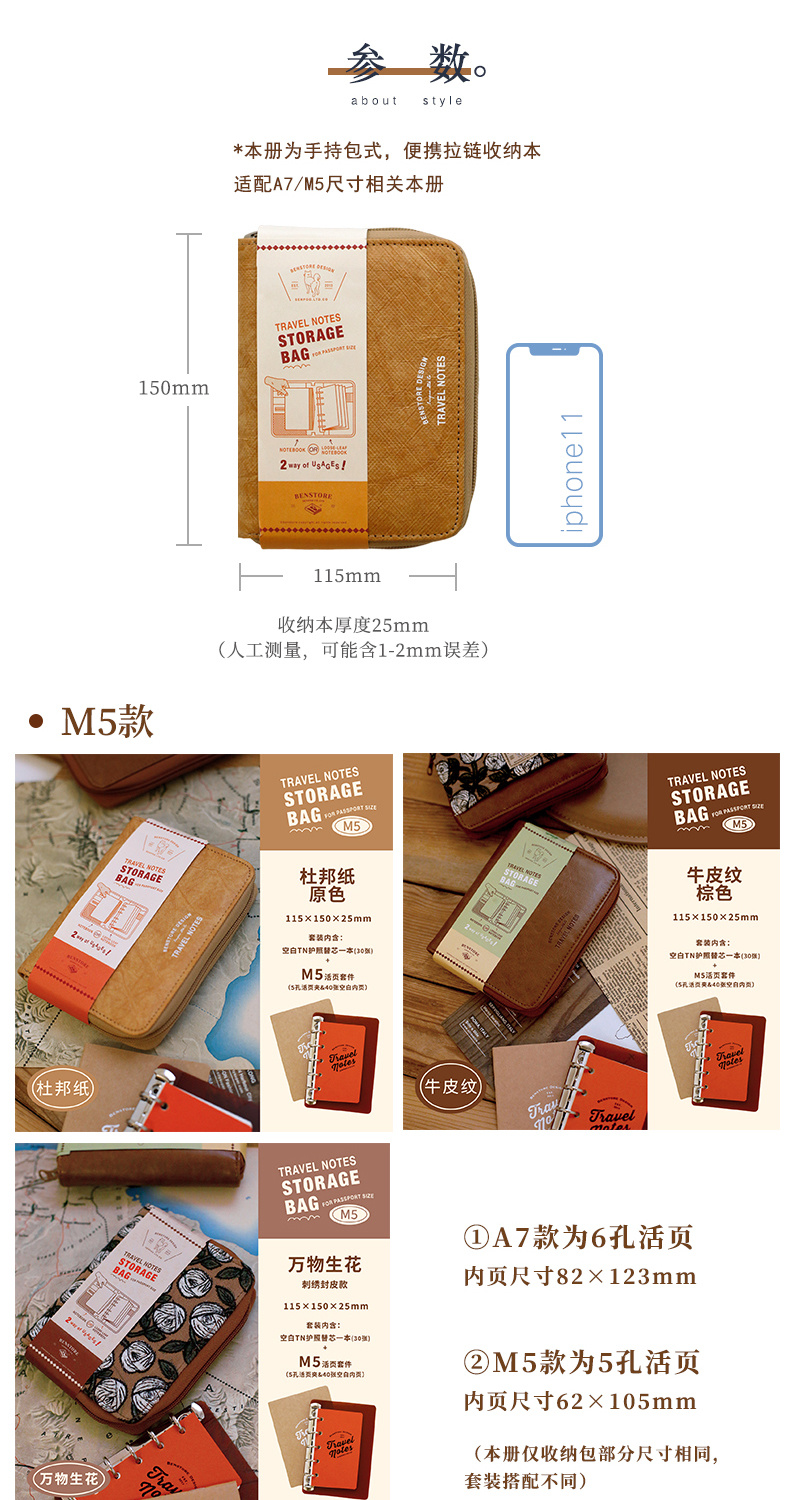 本子事多 便携旅行拉链收纳本 M5A7活页TN护照夹随身手帐集章笔记