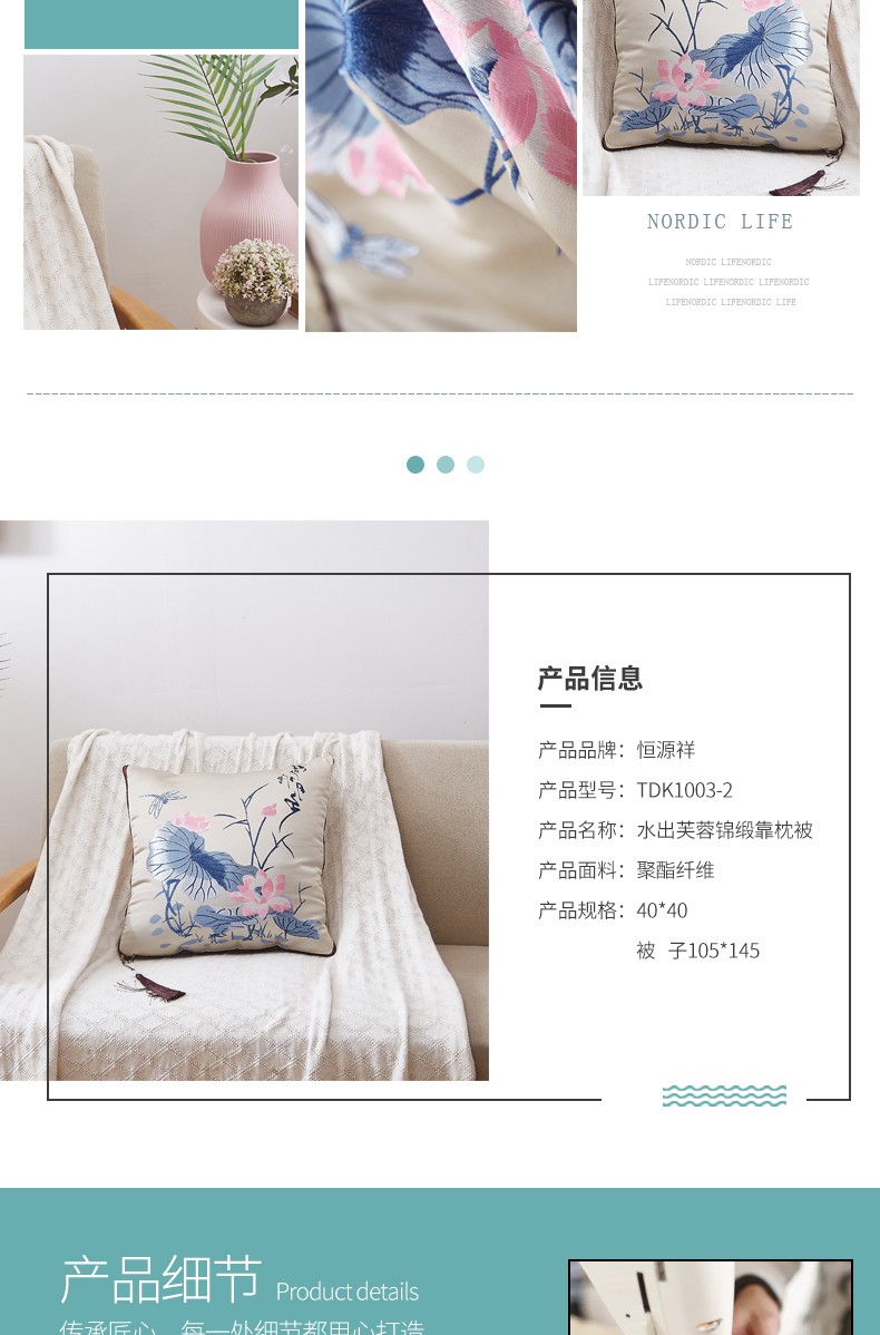 恒源祥(HYX) 恒源祥礼业TDK1003-2出水芙蓉锦缎靠垫被 出水芙蓉 40*40
