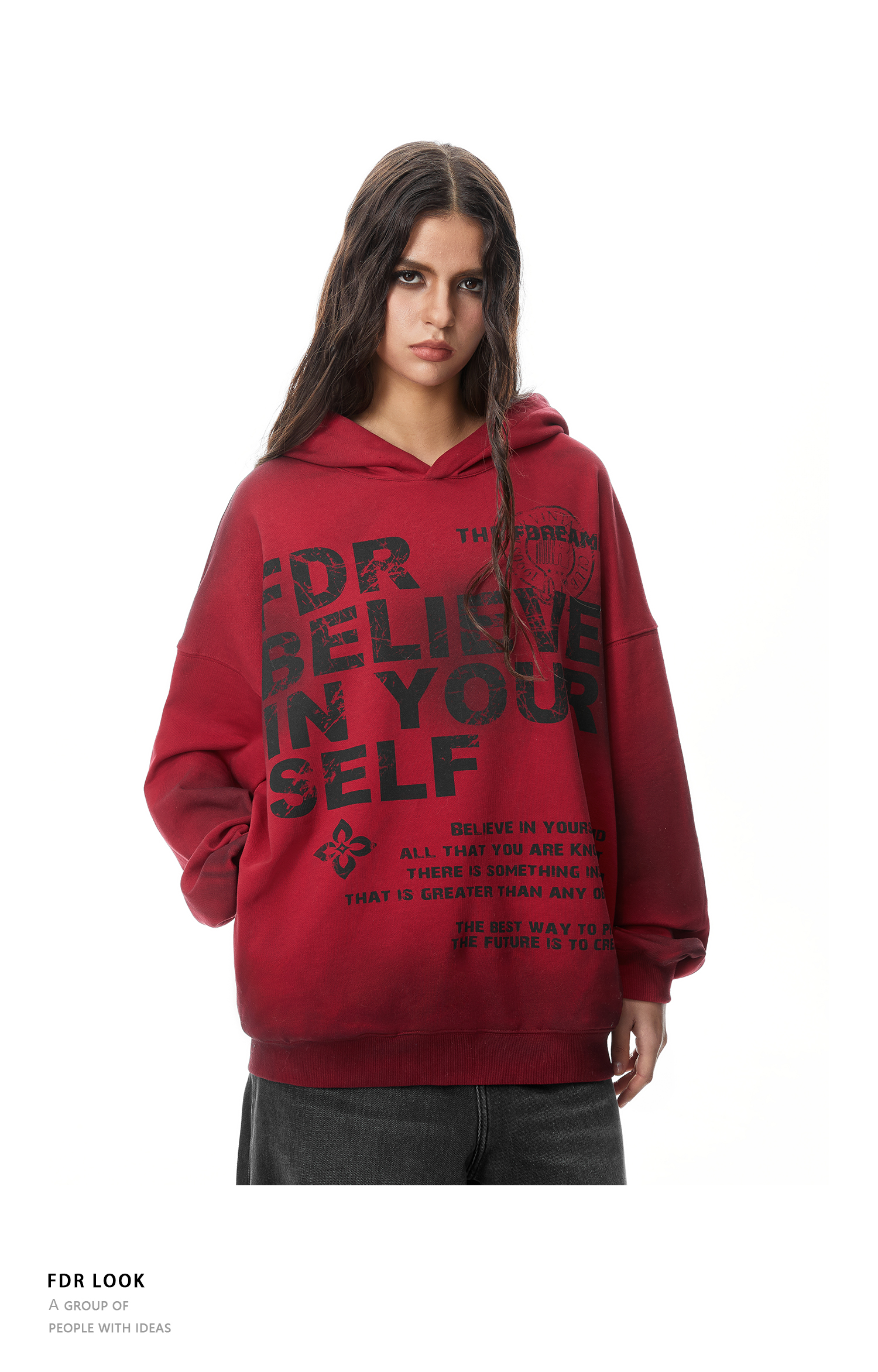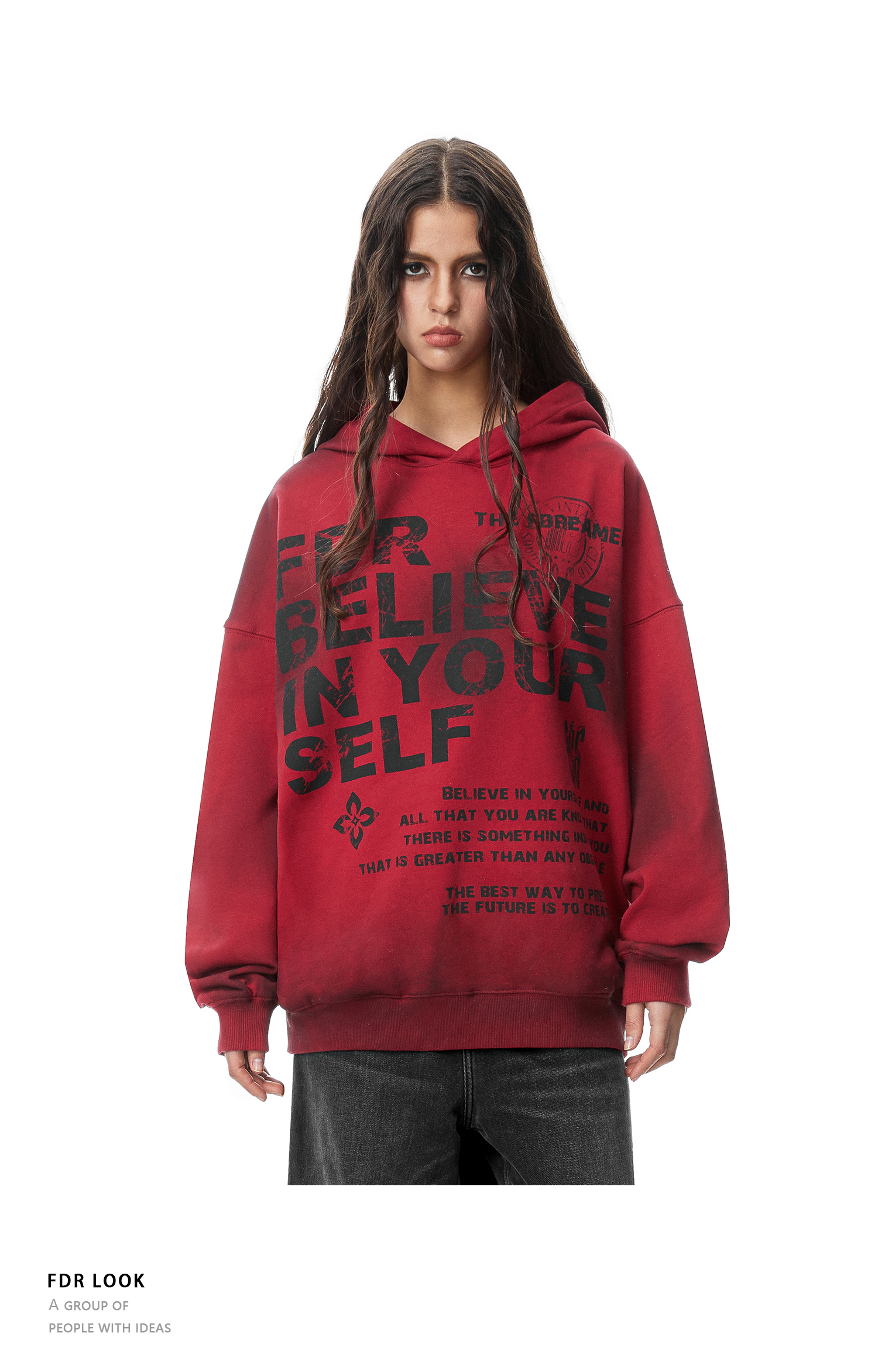 FDR官方店 斑驳字母做旧擦脏连帽卫衣男女春秋季重磅情侣宽松上衣