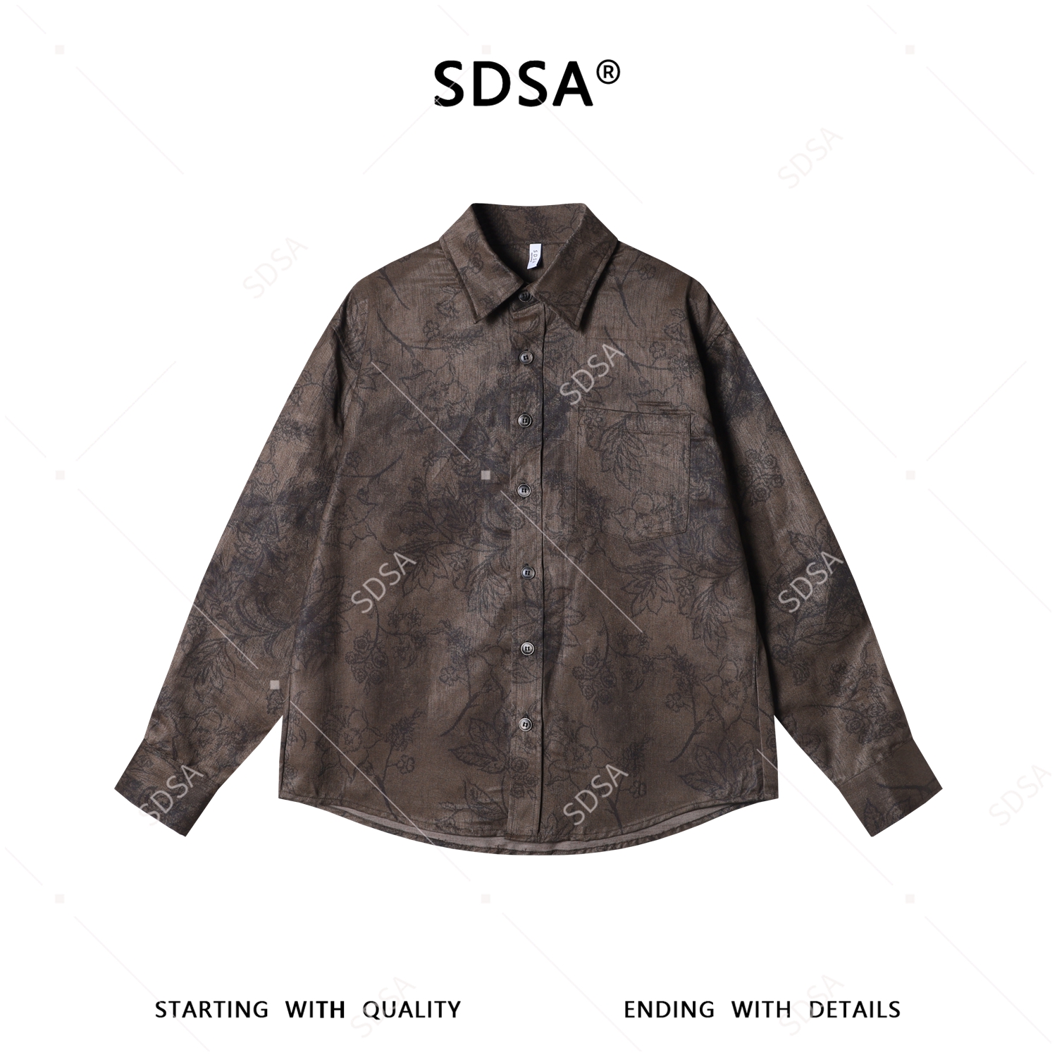 SDSA男装2026新款高贵轻奢时尚复古花卉满印衬衫百搭时尚长袖衬衣