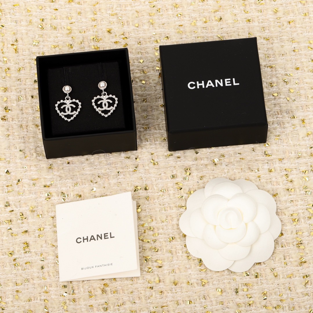 香奈儿 珍珠珠吊镂空爱心耳环 全网首发类爆款来袭!25春夏最新款绝美系列!太爱啦,每一期必入爱心系列!是心动的感觉,先自留啦!非常小巧日常又精致!颗颗施华洛五金!恰到好处的浅金低调又高级,质感超 nice!绝不能错过的必备单品!经典的设计被精致与复古所支配,现代时髦感充斥着每-个细节,不高调,但出众!