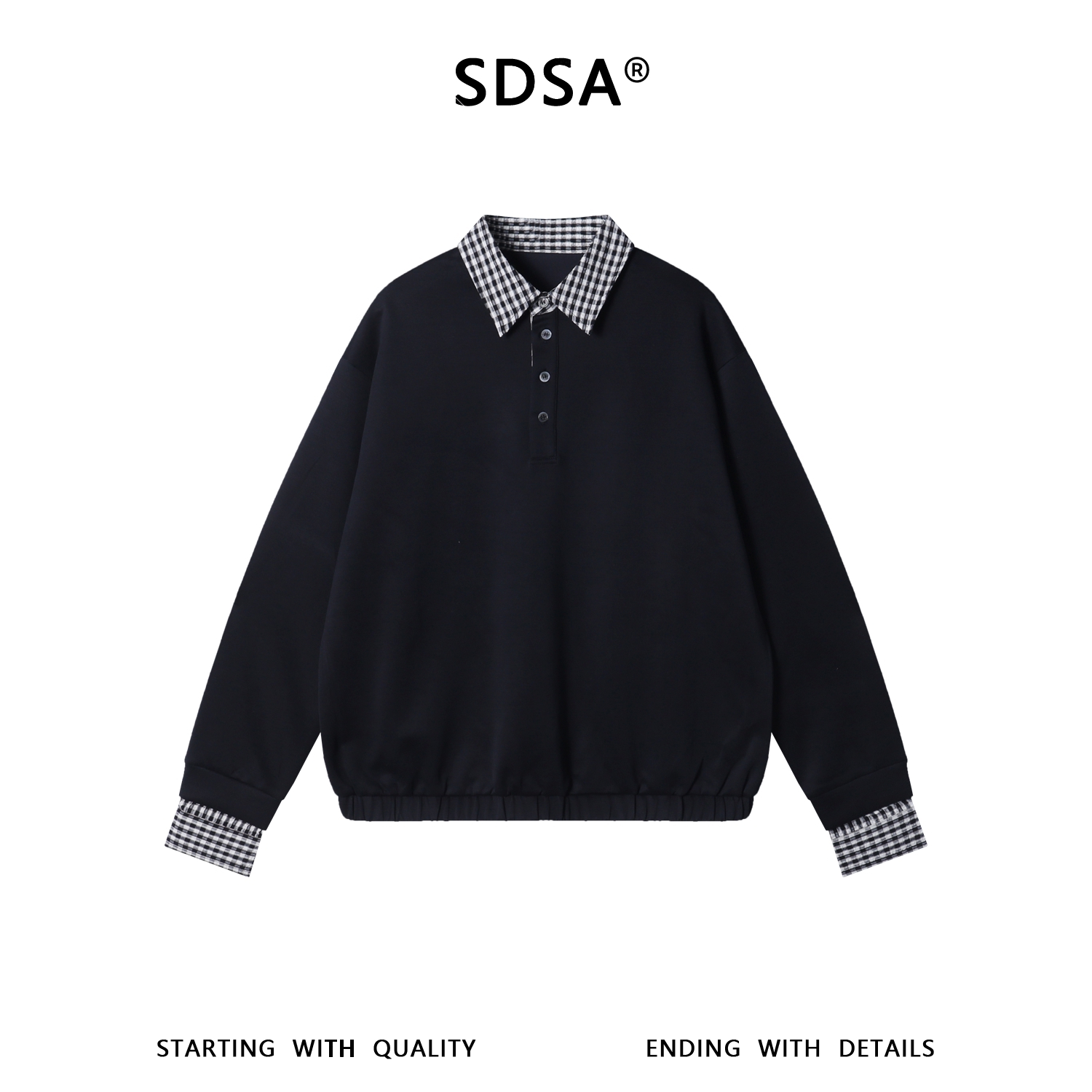 2616009SDSA男士秋冬新款痞帅男装韩版格子拼接翻领假两件卫衣百搭宽松