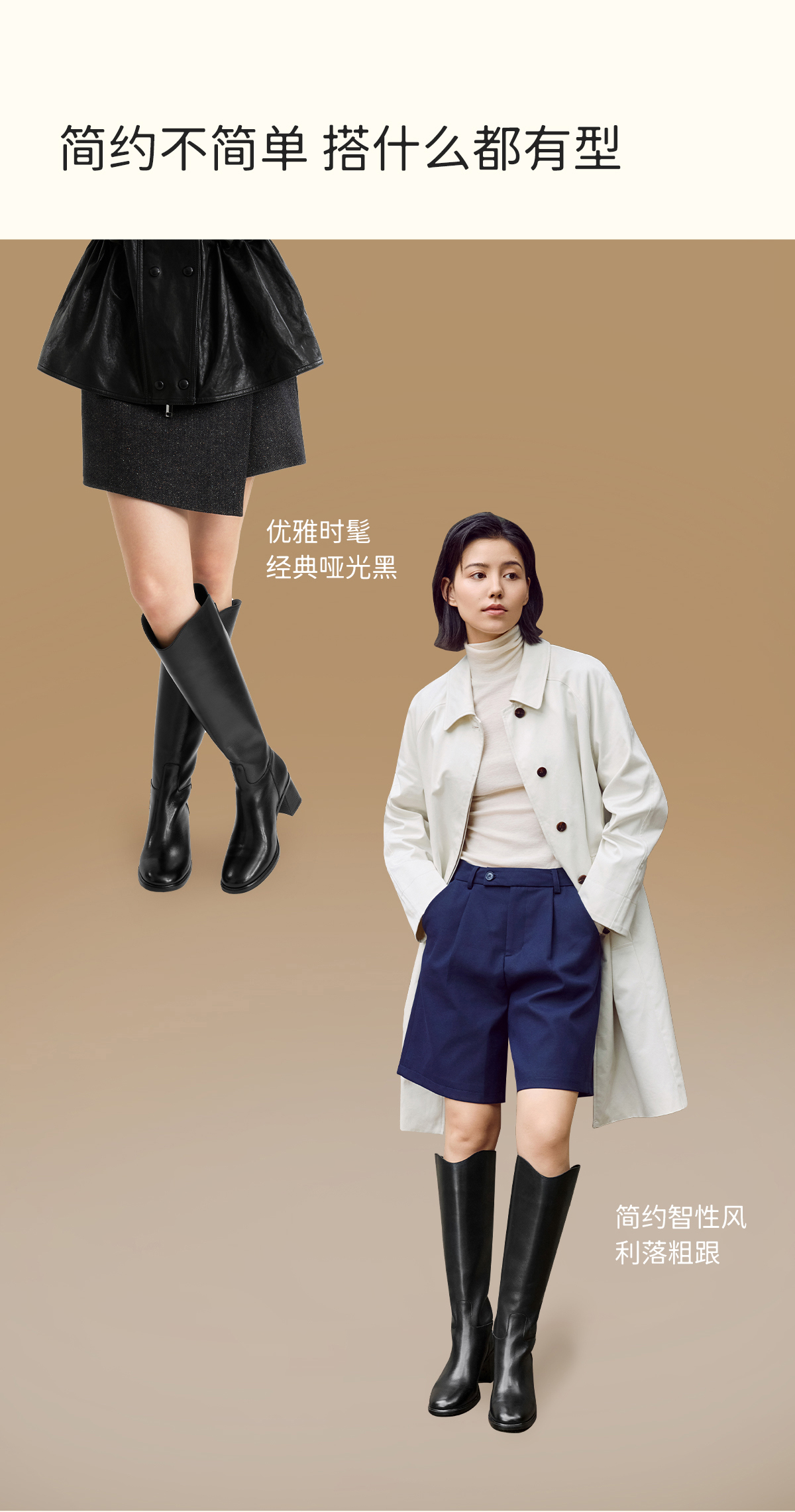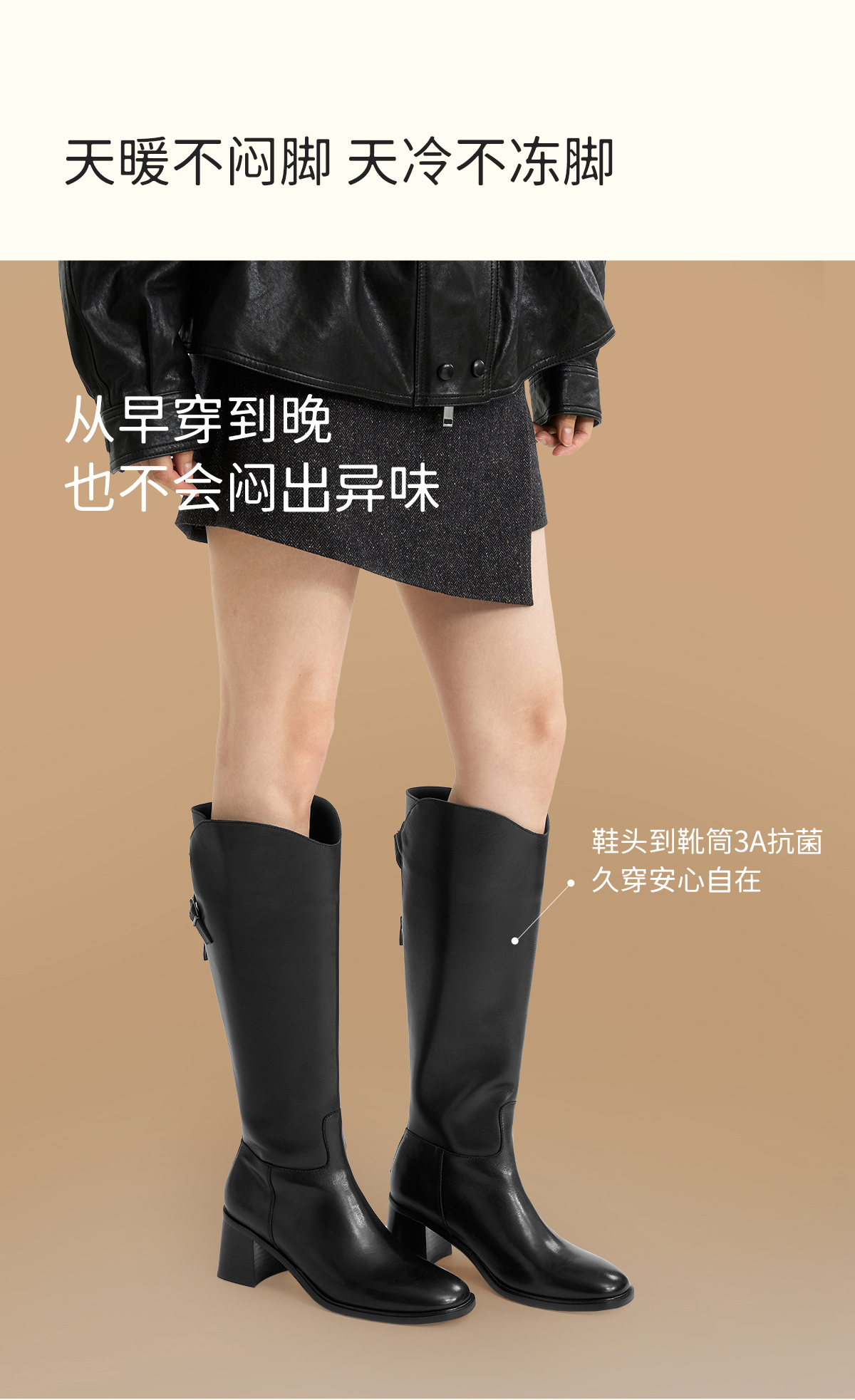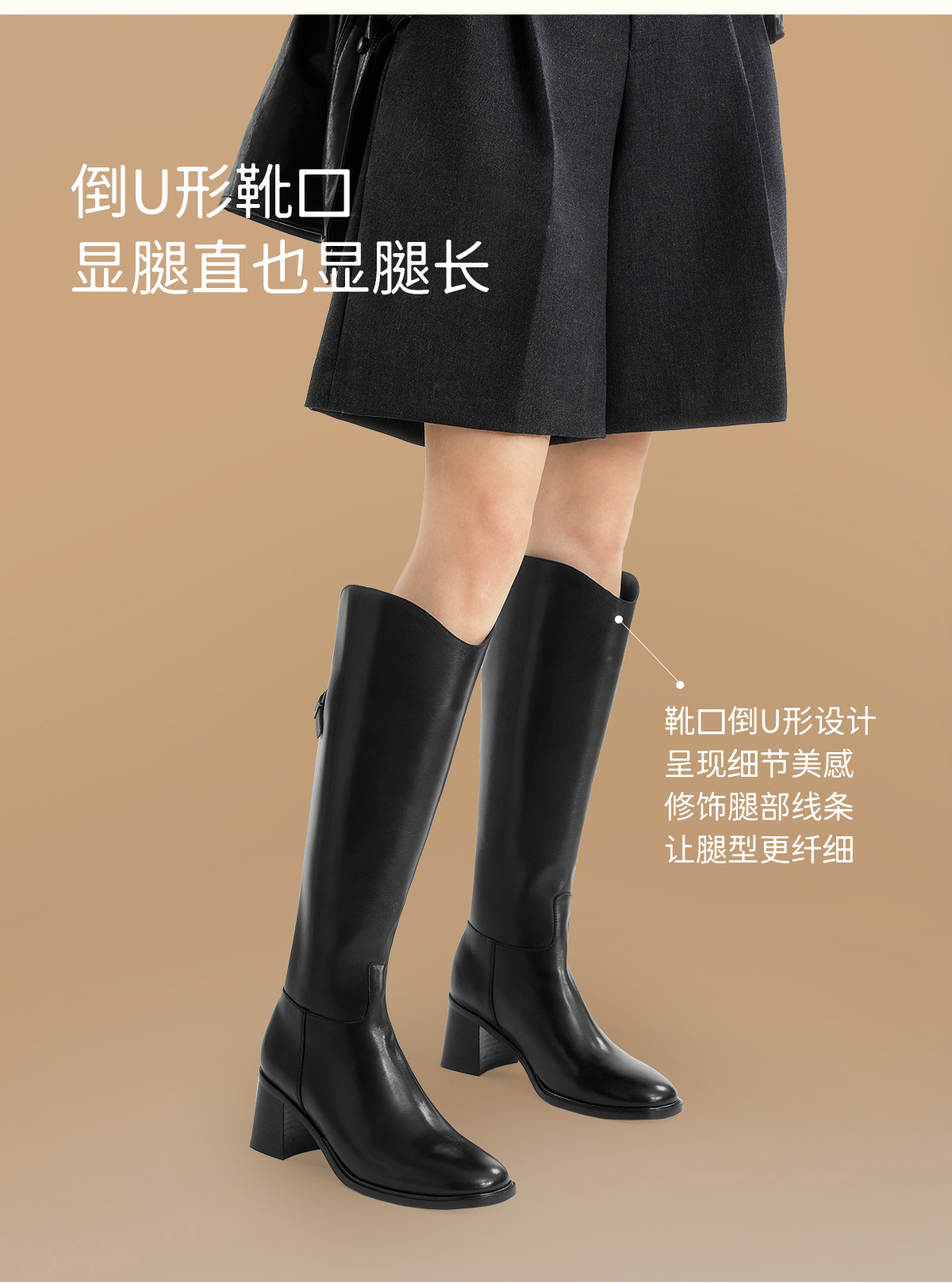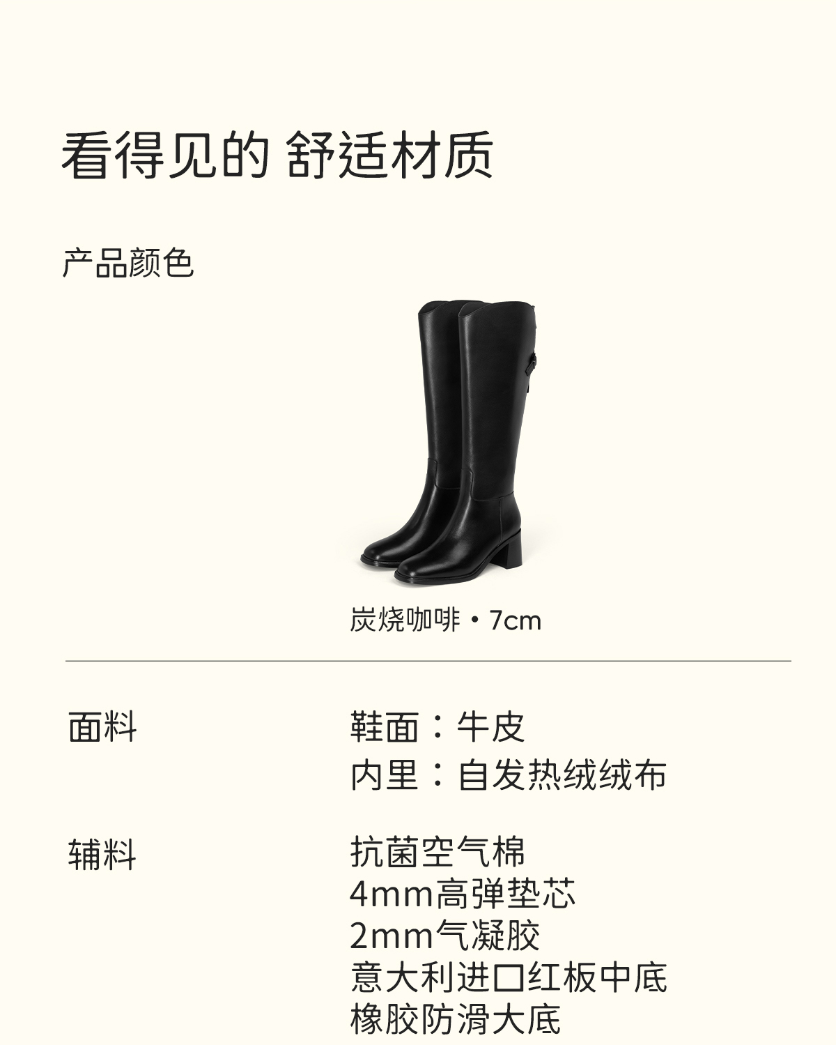 【炭烧咖啡】7or9 长靴骑士靴 秋冬牛皮暖靴半拉链方跟时尚靴子