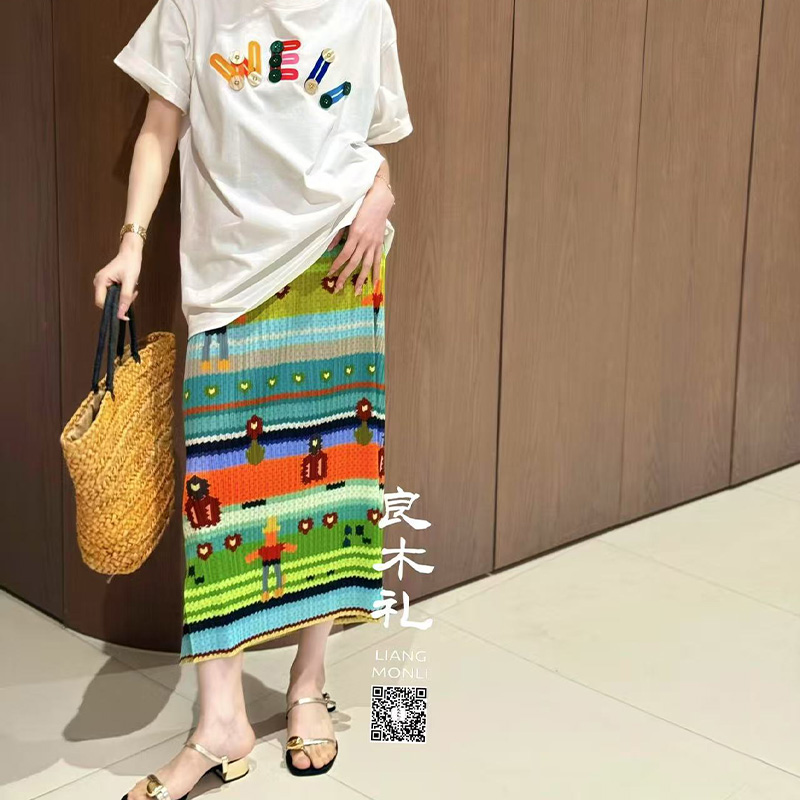 良木礼抽象图案半裙(25018)