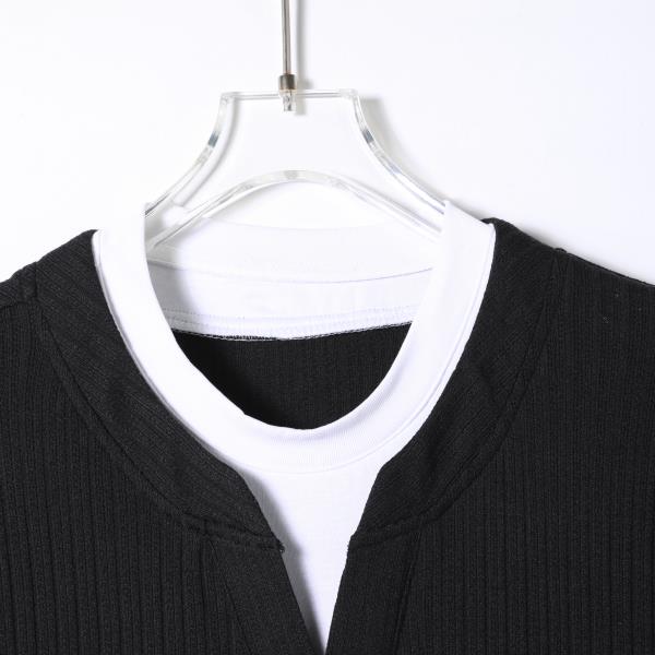 38698春夏新款时尚个性韩版纯色拼接圆领假两件短袖T恤潮流ins百搭上衣