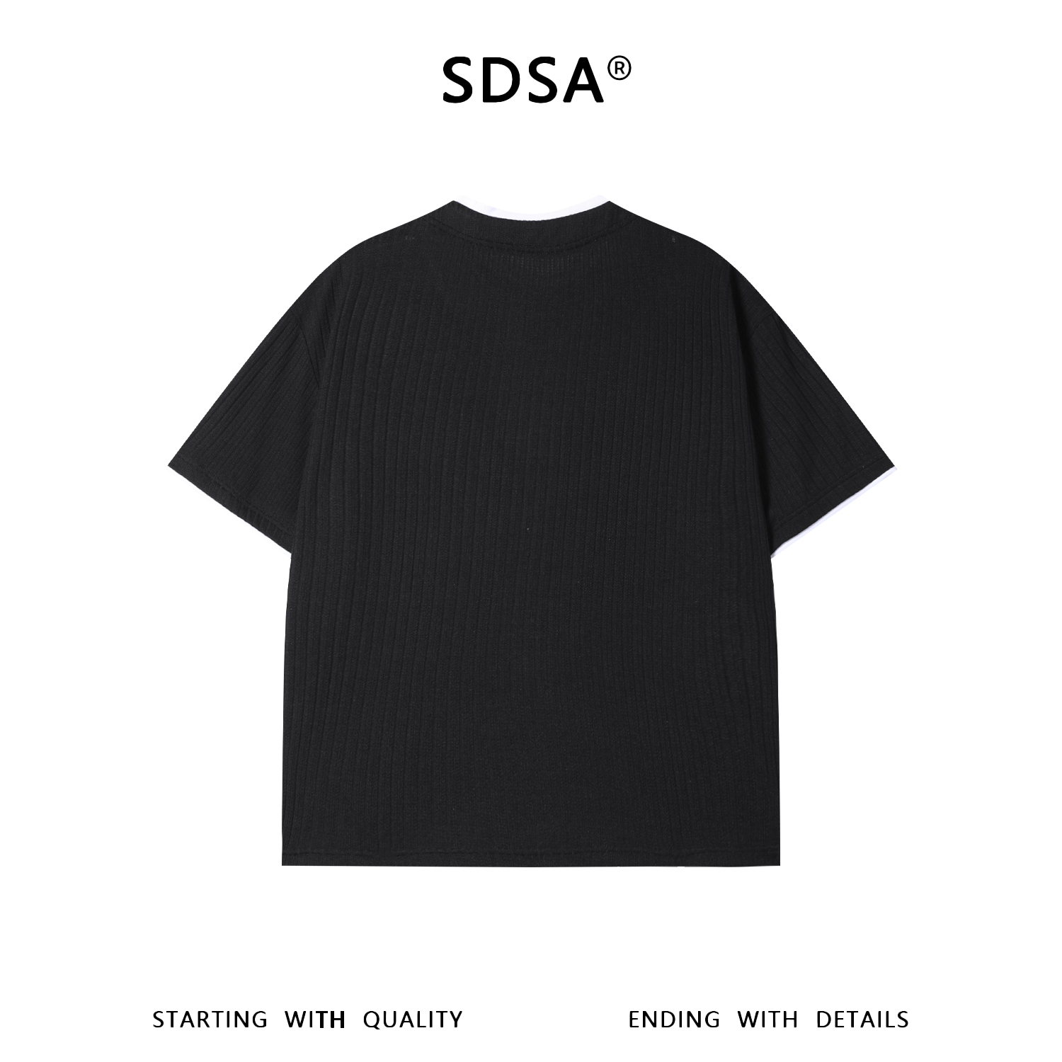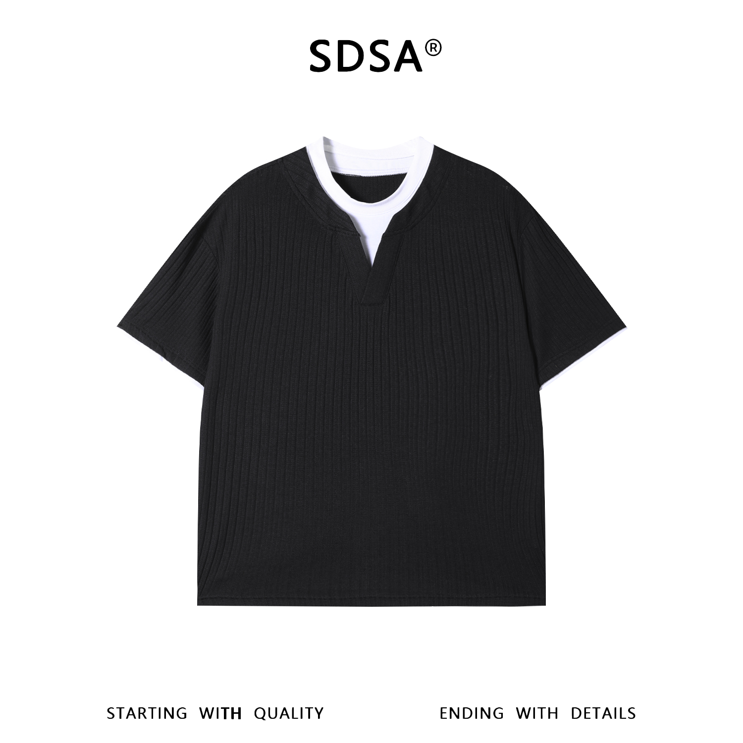 SDSA男装2026新款轻奢简约撞色拼接竖纹圆领短袖T恤百搭宽松上衣